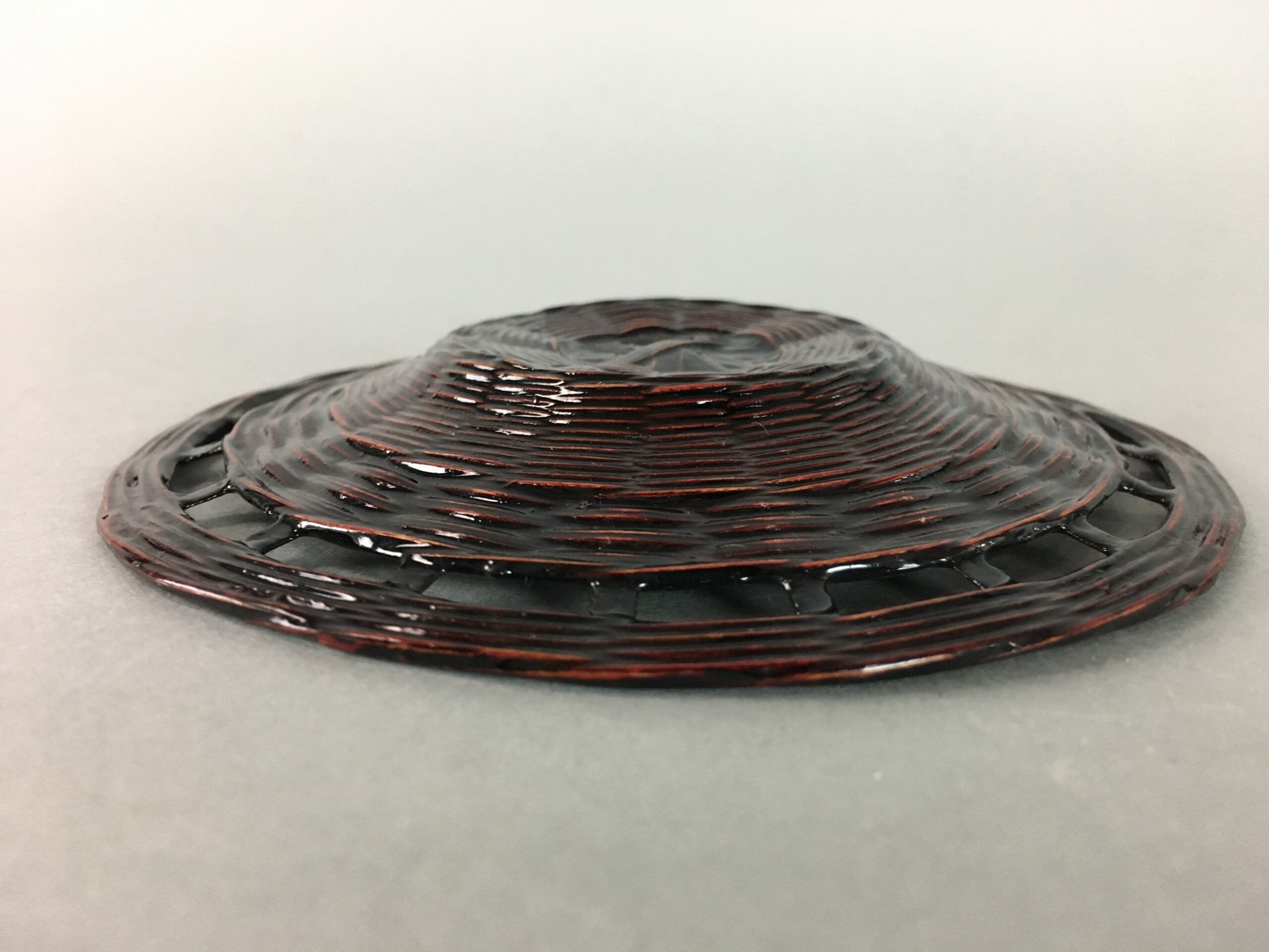 - Handwoven bamboo saucer with a lacquered finish, Rantai shikki