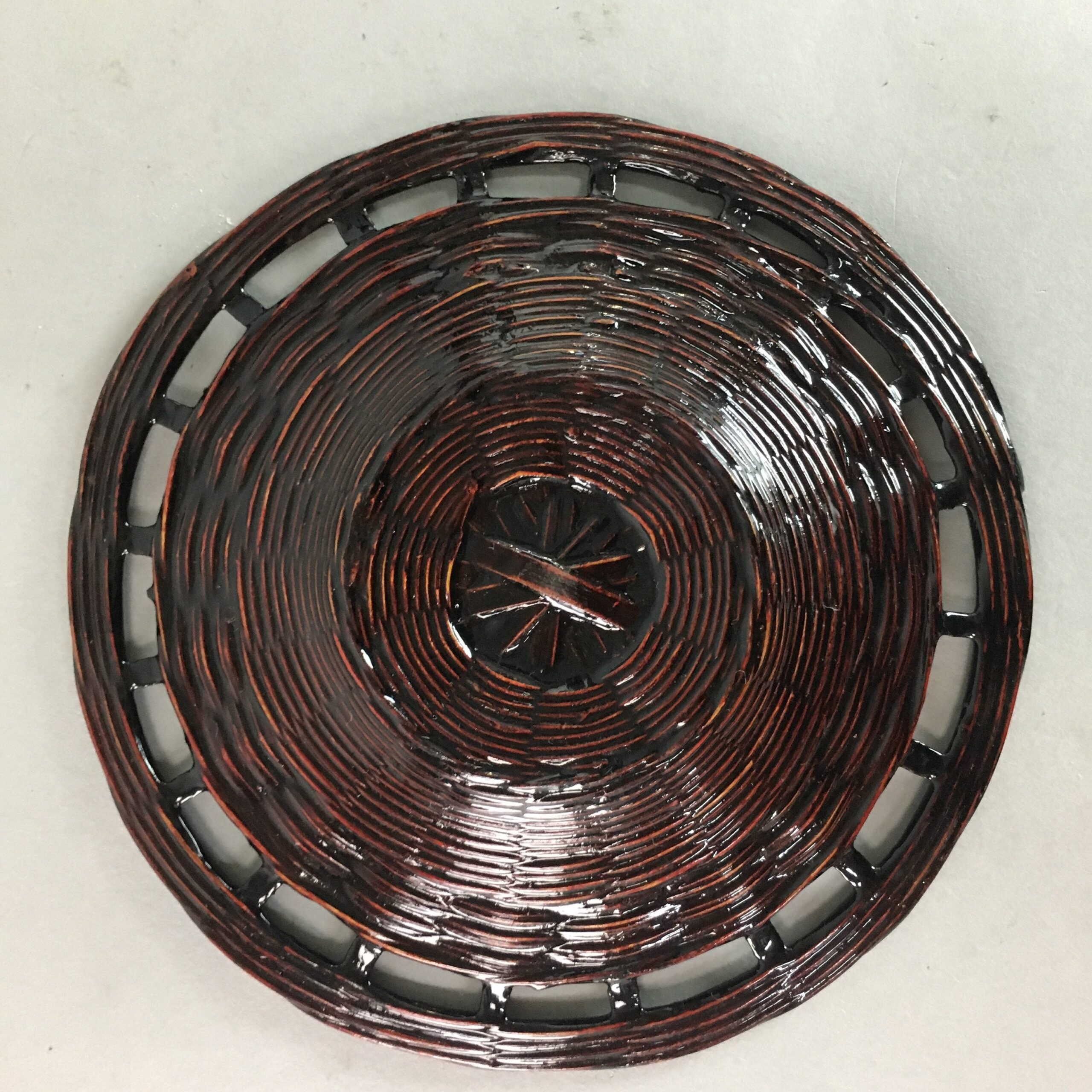 Vtg Japanese Hand Woven Bamboo Lacquer Saucer Coaster Chataku