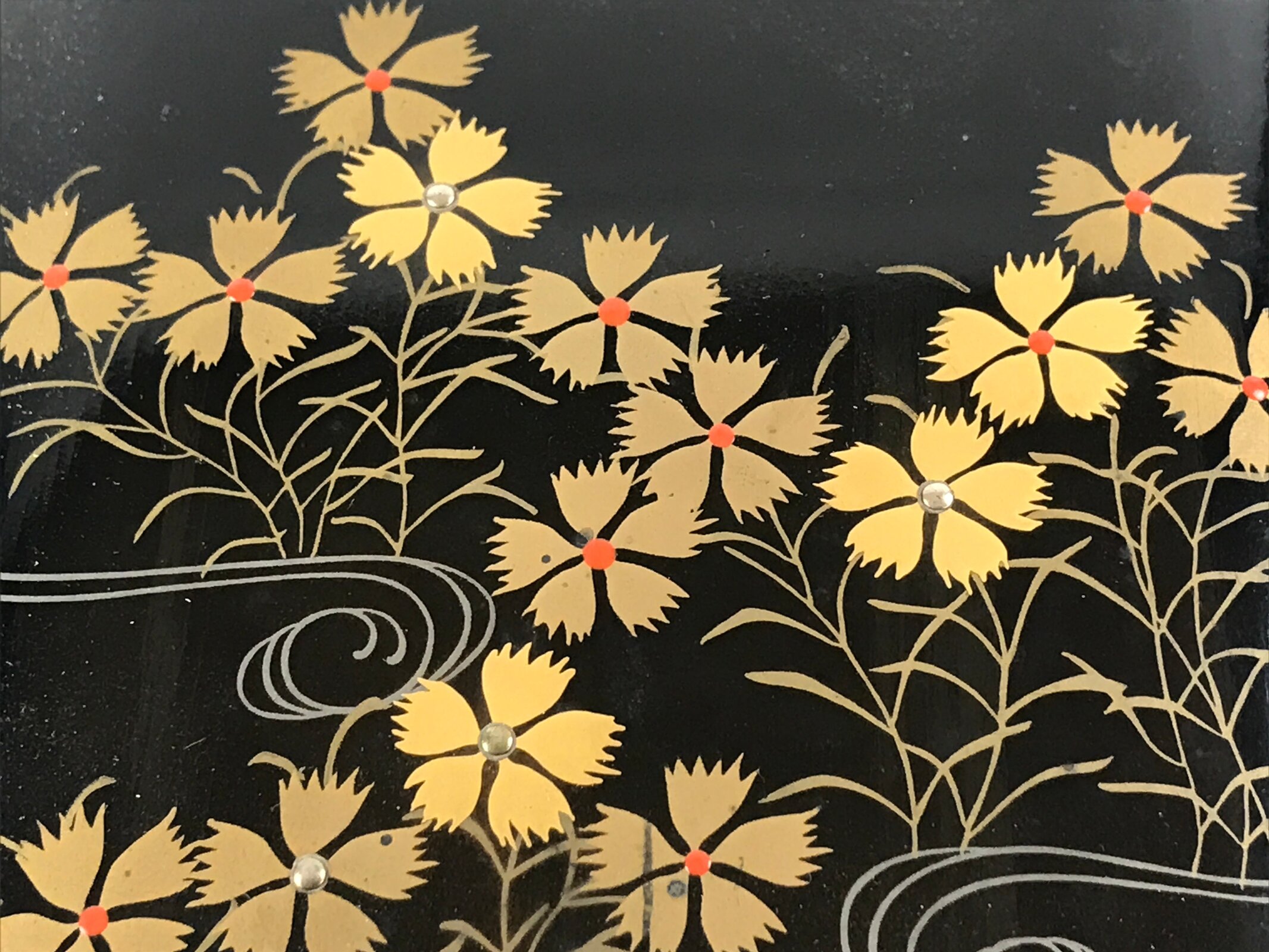 January 21, 2026Japanese Lacquered Wood Small Box W/ Lid Vtg Black Makie Gold Flowers L80