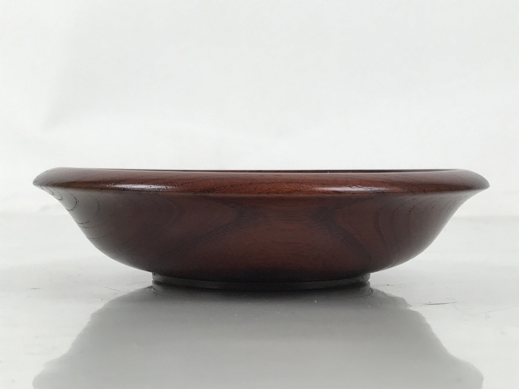 This is a vintage Japanese wooden lacquered drink saucer/coaster, or chataku. Stained a medium brown and brushed with a clear lacquer coating, it is a simple, classic style without any other details. This is made of keyaki, a Japanese zelkova tree. It has an indentation at the center to keep a cup from slipping off.