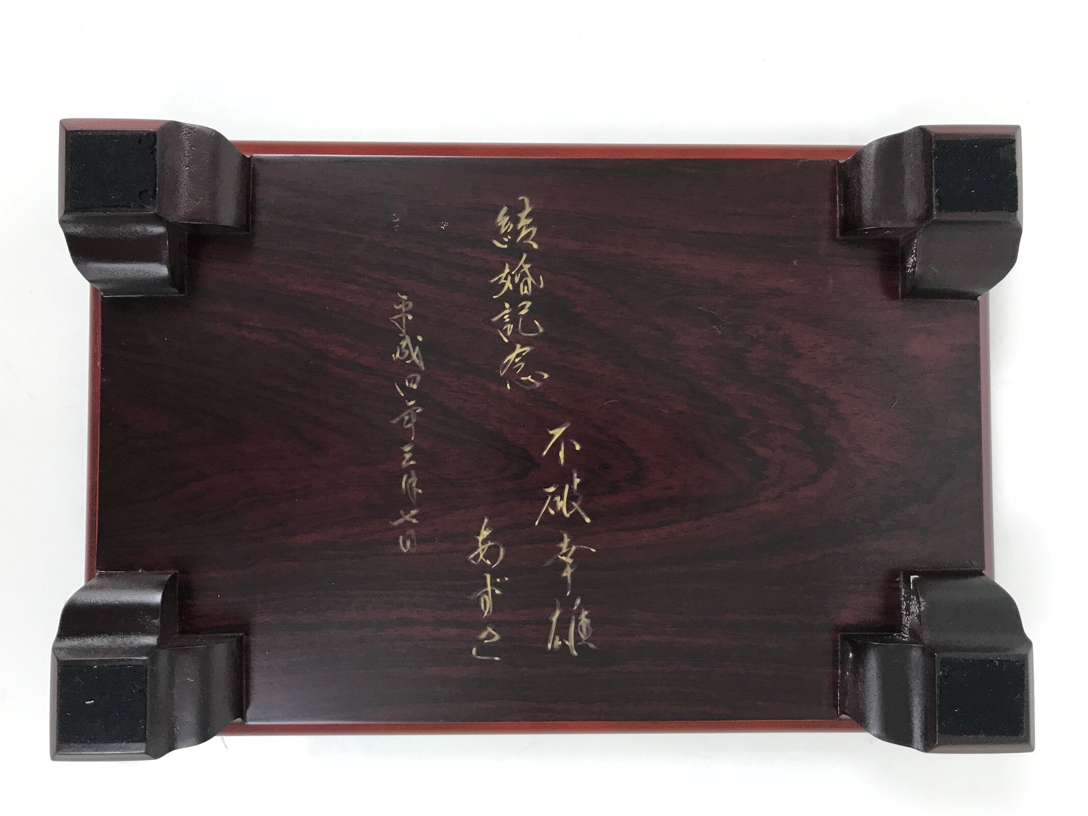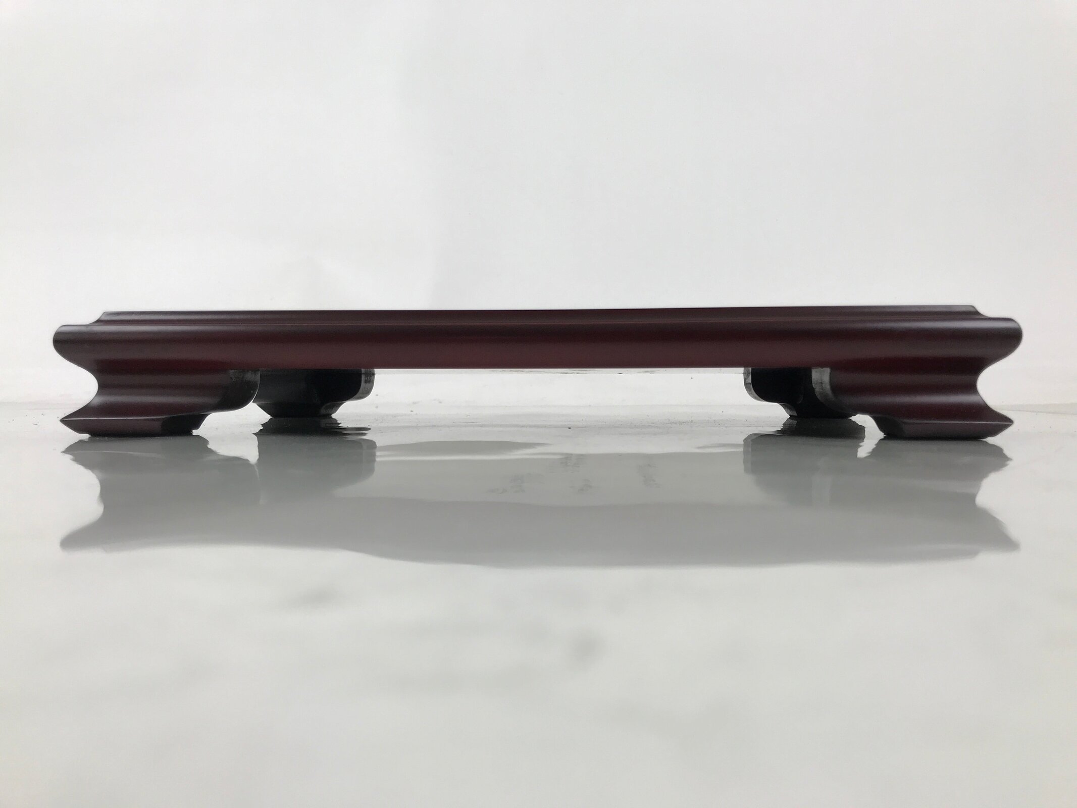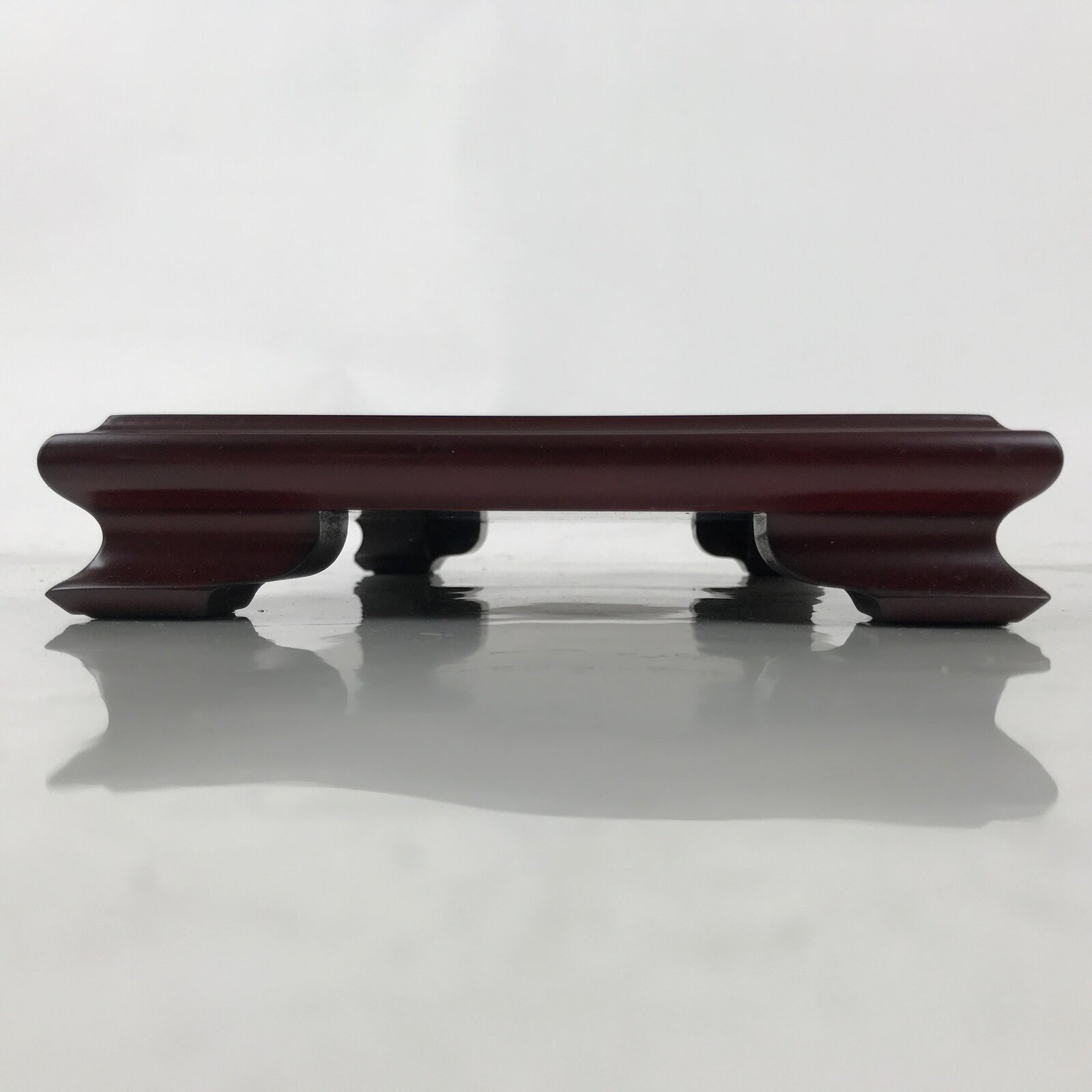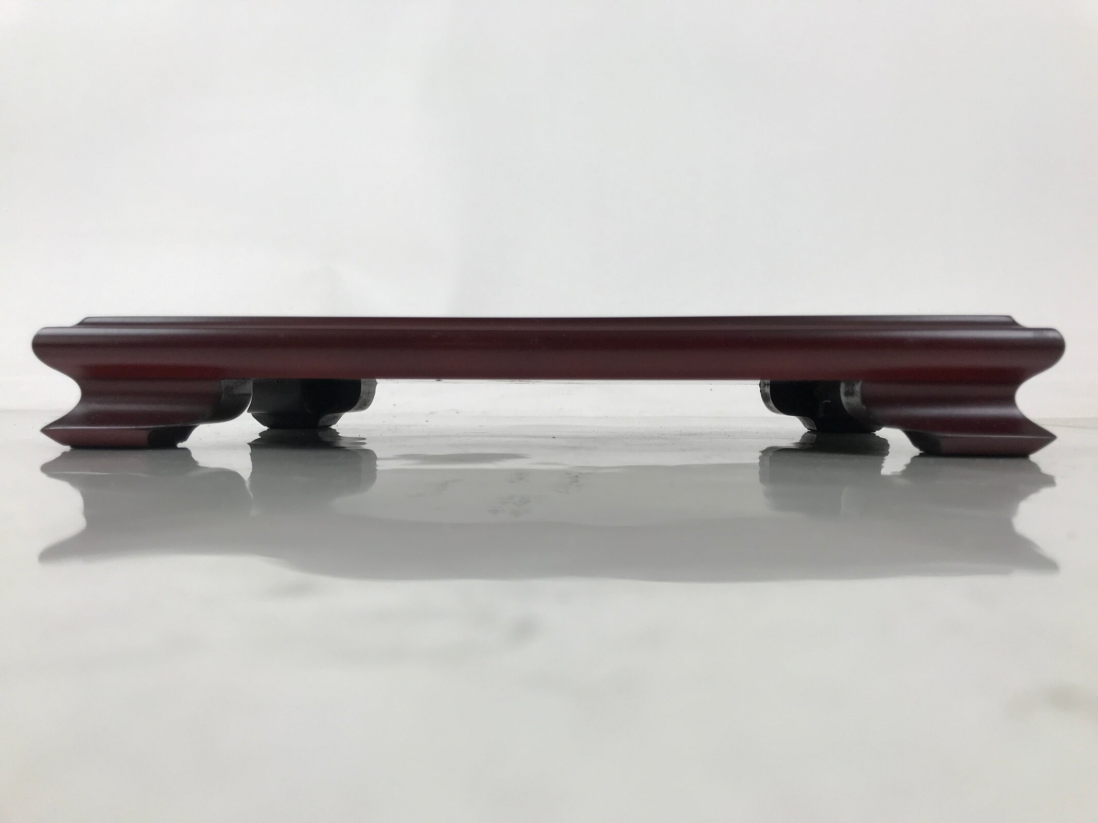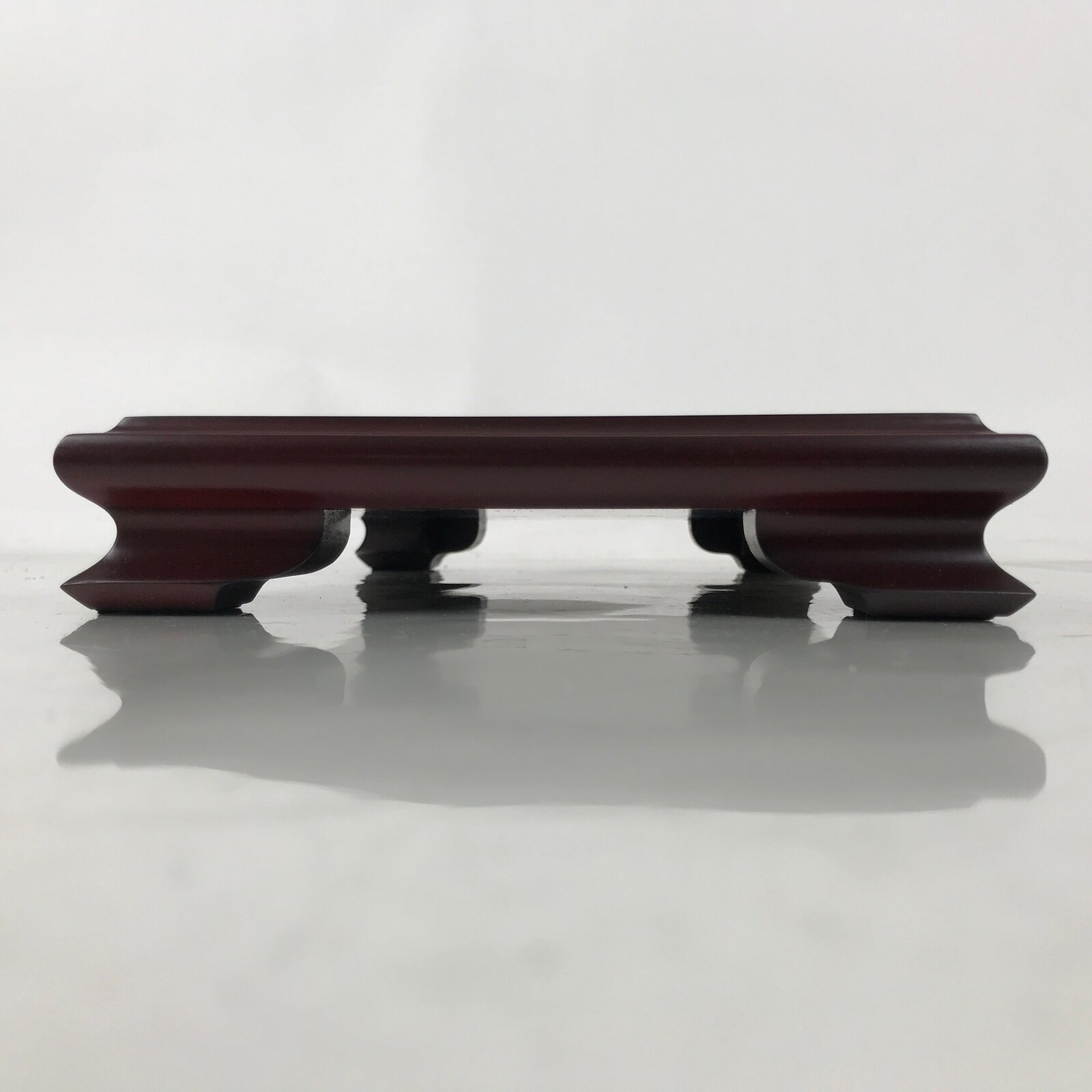 Used for the display of flower vases, ikebana arrangements, bonsai, and more, this large, rectangle-shaped kadai stands on four sturdy and short legs. The color is a reddish brown that showcases the stand’s natural wood grain. There are felt pads on the legs to prevent scratching other surfaces.