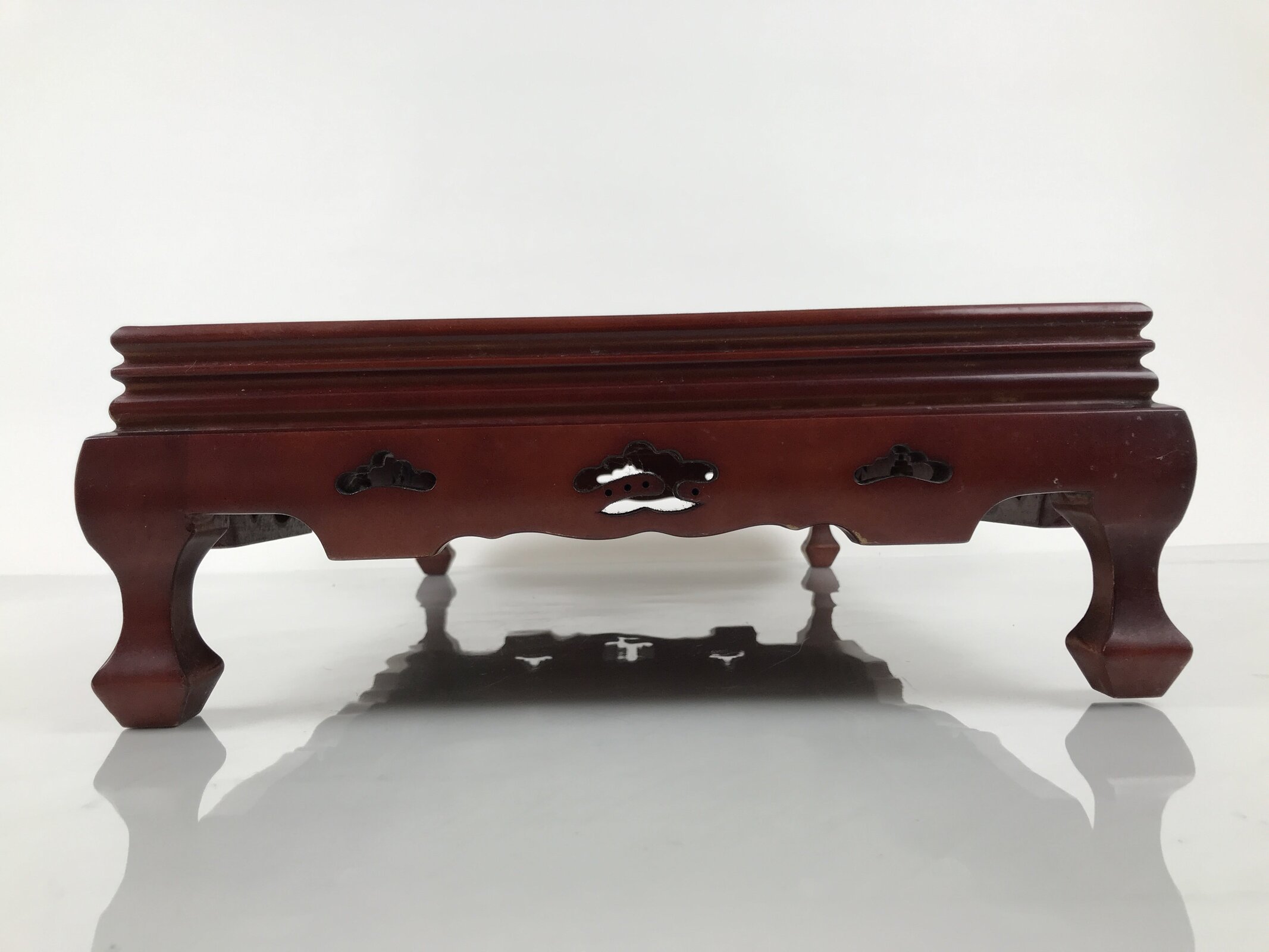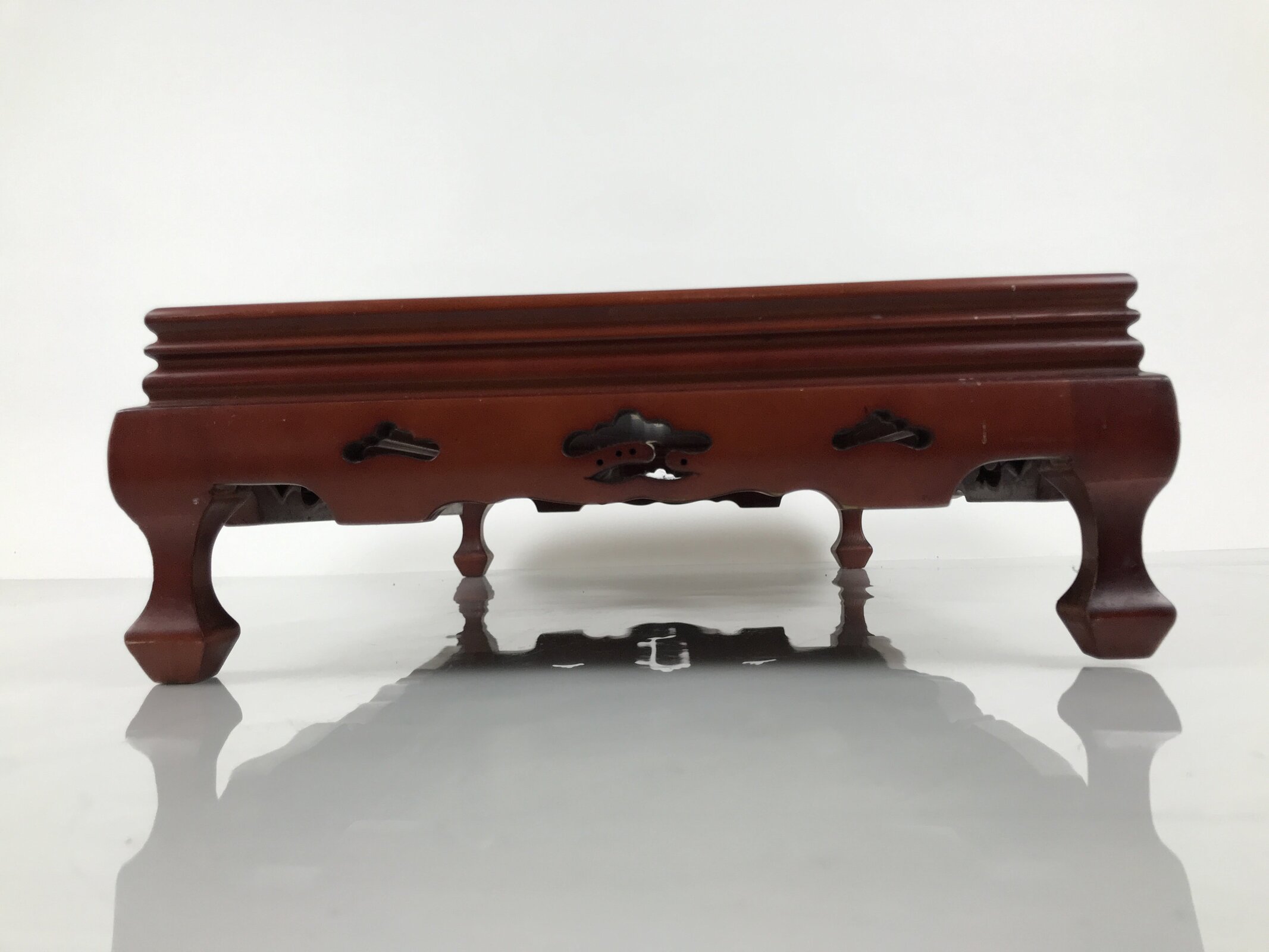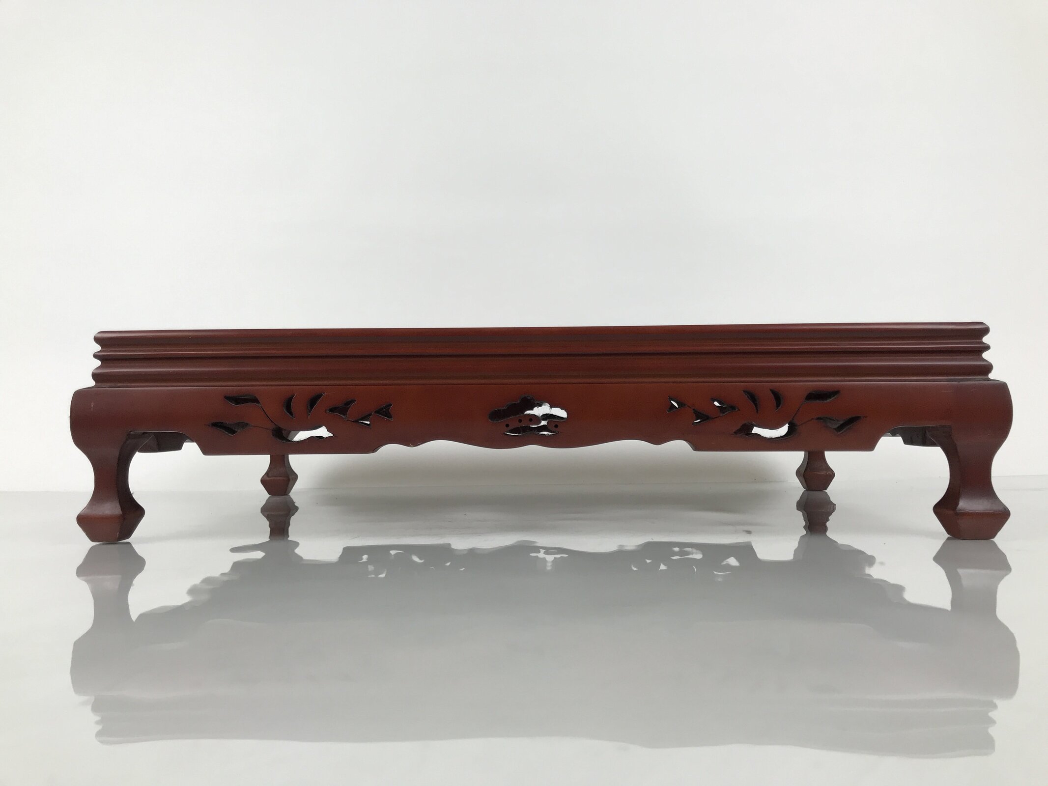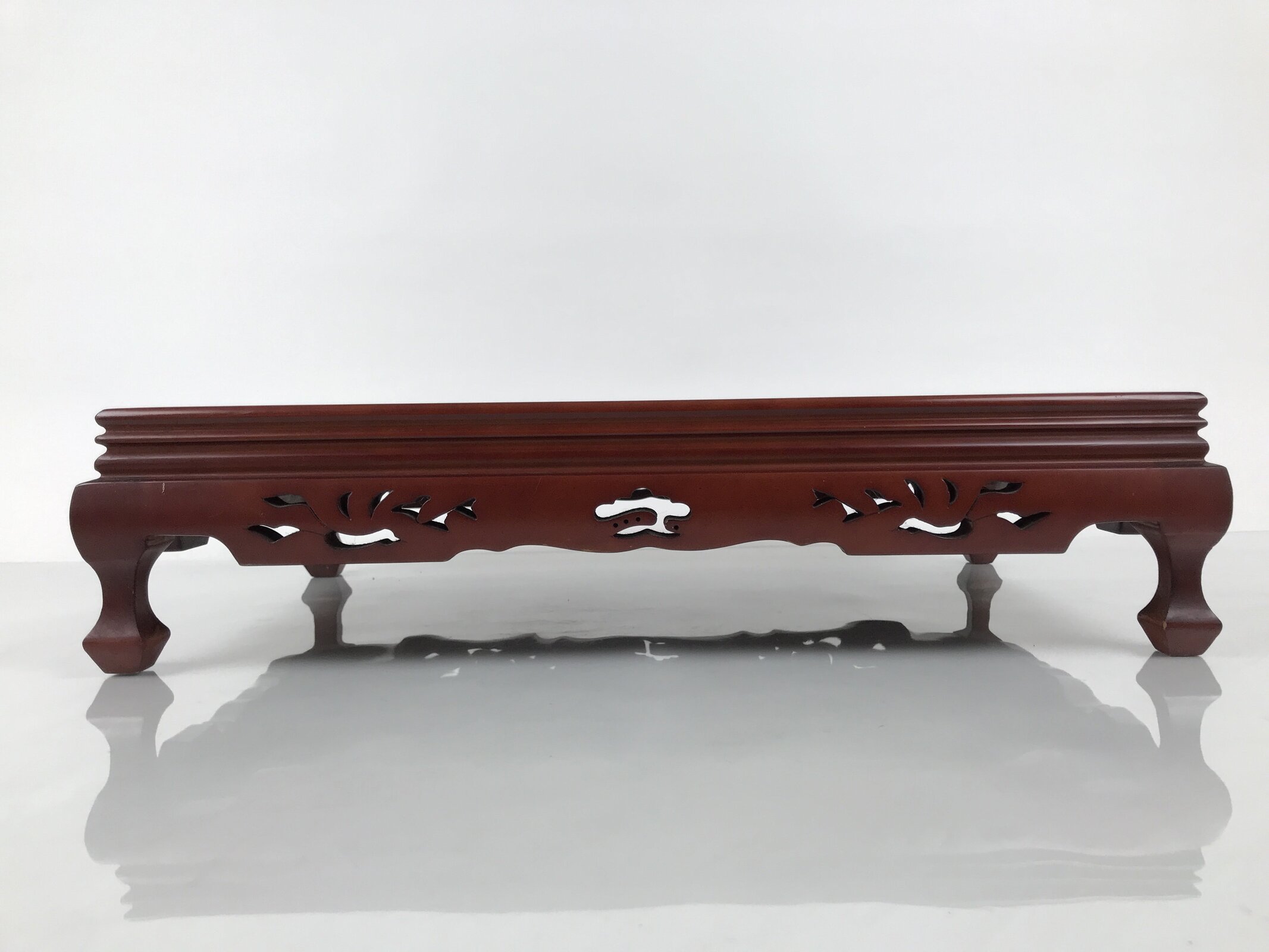 Used for the display of flower vases, ikebana arrangements, bonsai, and more, this large, rectangular-shaped kadai stands on four sturdy legs and has a simple bevel on the top edge to prevent items from slipping.