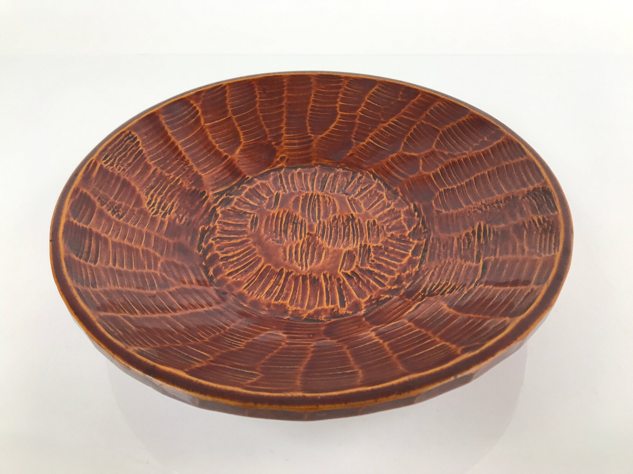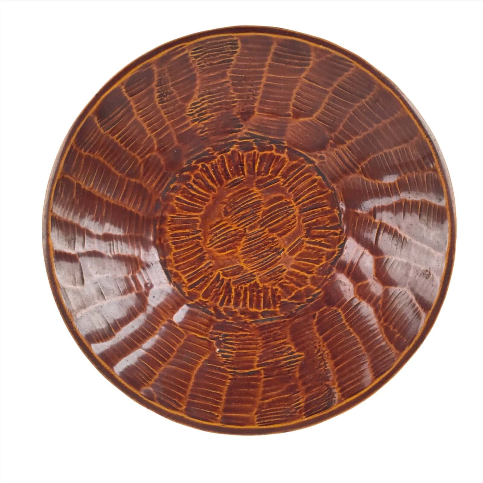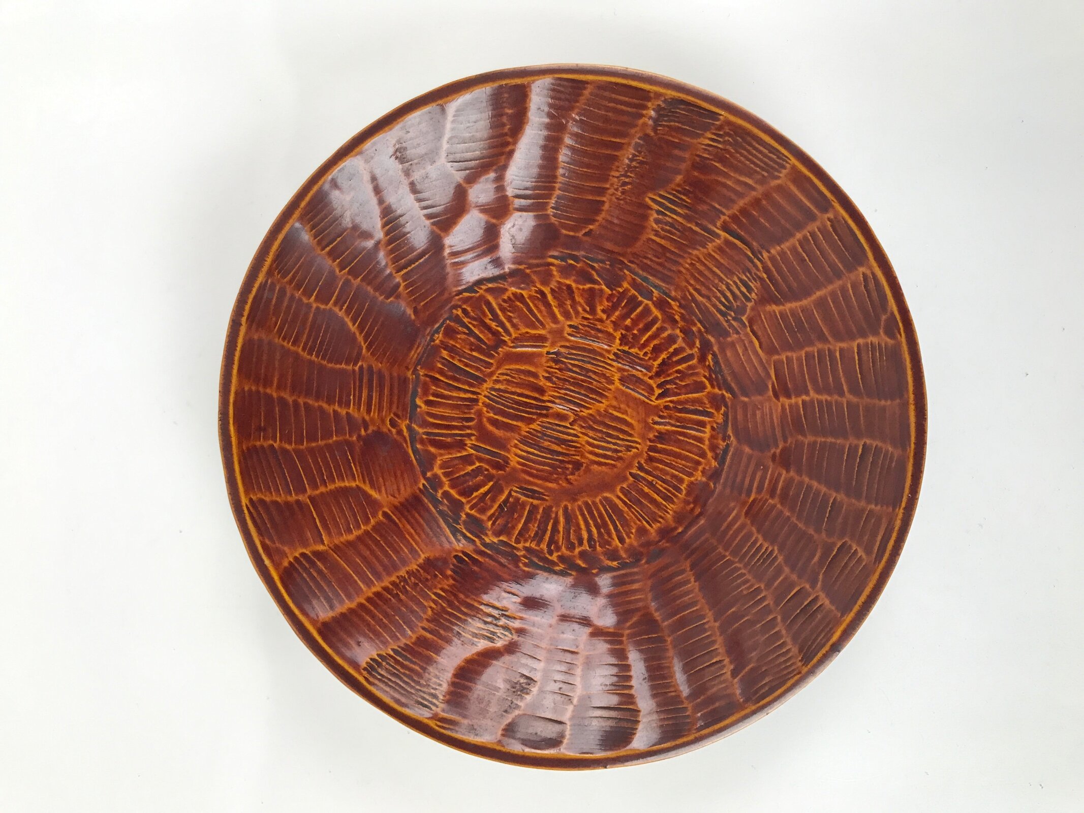 Handcarved throughout and coated with a glossy brown in classic shunkei-nuri style, this sturdy round bowl provides both function and beautiful decor.
