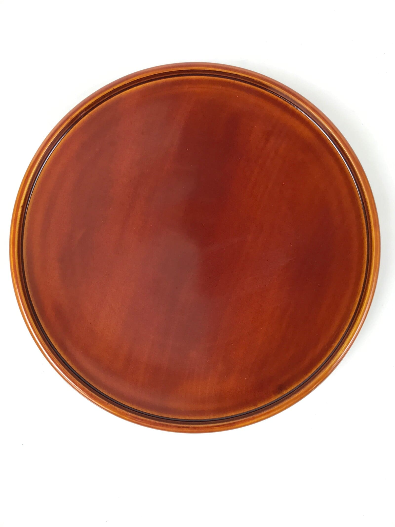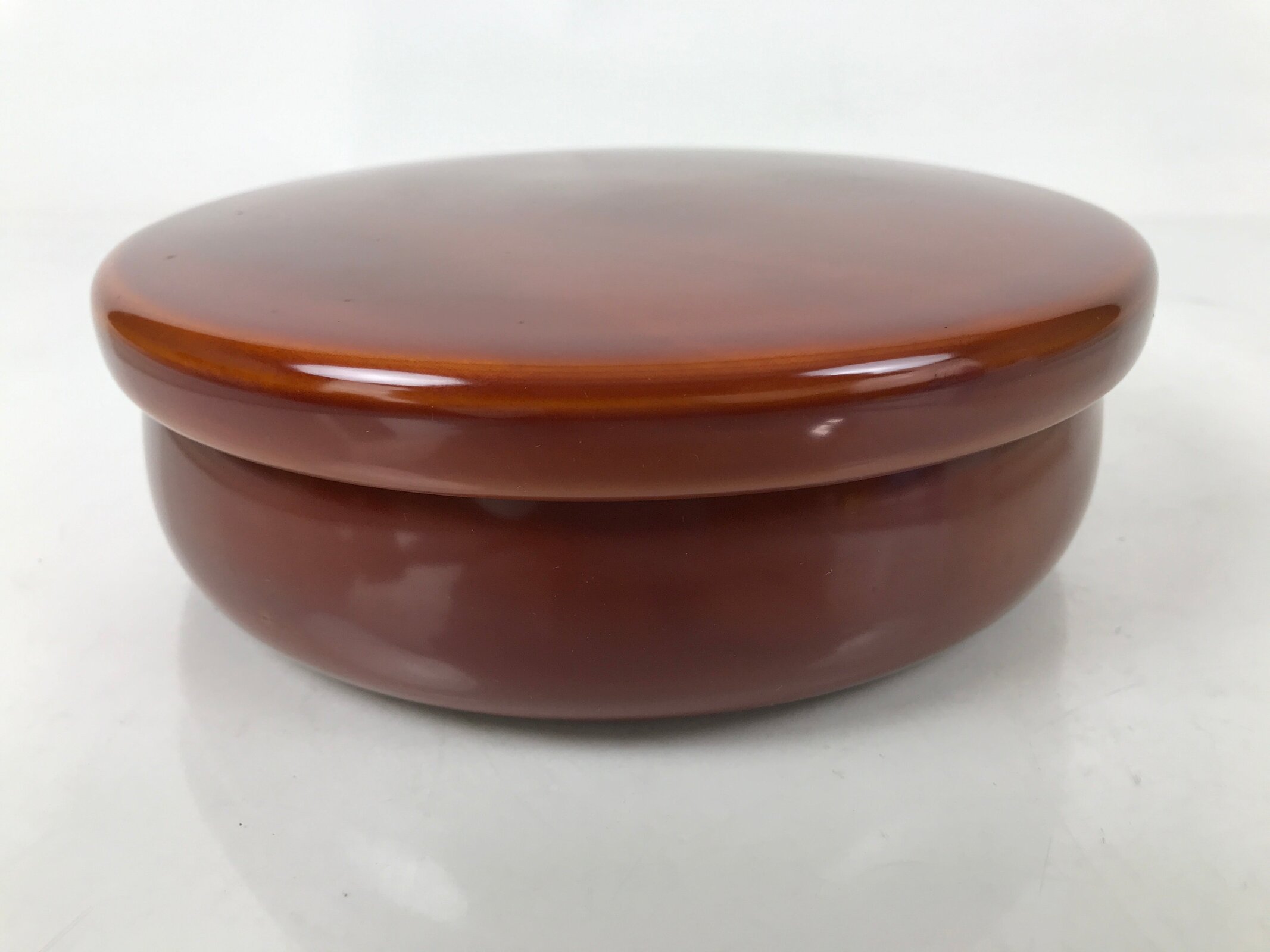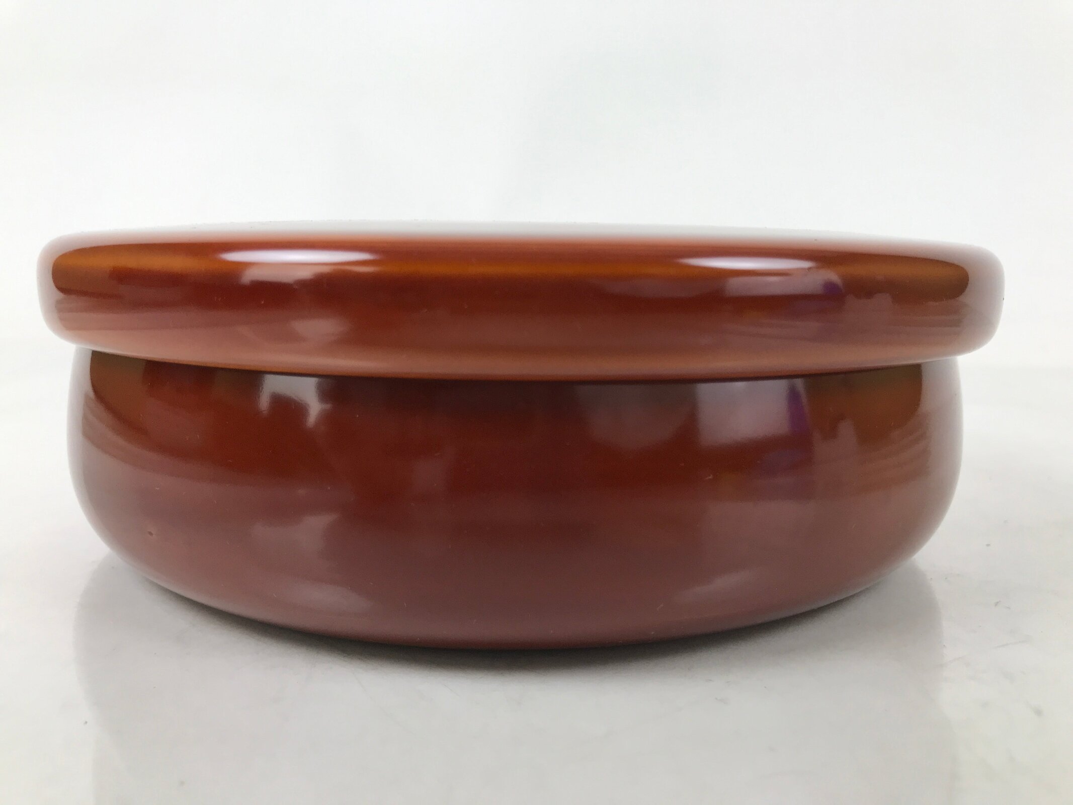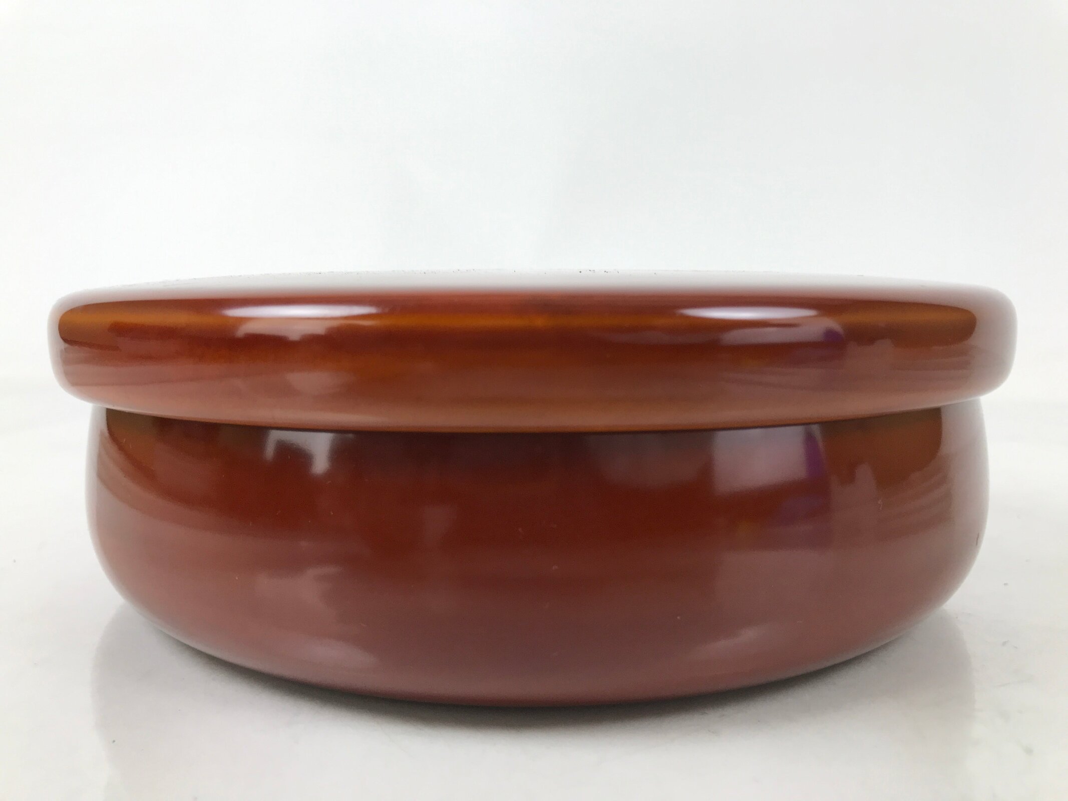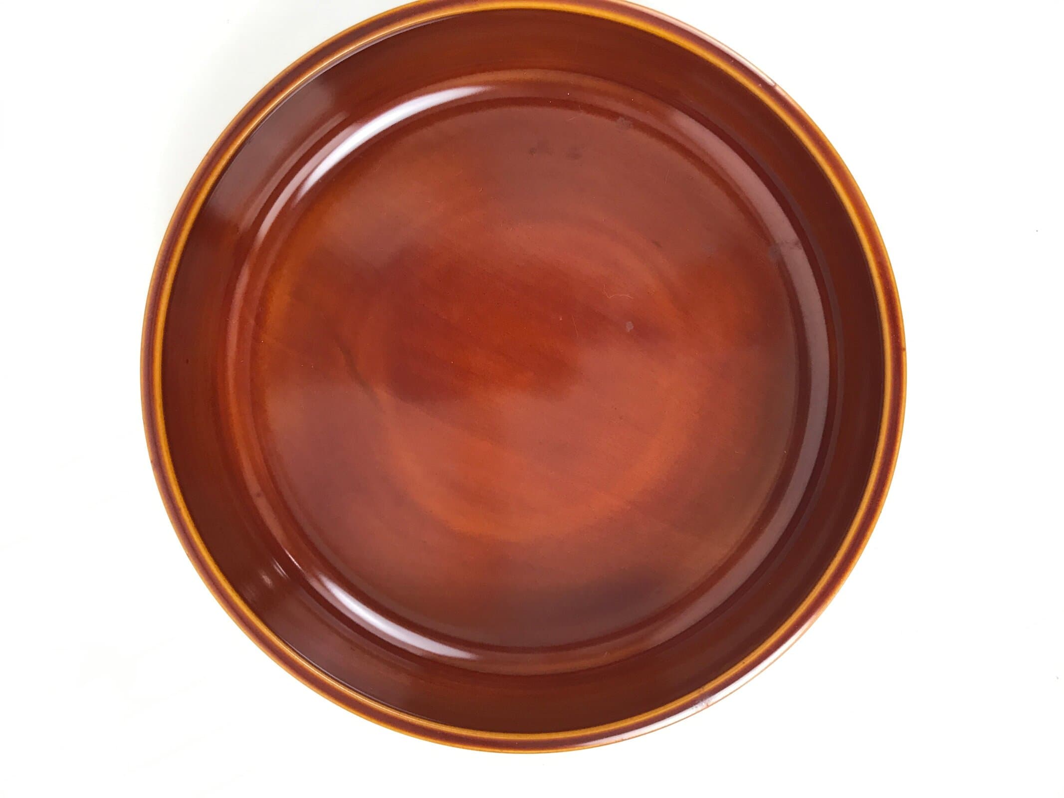 This is a Japanese vintage lidded snack bowl with a tray in the Shunkei-Nuri style. It is a caramel brown color, true to the shunkei-Nuri style of lacquerware. It is typically used for serving snacks, such as senbei crackers or sweets, to guests in one’s home, business, etc. It is also commonly used in tea ceremonies to serve and display traditional namagashi sweets.