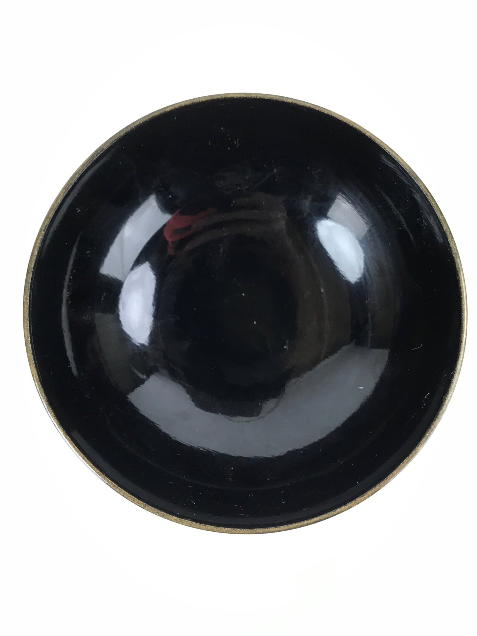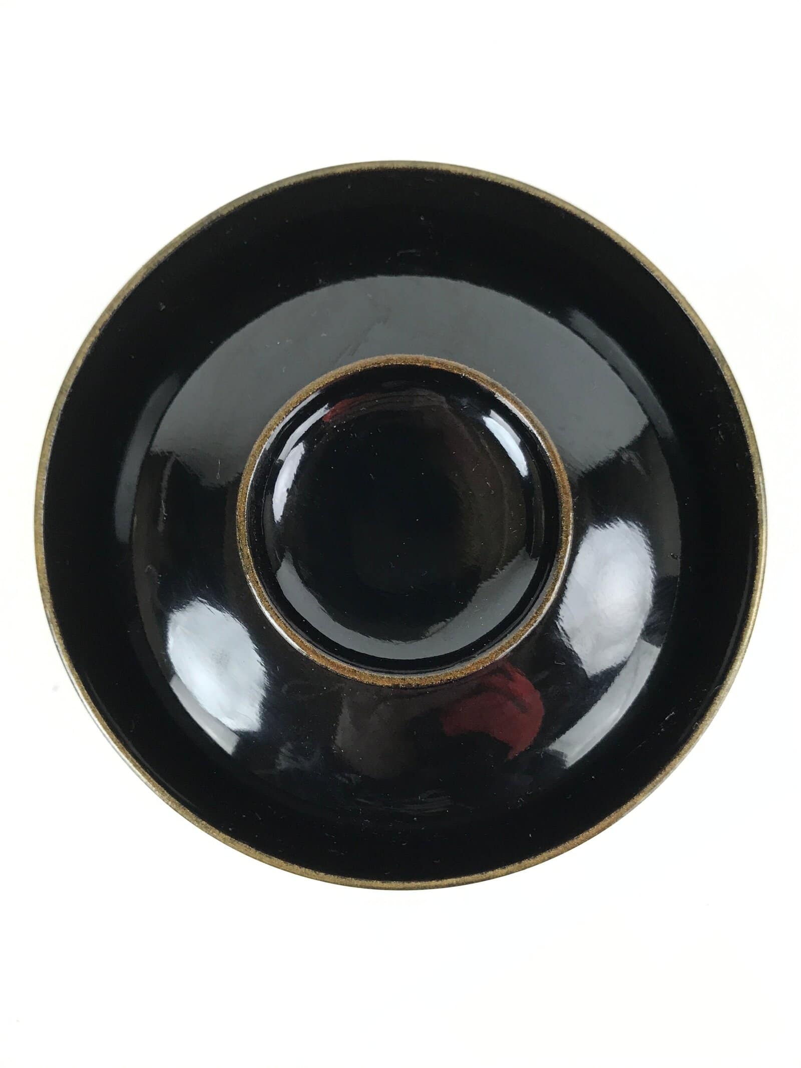 A shining black with a gold rim, this vintage lacquered wooden bowl with lid is a beautifully decorative addition to any traditional Japanese dinnerware set. This particular bowl is considered a nimonowan, a bowl made for boiled main dishes such as vegetables, fish, and sometimes tofu. It can also be used for soups and rice.