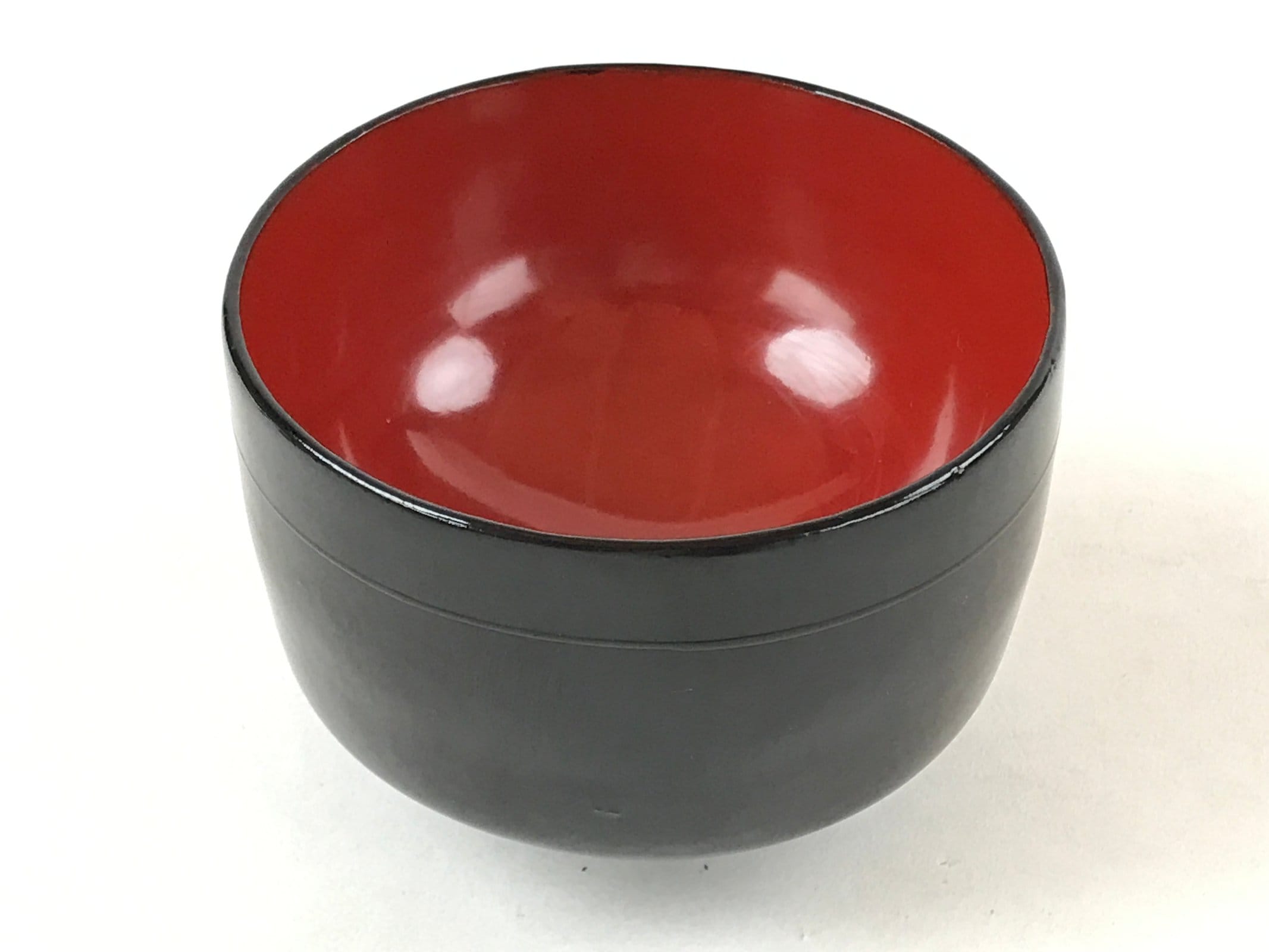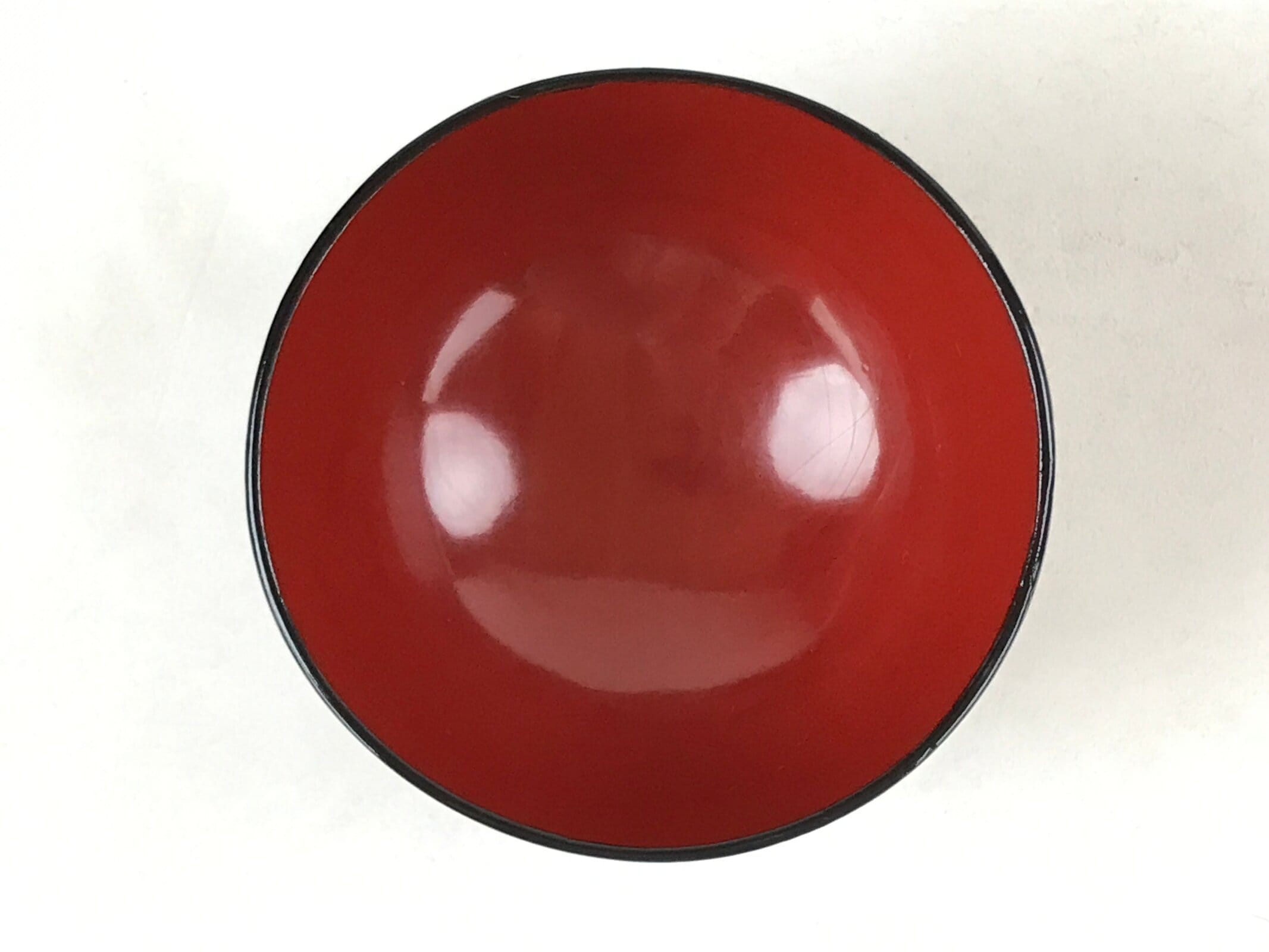 Japanese Lacquered Wooden Lidded Bowl Owan Vtg Rice Soup Dish Red Black LB88