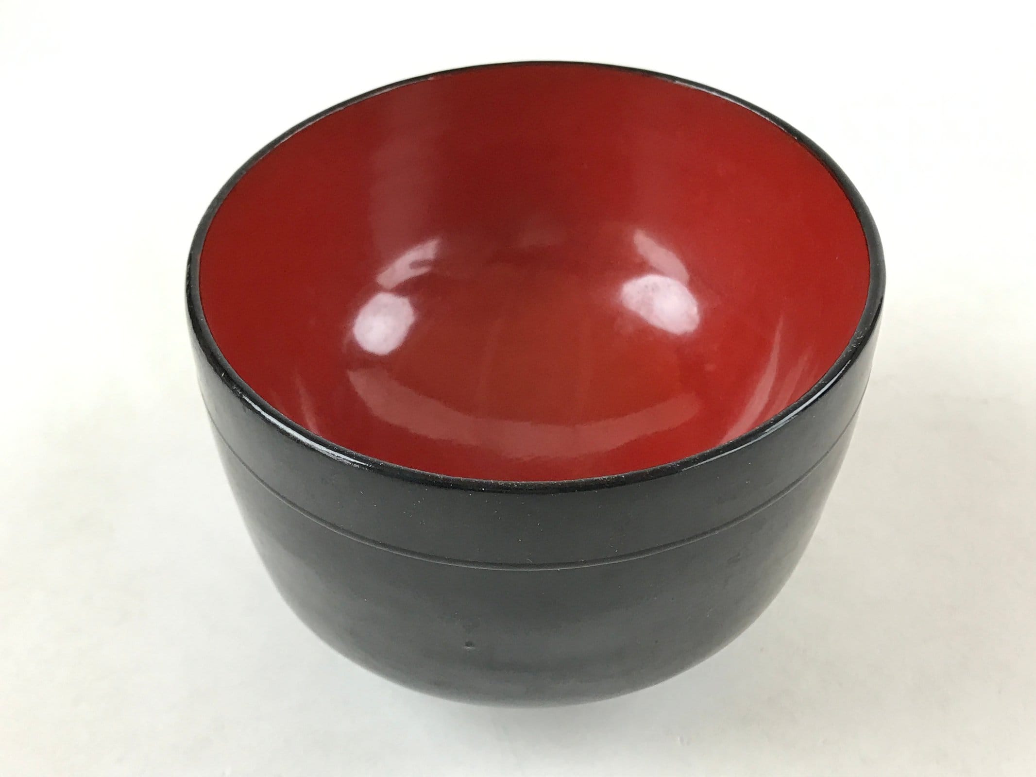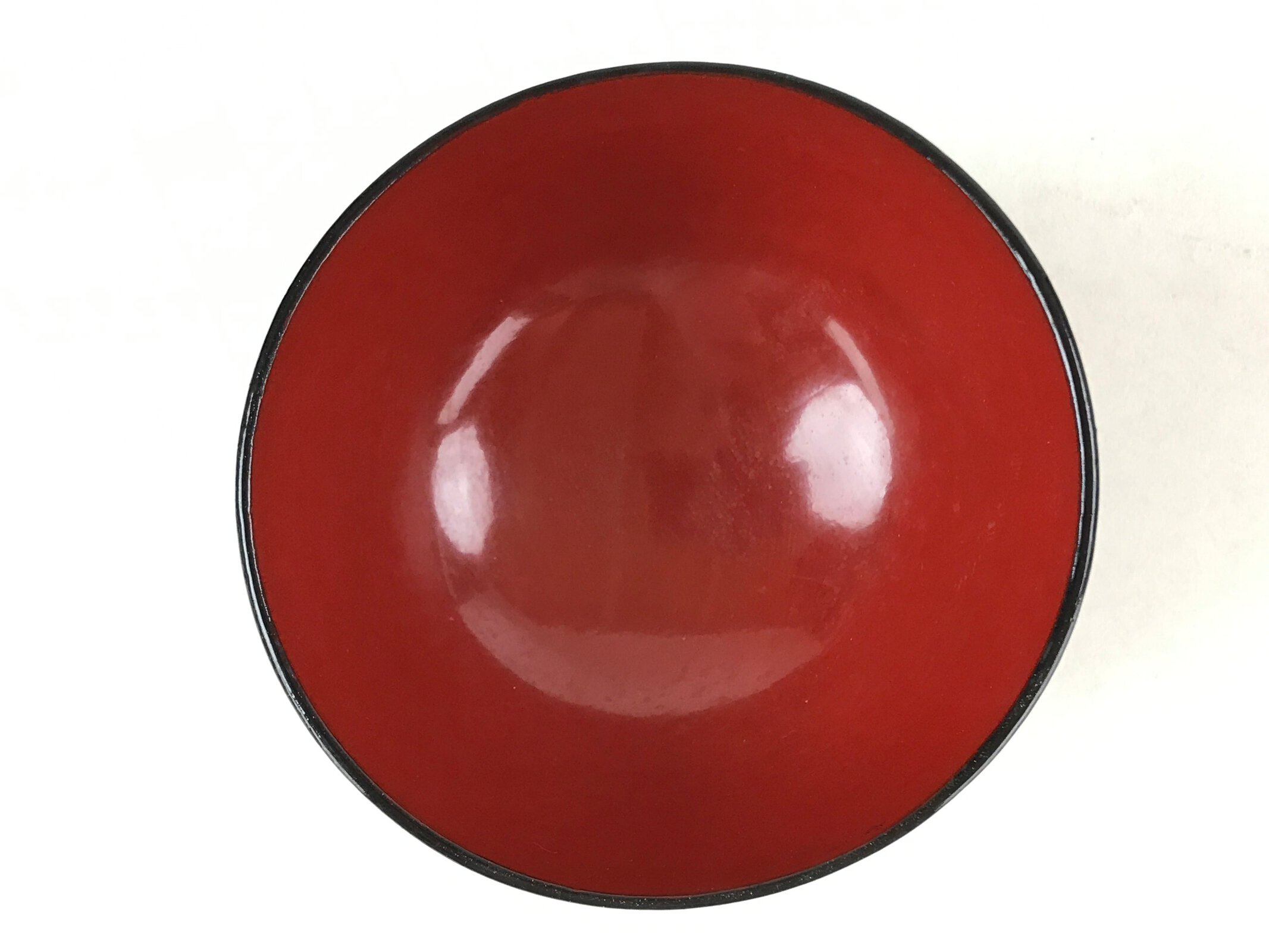 Japanese Lacquered Wooden Lidded Bowl Owan Vtg Rice Soup Dish Red Black LB96