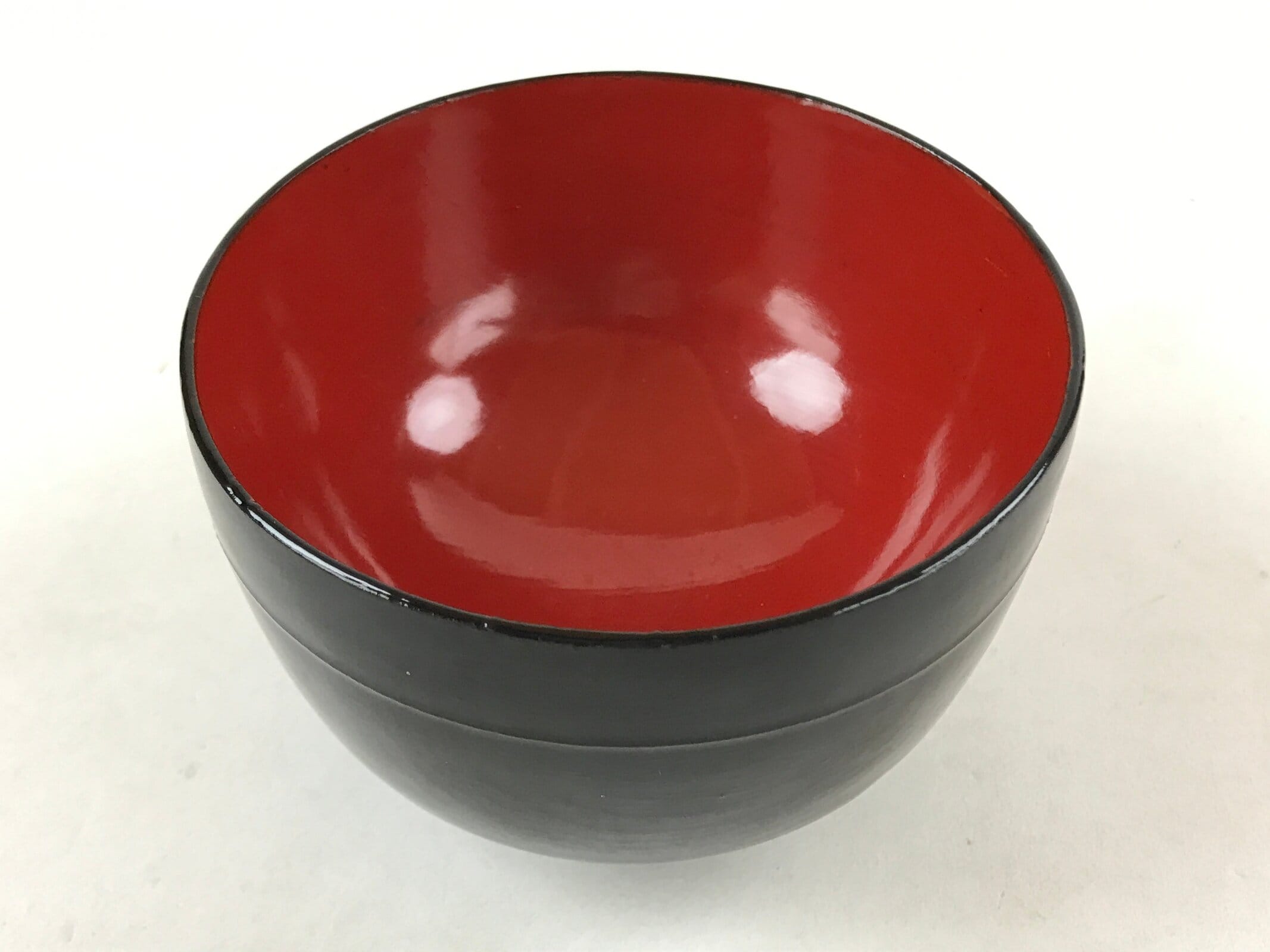 Japanese Lacquered Wooden Lidded Bowl Owan Vtg Rice Soup Dish Red Black LB98