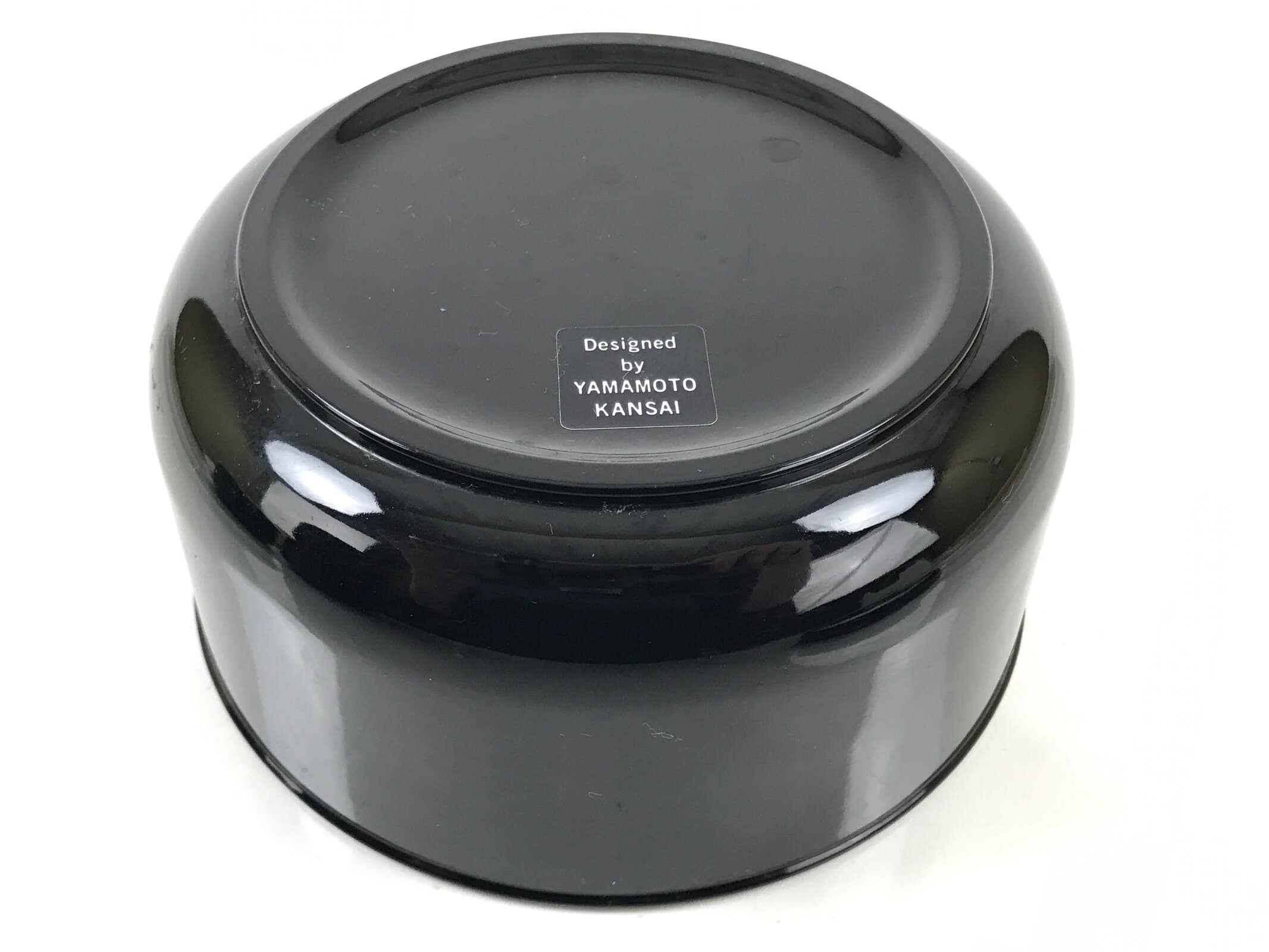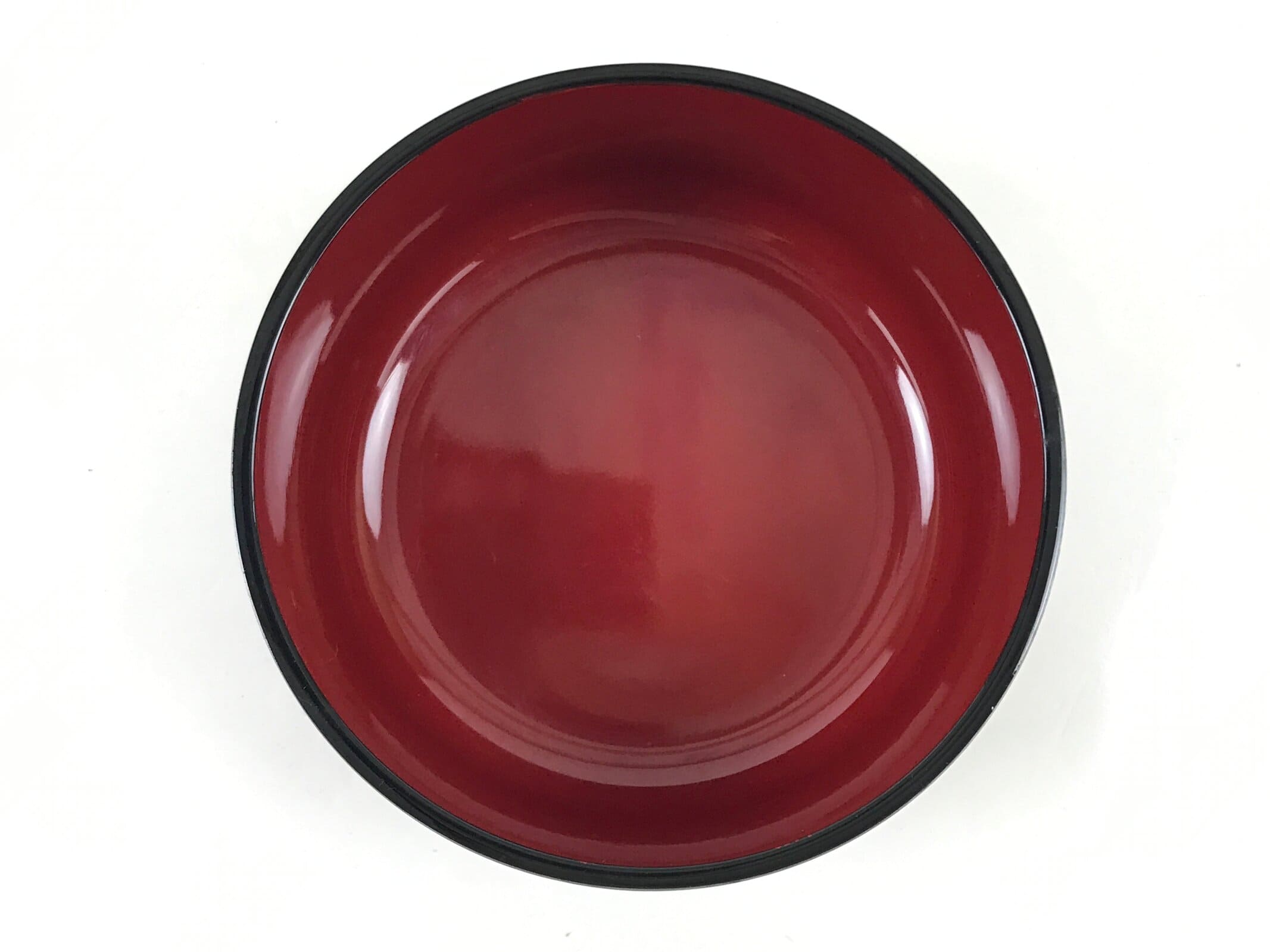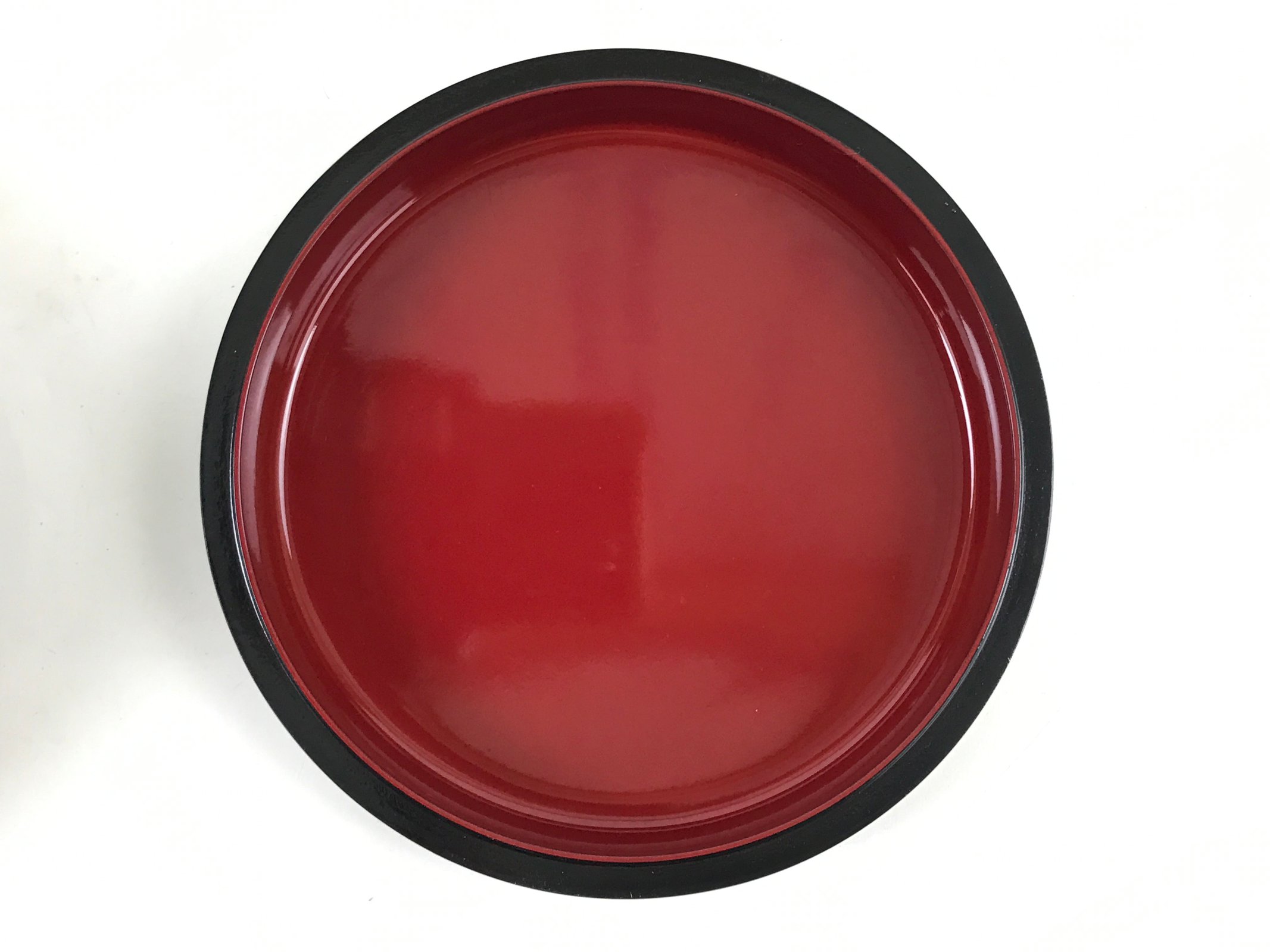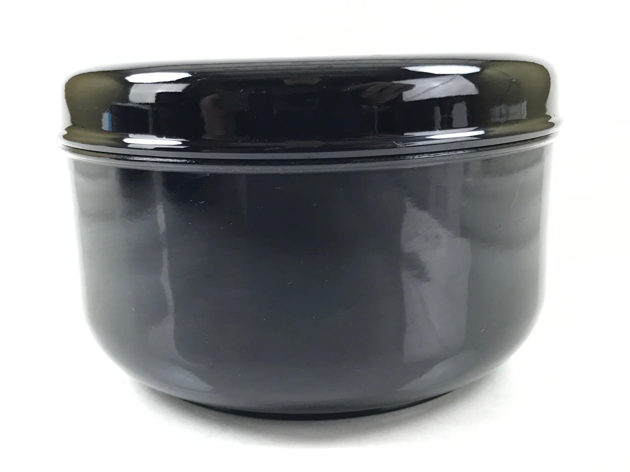 This is a vintage lidded Japanese rice container. Round and coated with a classic glossy black lacquer on the outside and red on the inside, this dish is used to hold rice/mixed rice during a kaiseki set meal. Due to its compact size, yet generous volume, it makes an excellent bento box as well. The lid features a red fish jumping out of water.