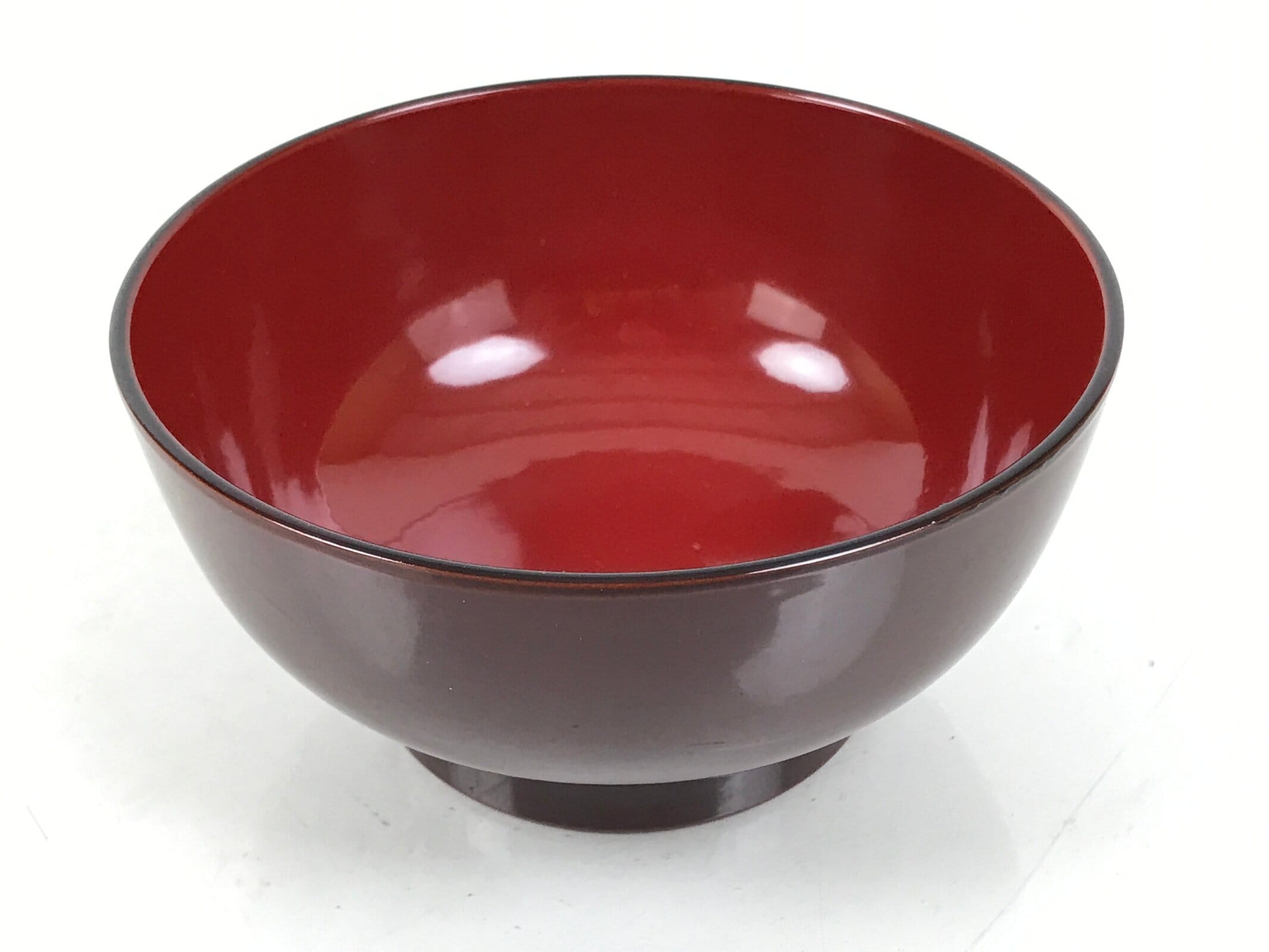 This is a vintage Japanese Wajima wooden lacquered rice bowl. It is a classic red on the inside with the rest a rich brown color, made with natural lacquer. It is a beautifully handcrafted addition to any traditional Japanese dinnerware set.