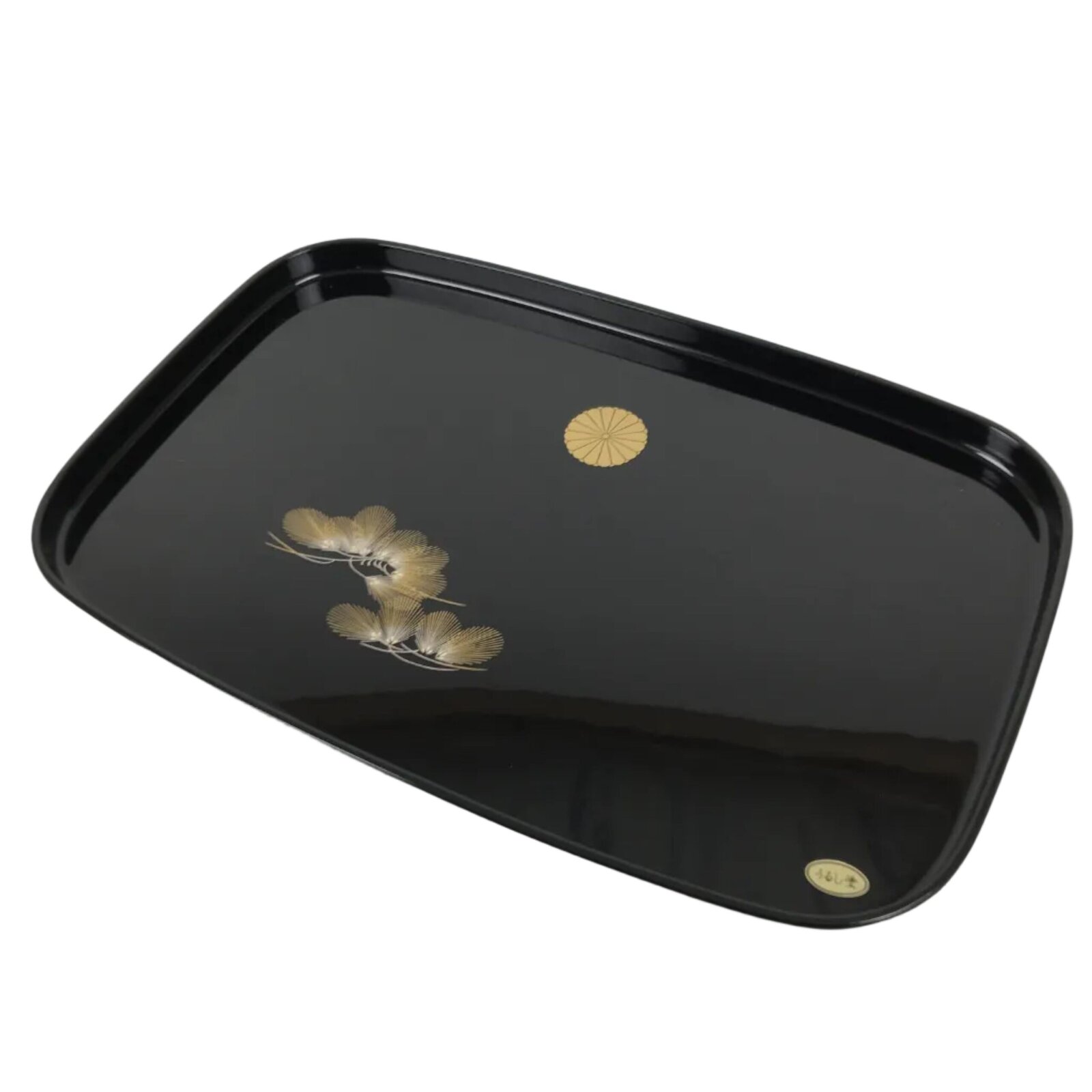 March 20, 2026Japanese Lacquered Wood Serving Tray Obon Rectangle Black Gold Makie Pine L590
