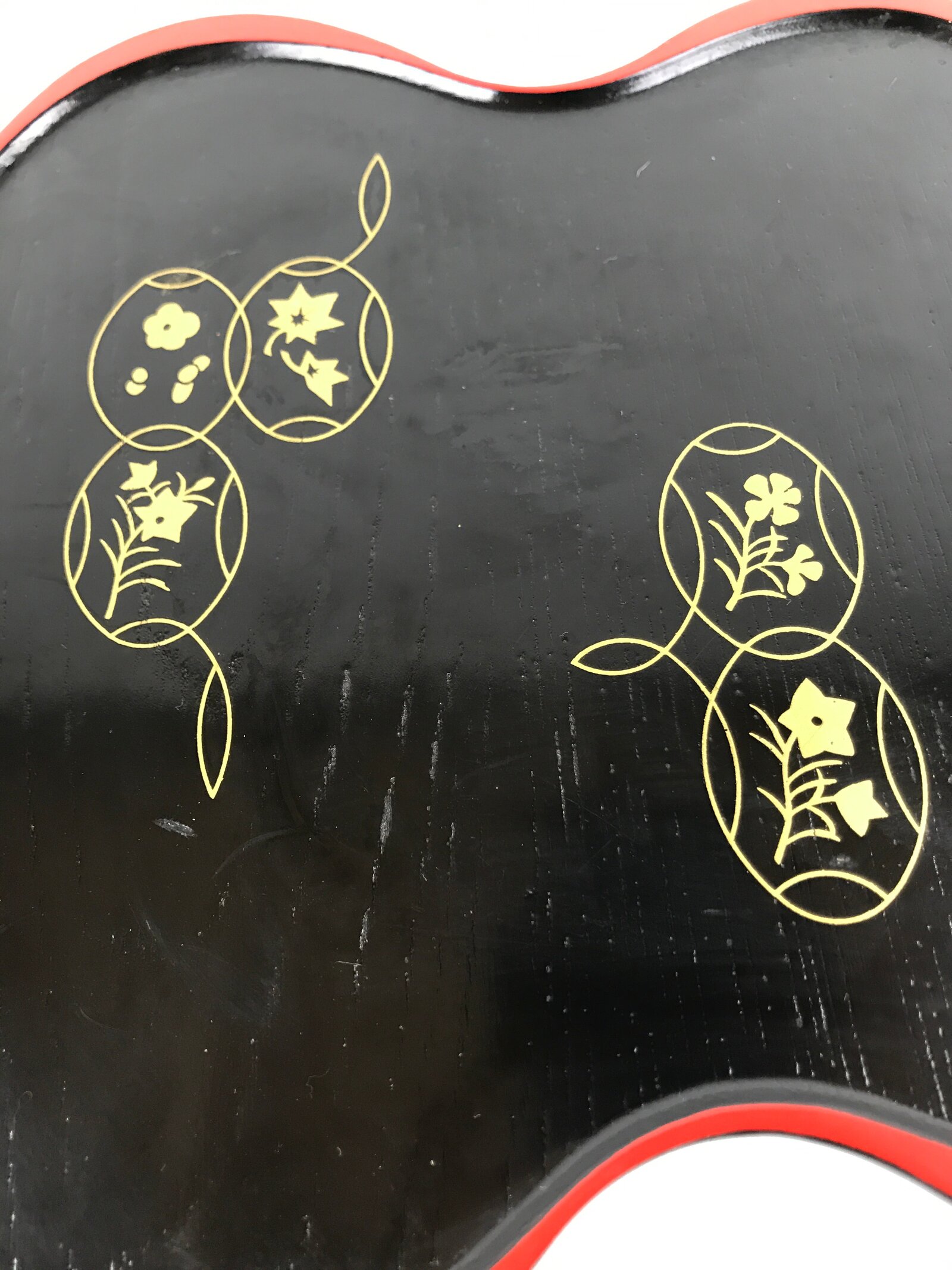 January 22, 2026Japanese Lacquered Wooden Serving Tray Vtg Hyotan Gourd Black Red Makie L259