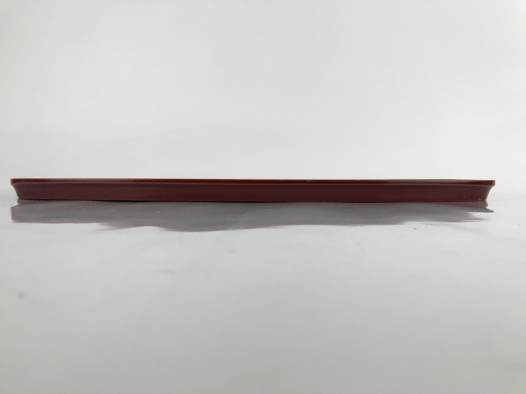 This rounded rectangular tray is coated with a glossy brown lacquer finish typical of shunkei-nuri lacquerware. The edges are slightly lifted to keep items from sliding off. Aside from usual purposes, this tray is ideal for displaying items on a tabletop such as a centerpiece.