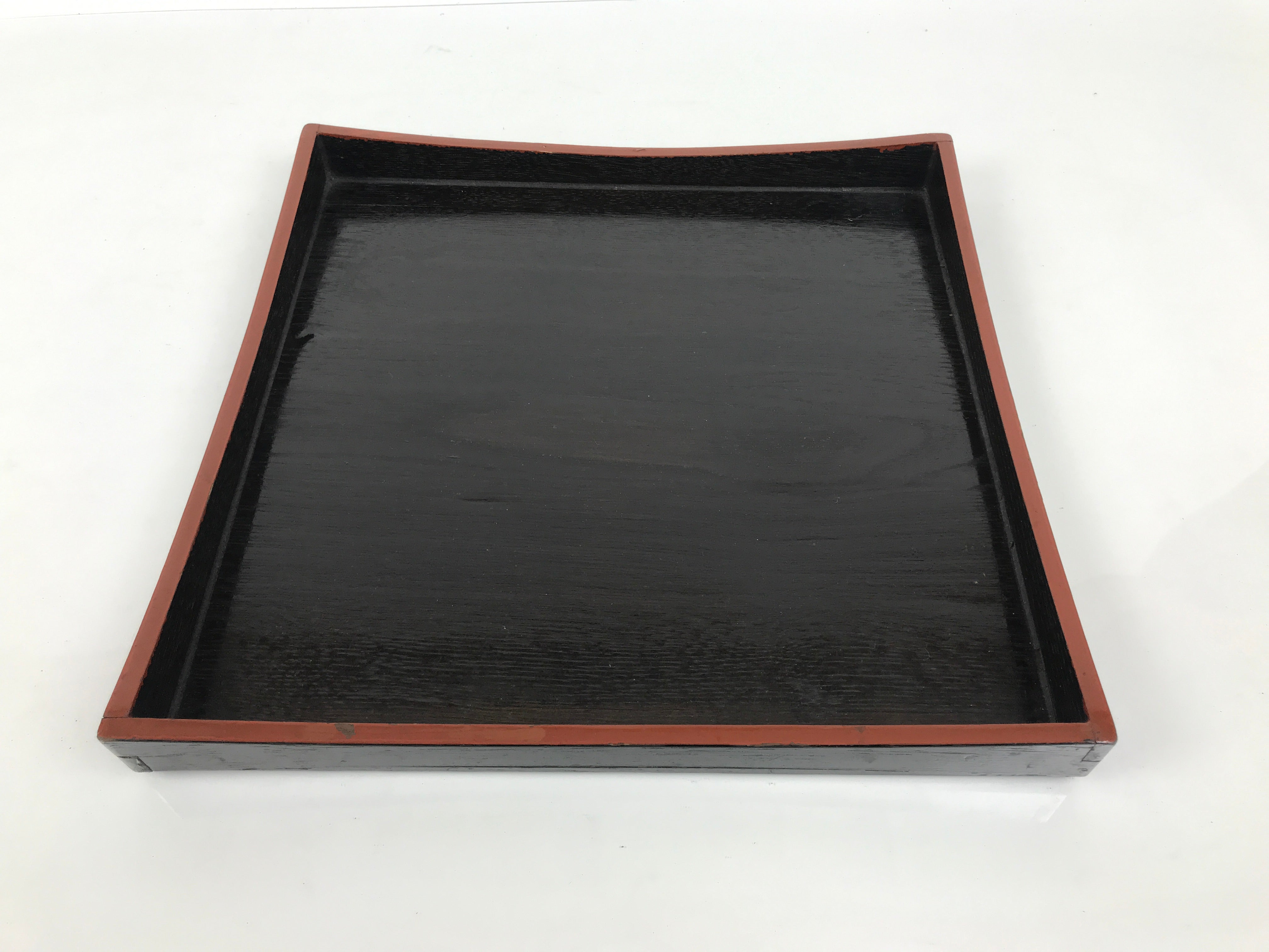 April 9, 2026Japanese Lacquered Wood Serving Tray Obon Vtg Square Curved Red Edge Black L613