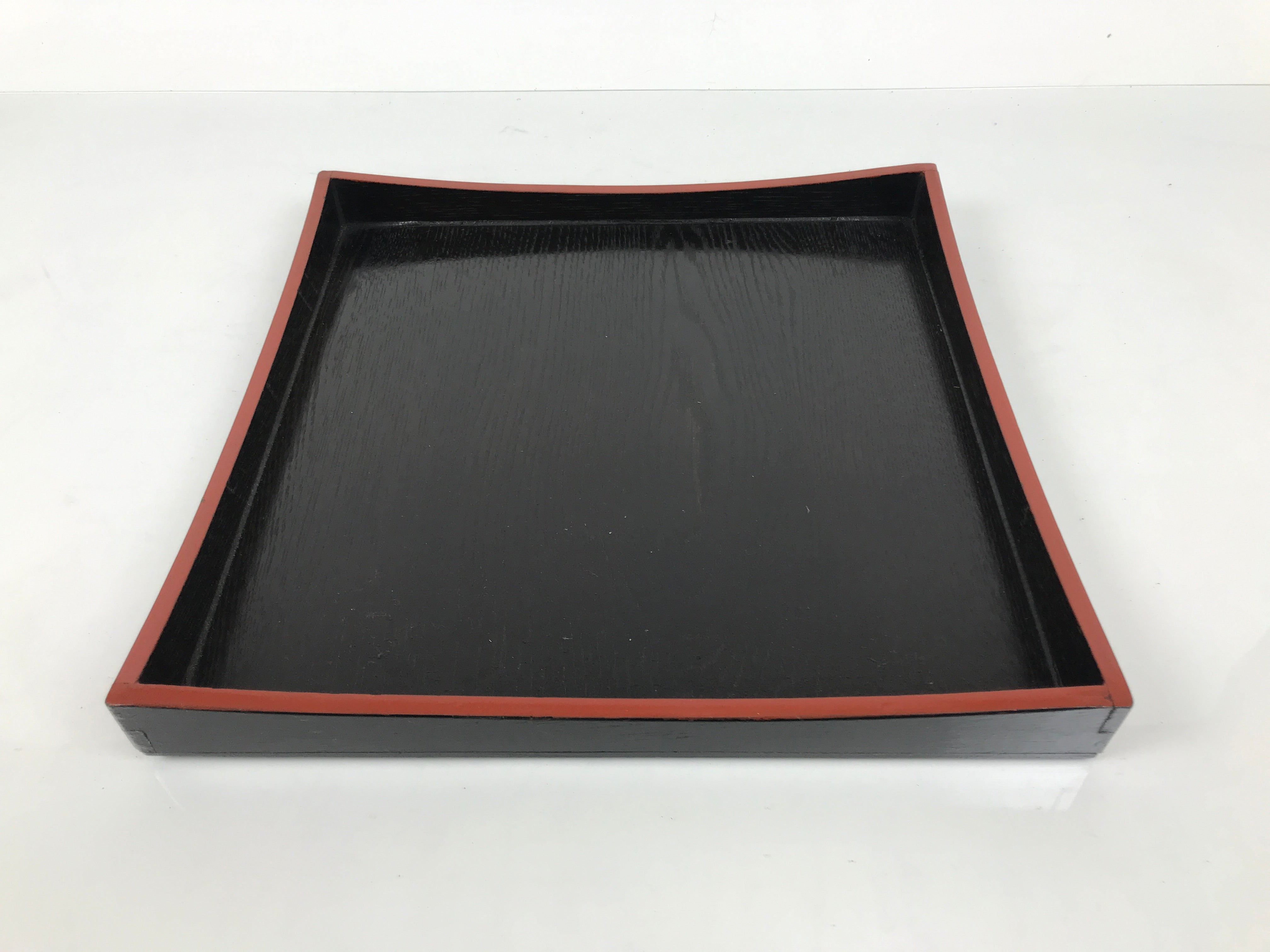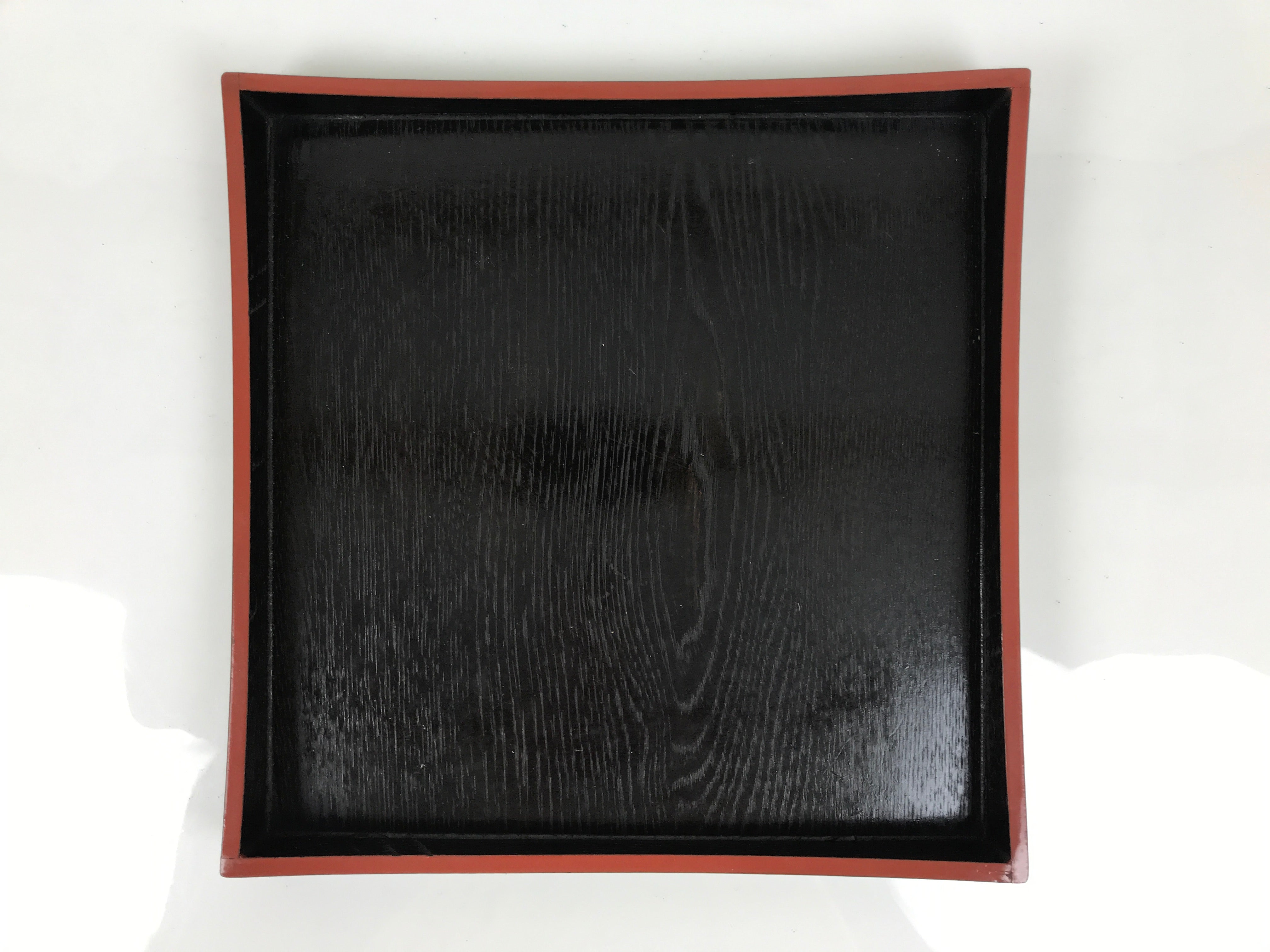 April 9, 2026Japanese Lacquered Wood Serving Tray Obon Vtg Square Curved Red Edge Black L614