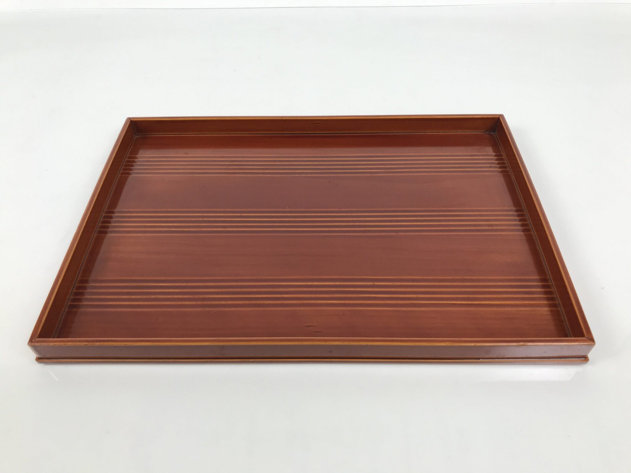 February 24, 2026Japanese Lacquered Wood Serving Tray Obon Vtg Hida Shunkei Rectangle Brown L569