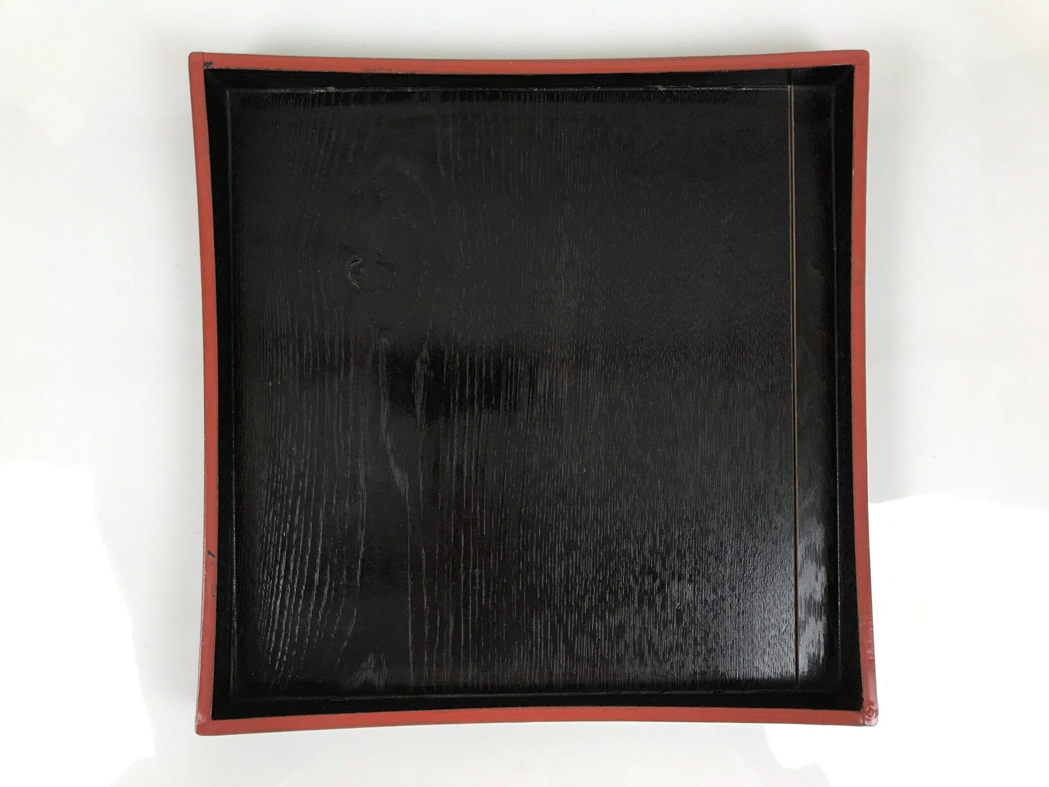 Japanese Lacquered Wood Serving Tray Obon Vtg Square Curved Red Edge Black L581
