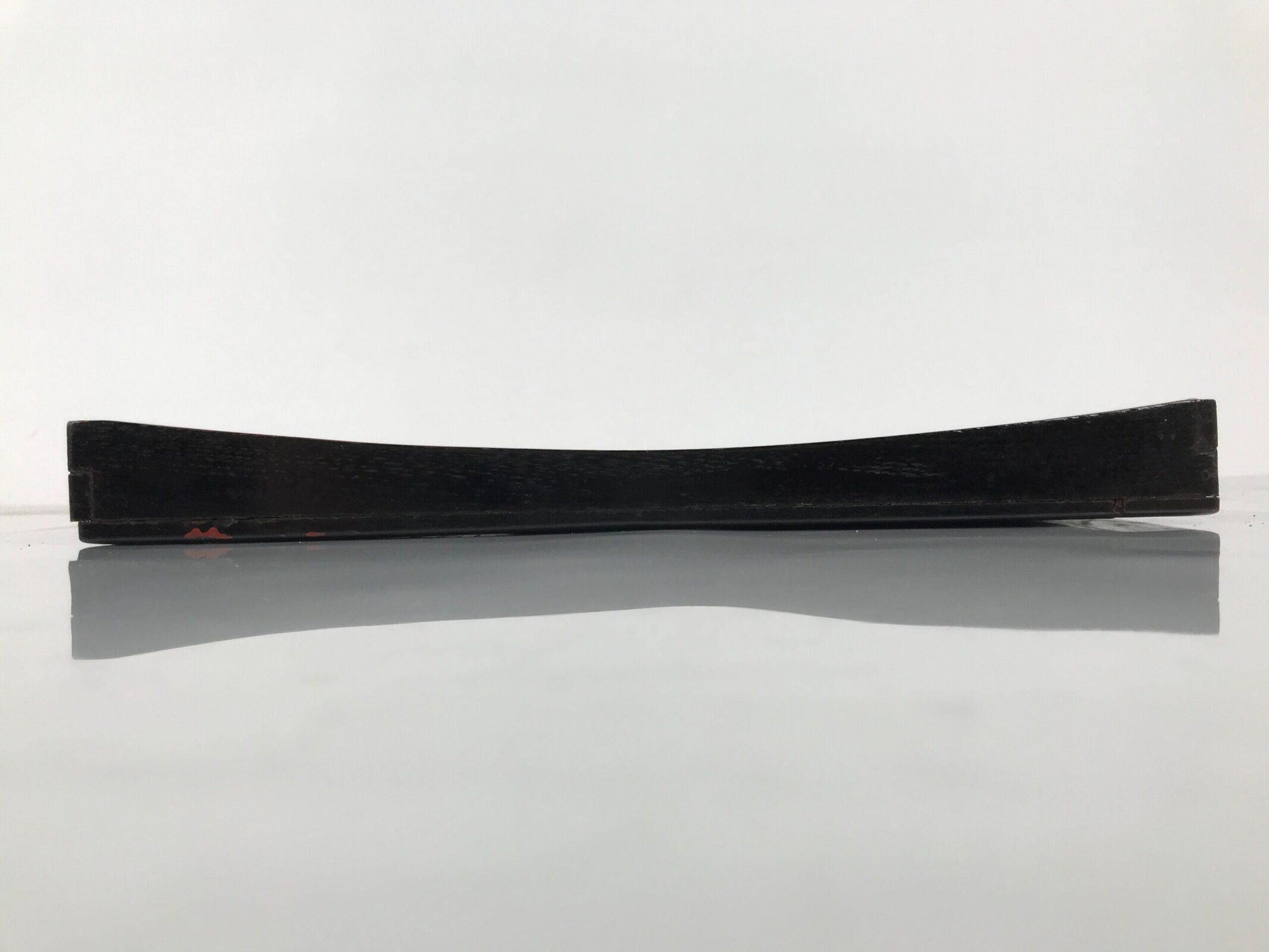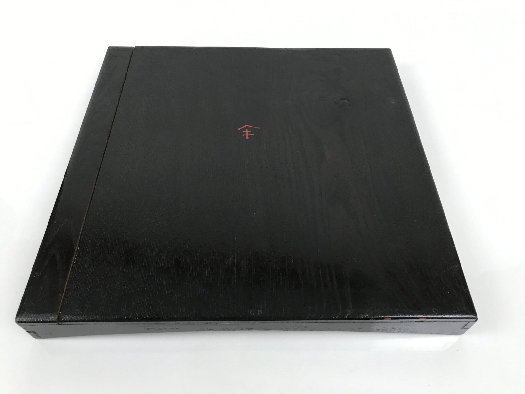 February 24, 2026Japanese Lacquered Wood Serving Tray Obon Vtg Square Curved Red Edge Black L582