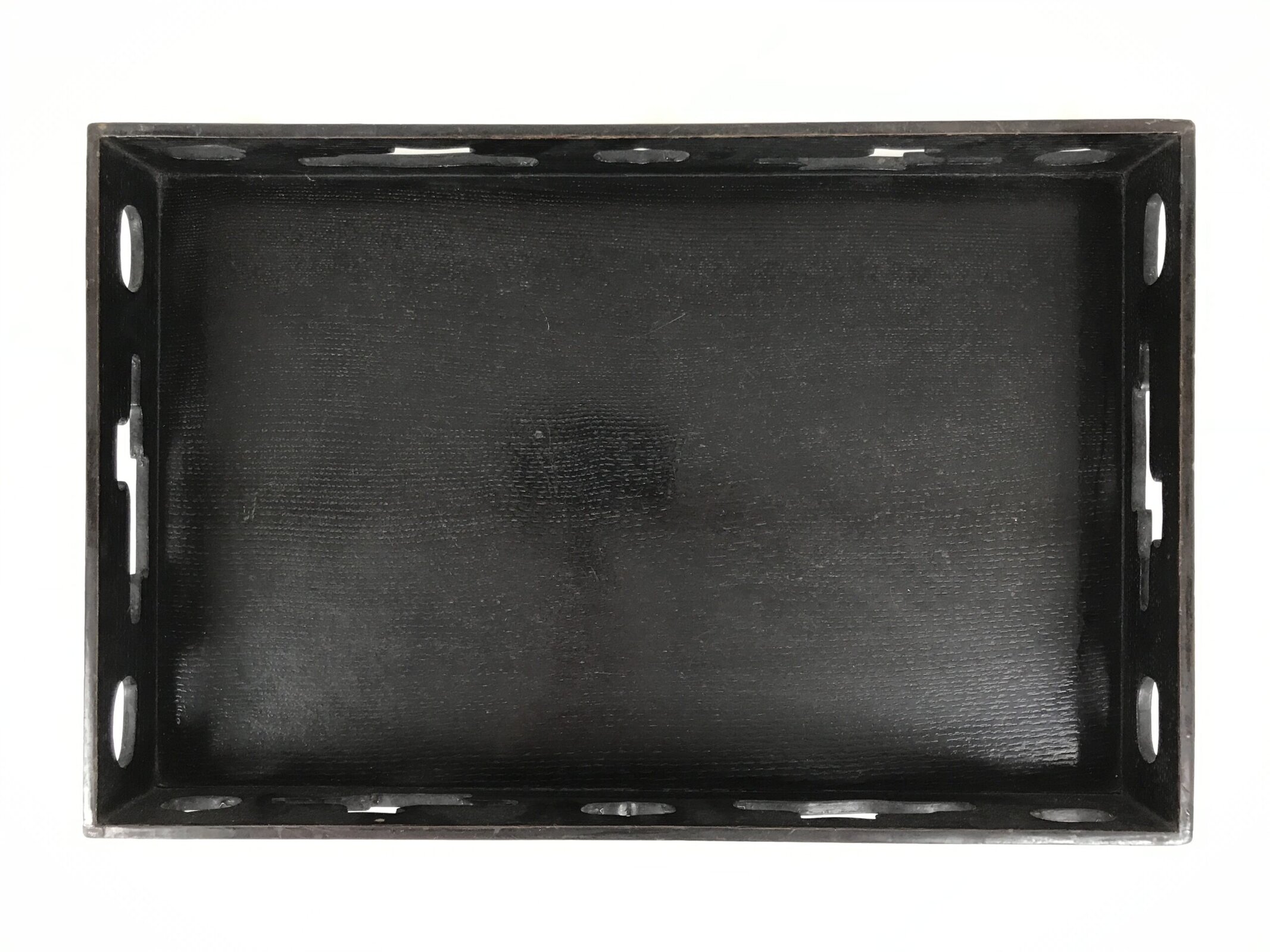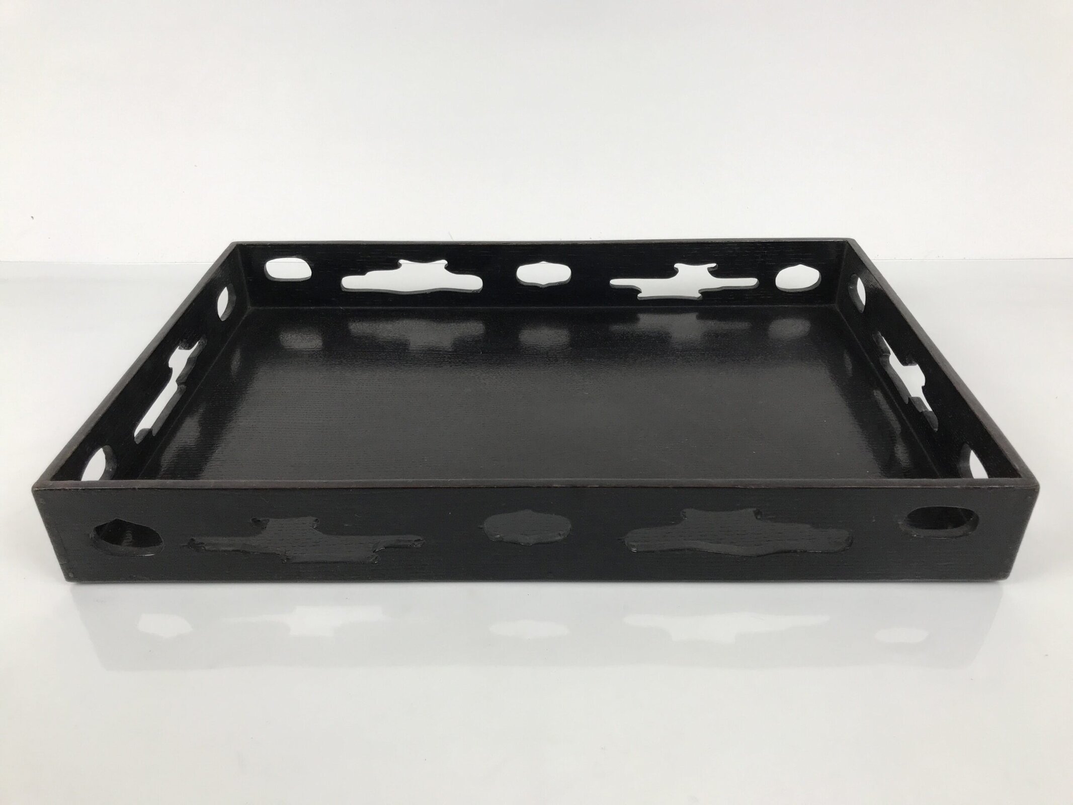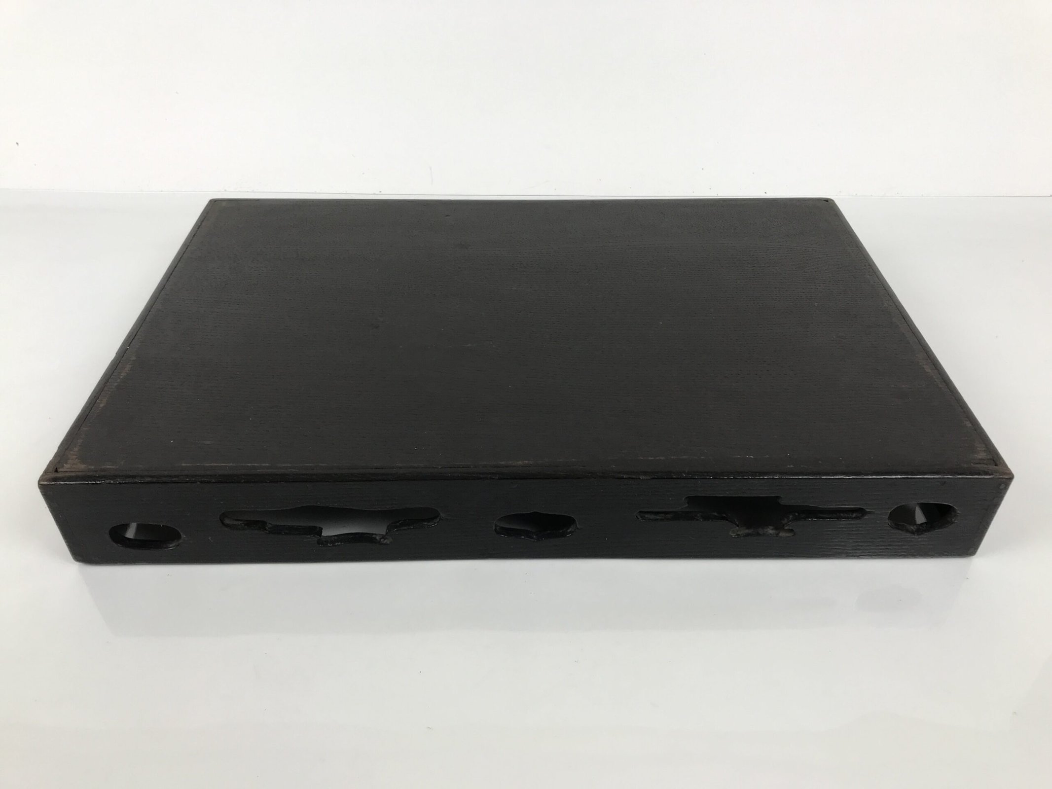 March 20, 2026Japanese Lacquered Wood Serving Tray Obon Vtg Rectangle Black Cutout Design L585