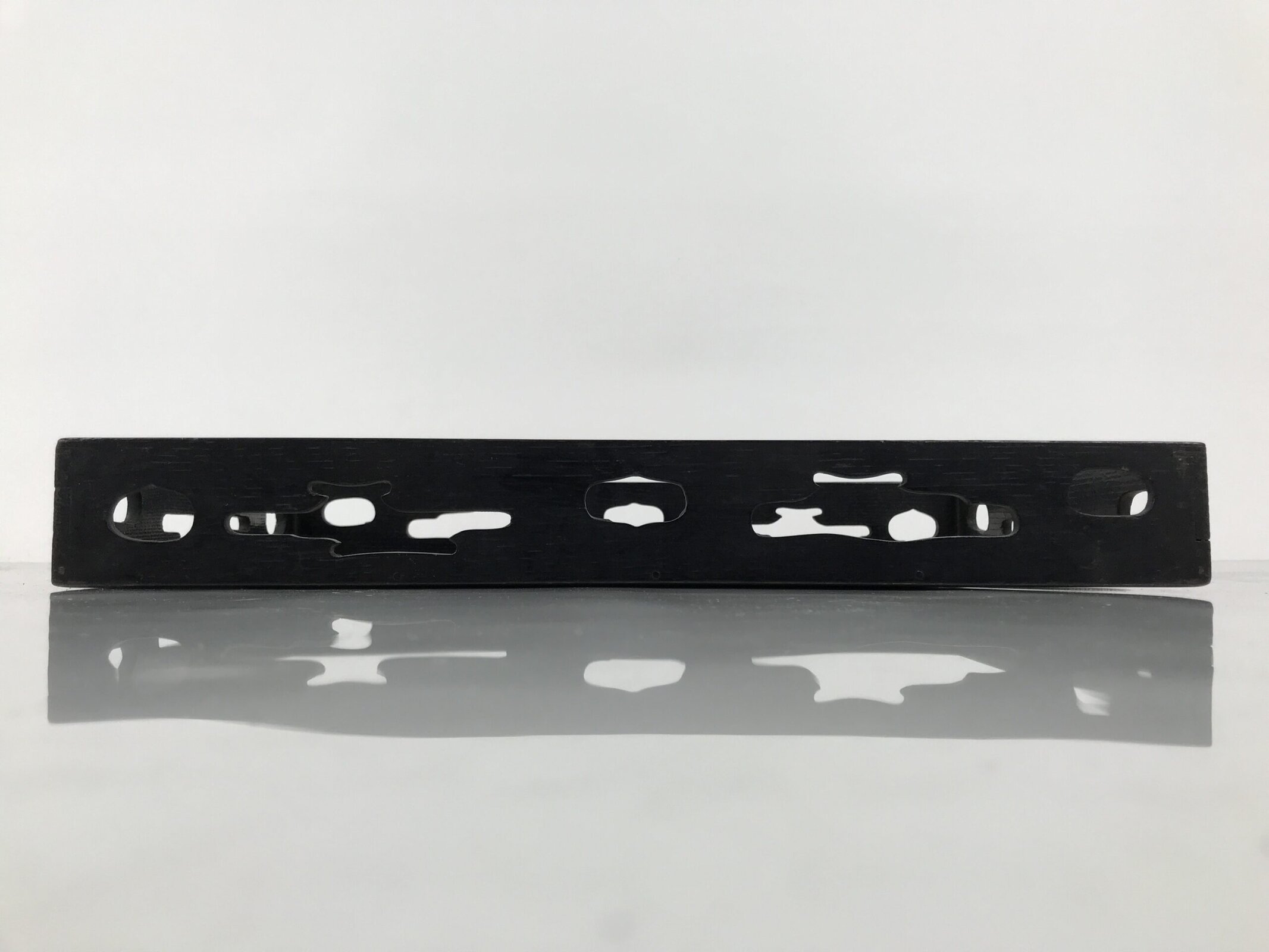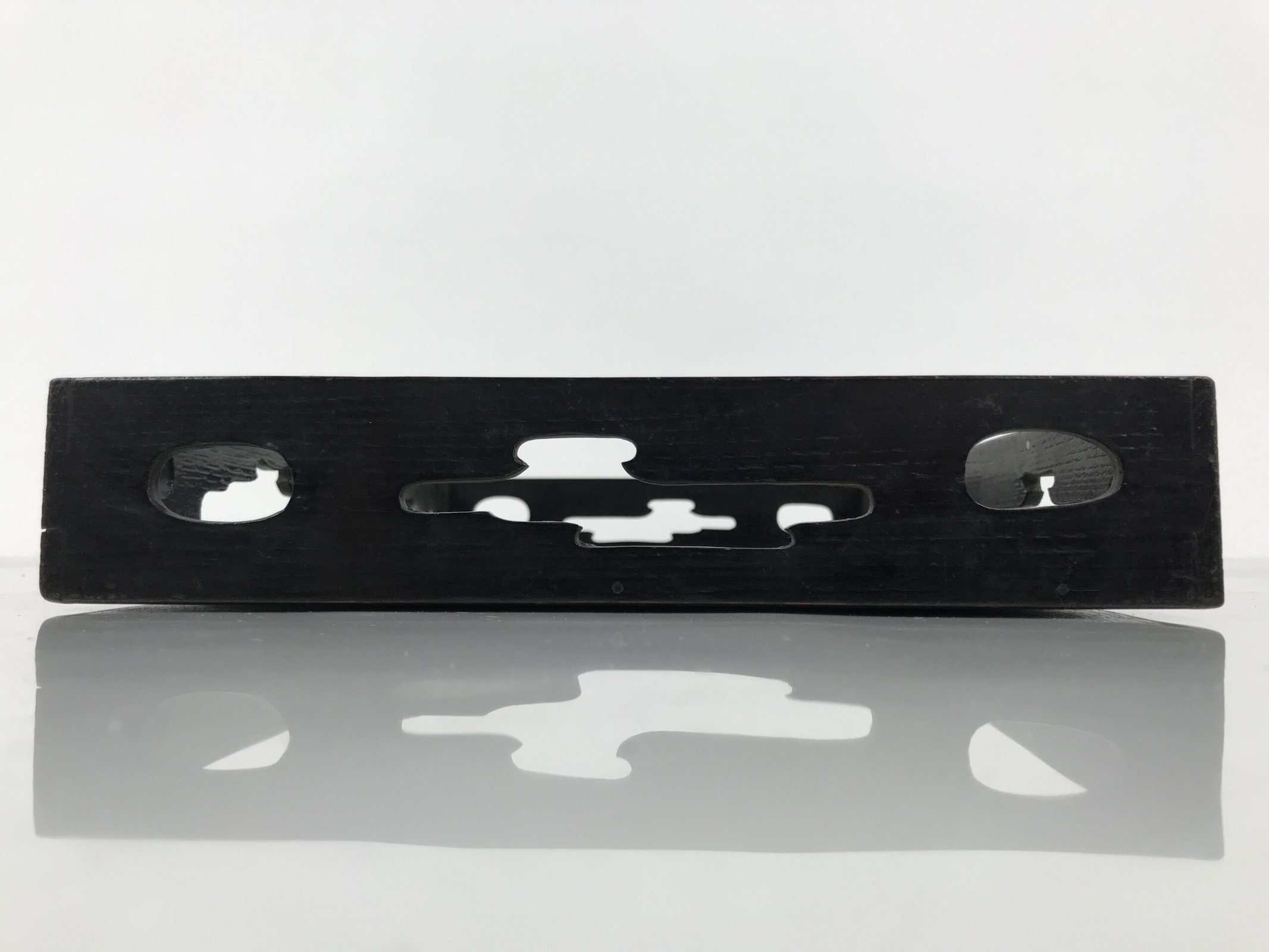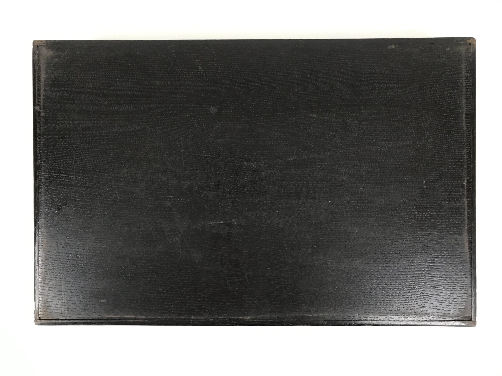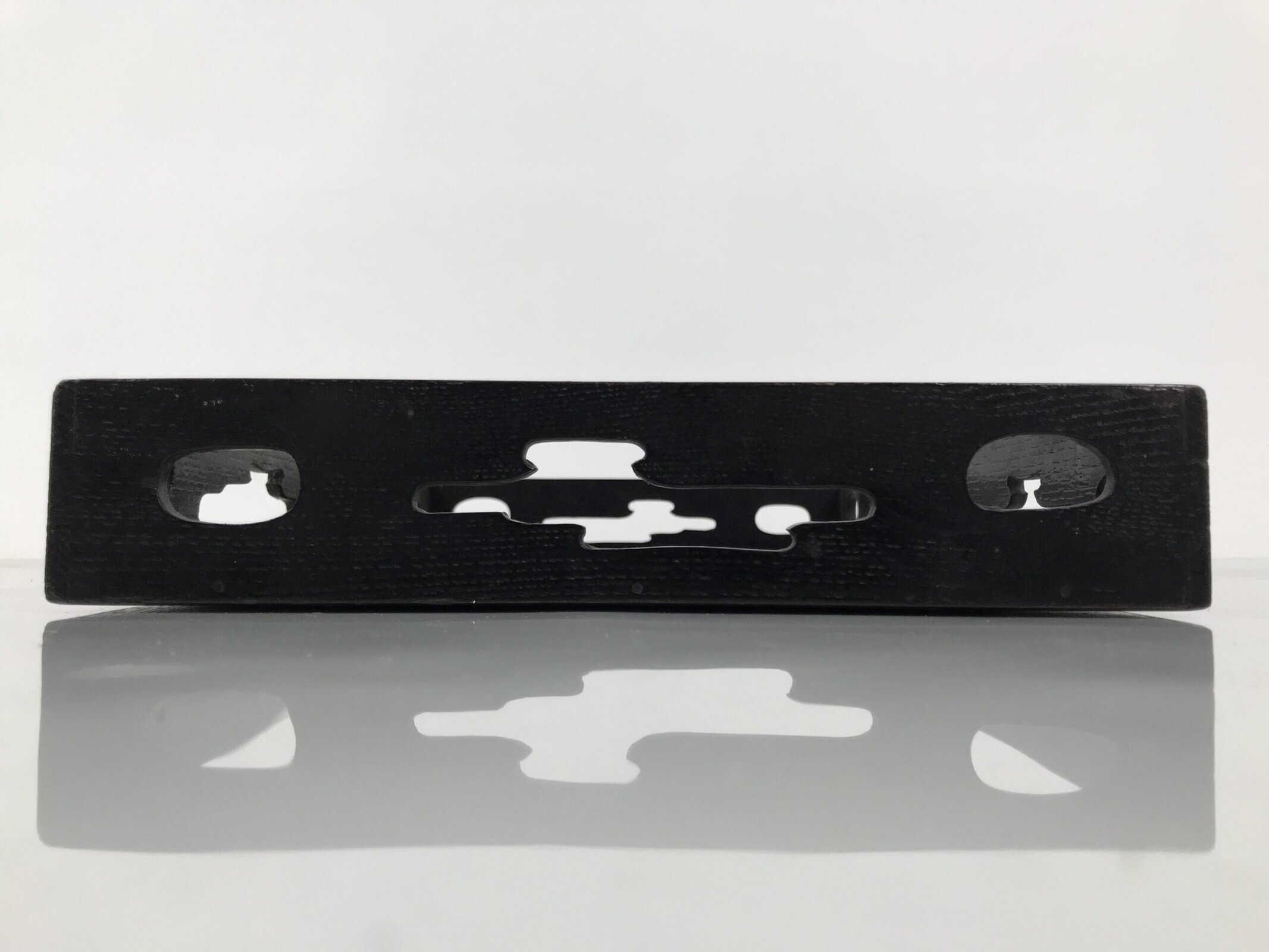 March 20, 2026Japanese Lacquered Wood Serving Tray Obon Vtg Rectangle Black Cutout Design L585