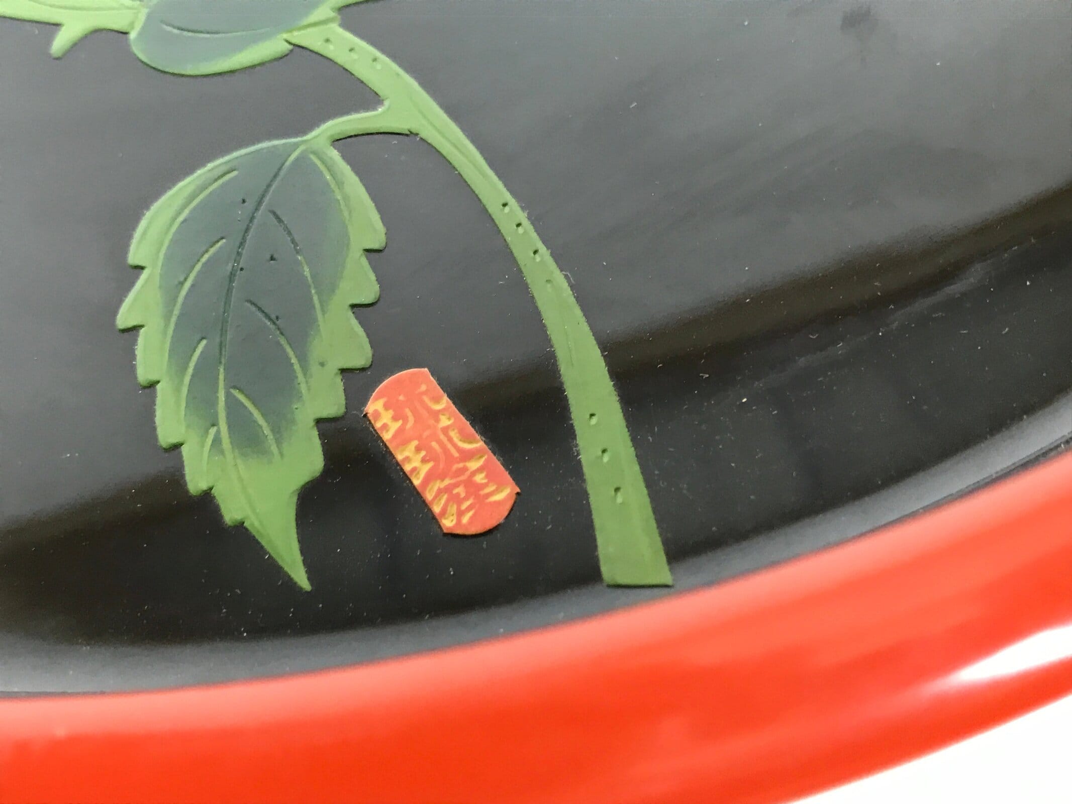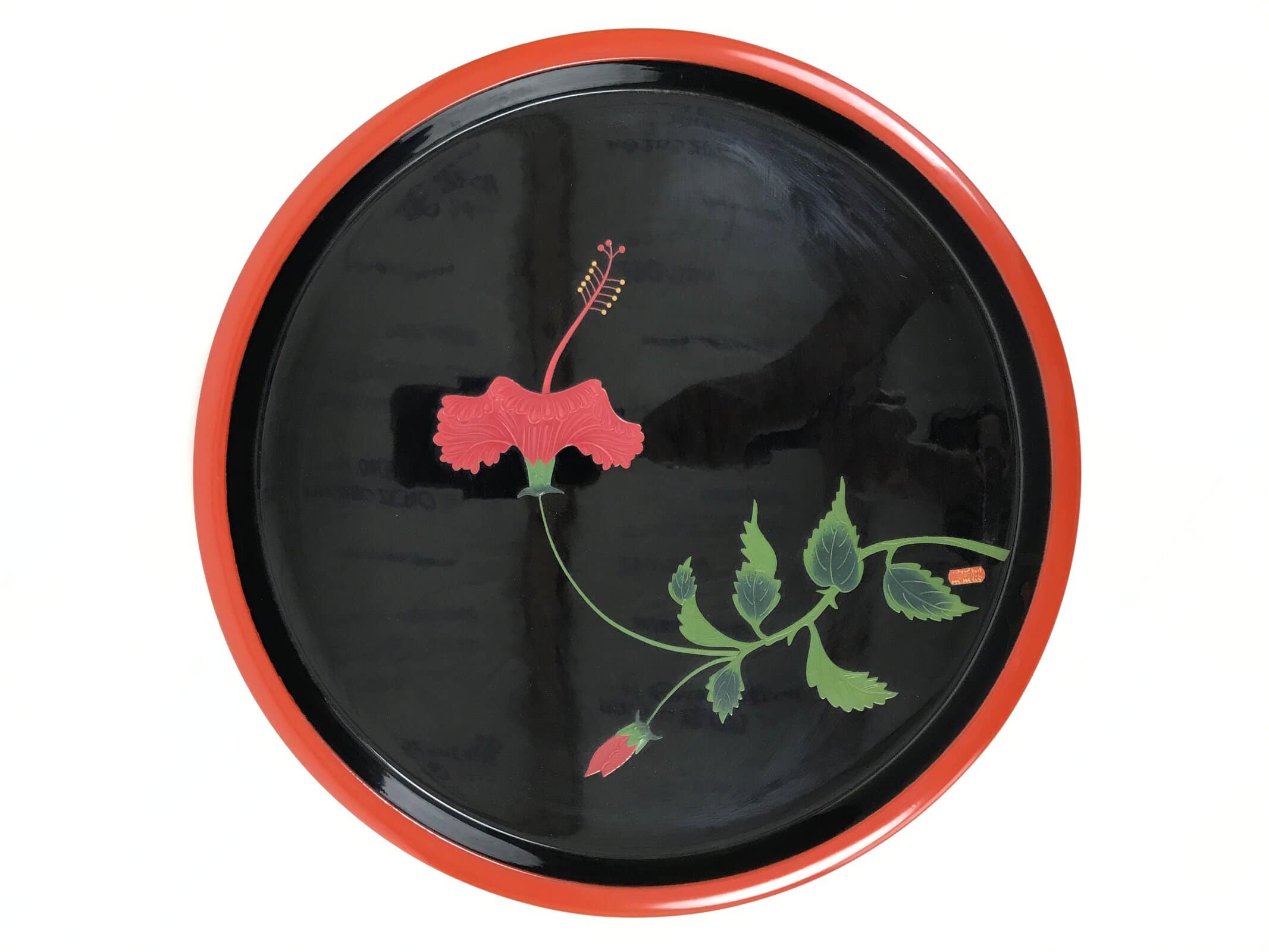 January 24, 2026Japanese Lacquer Wood Serving Tray Vtg Ryukyu Shikki Hibiscus Round Black L549