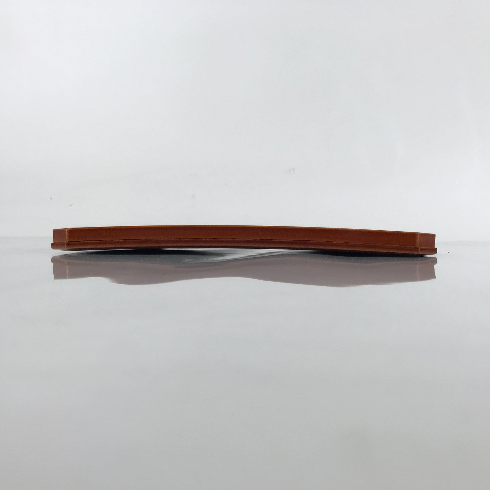 This is a vintage Japanese wooden serving tray, or Obon. This lacquered tray is coated in the classic bright caramel brown color of the Hida Shunkei style. Rectangular in shape, the tray has squared corners and a simple raised line design on the top surface. It can be used for serving a variety of things such as tea, snacks, a meal, etc.