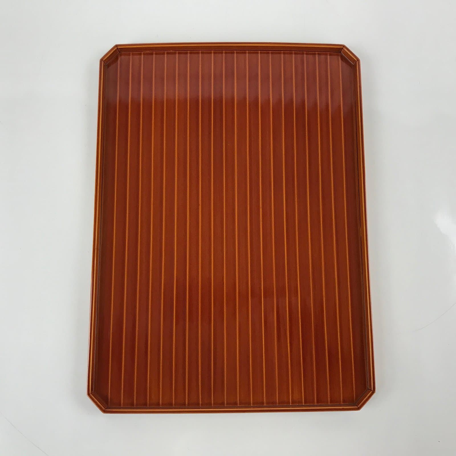 Japanese Lacquered Wood Serving Tray Vtg Hida Shunkei Obon Rectangle Brown L170