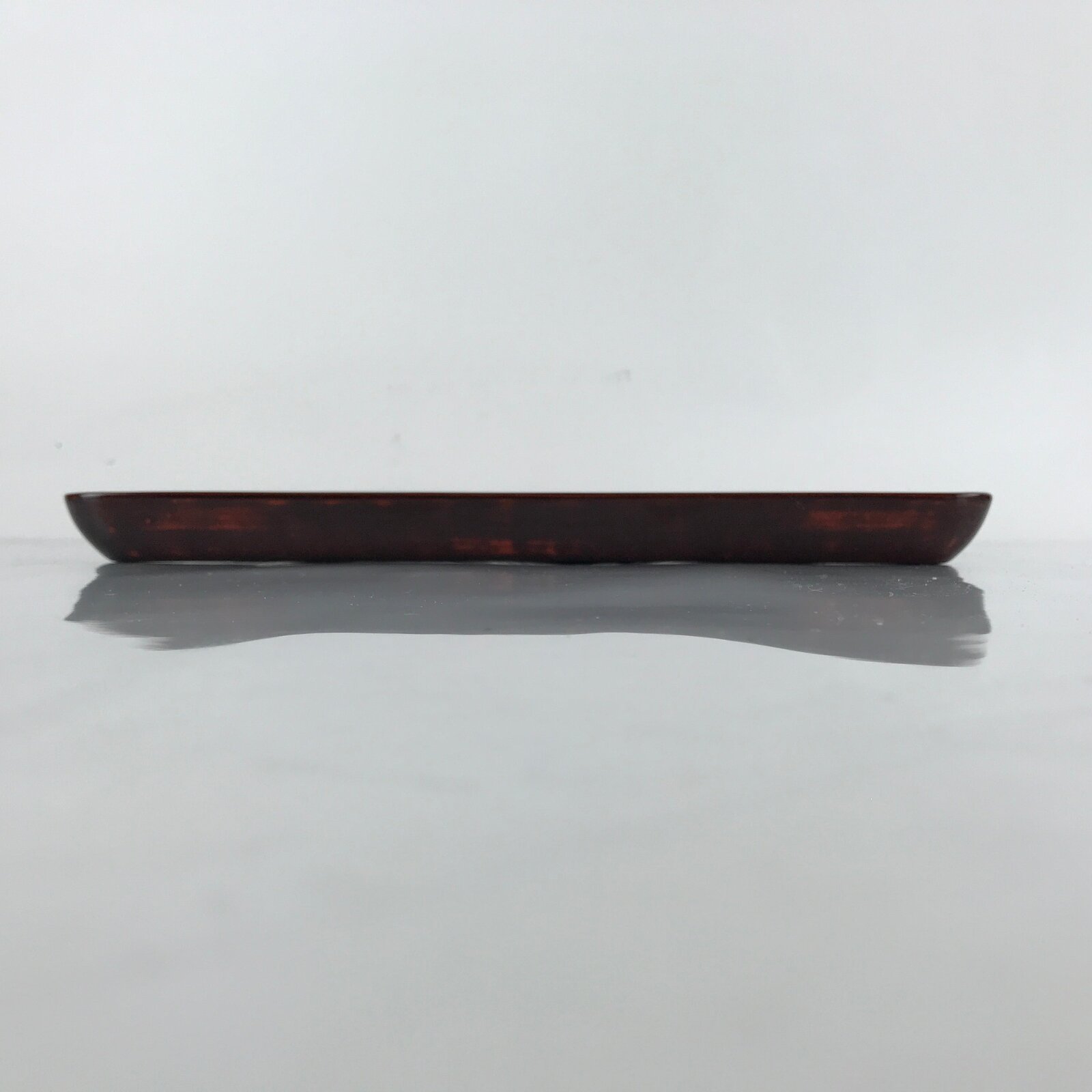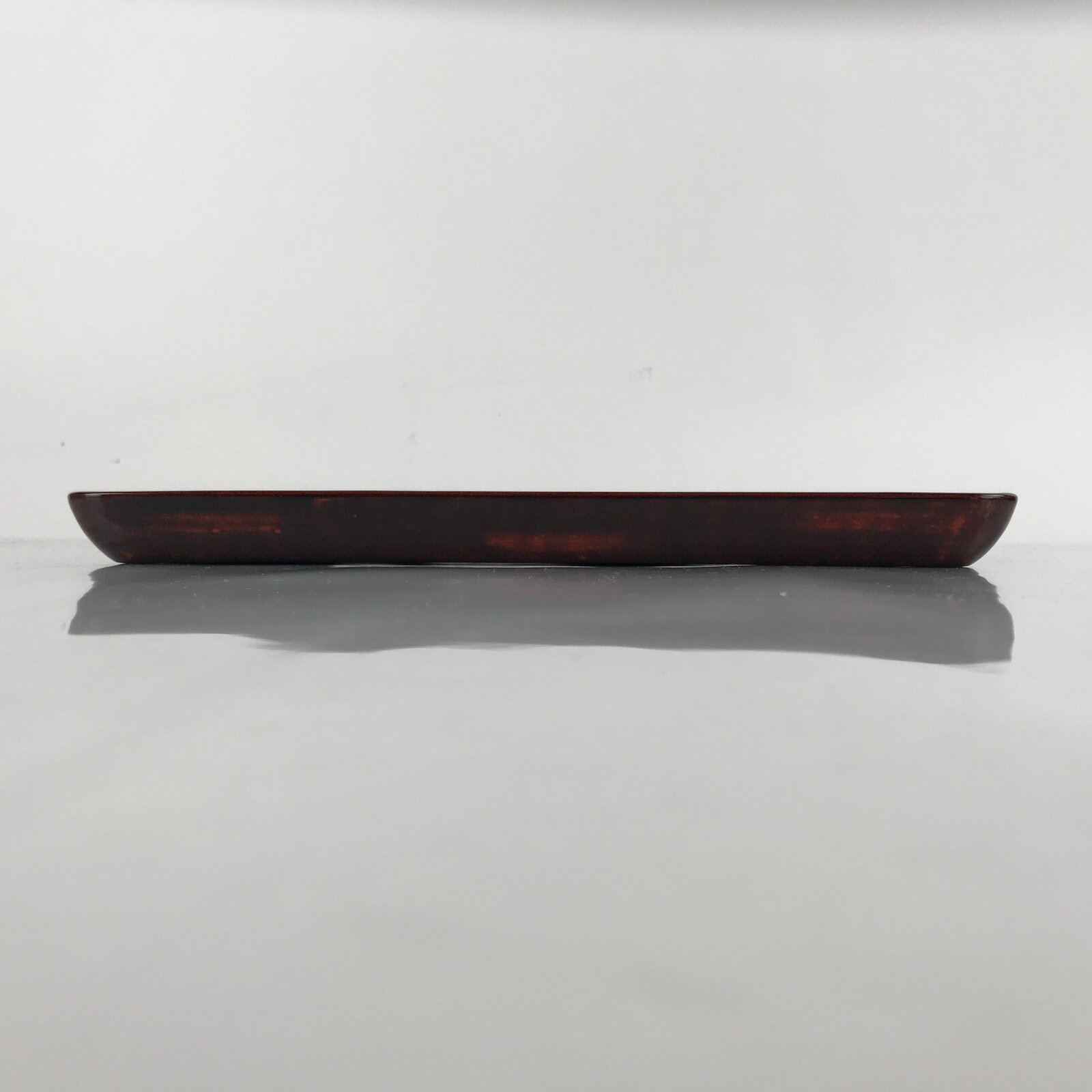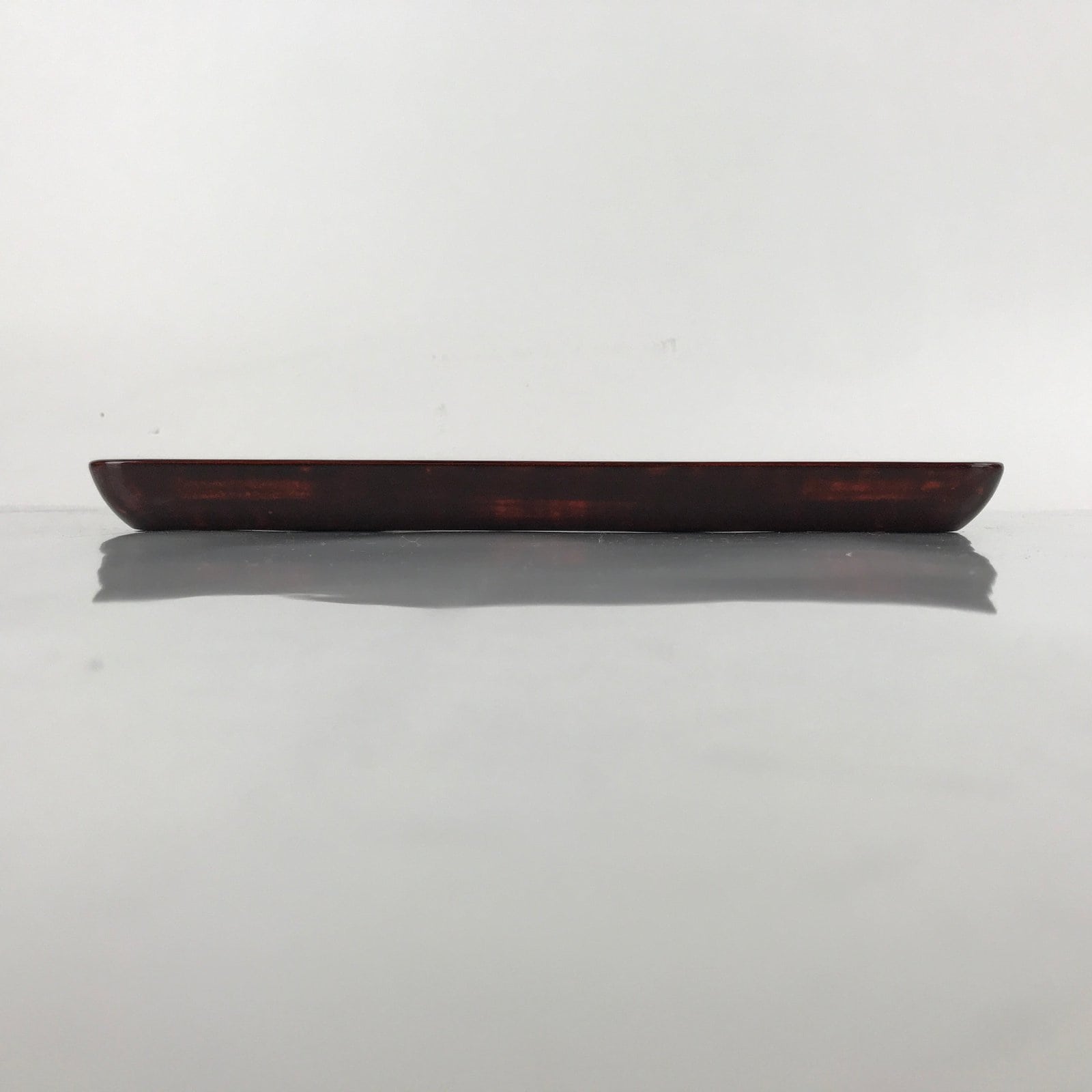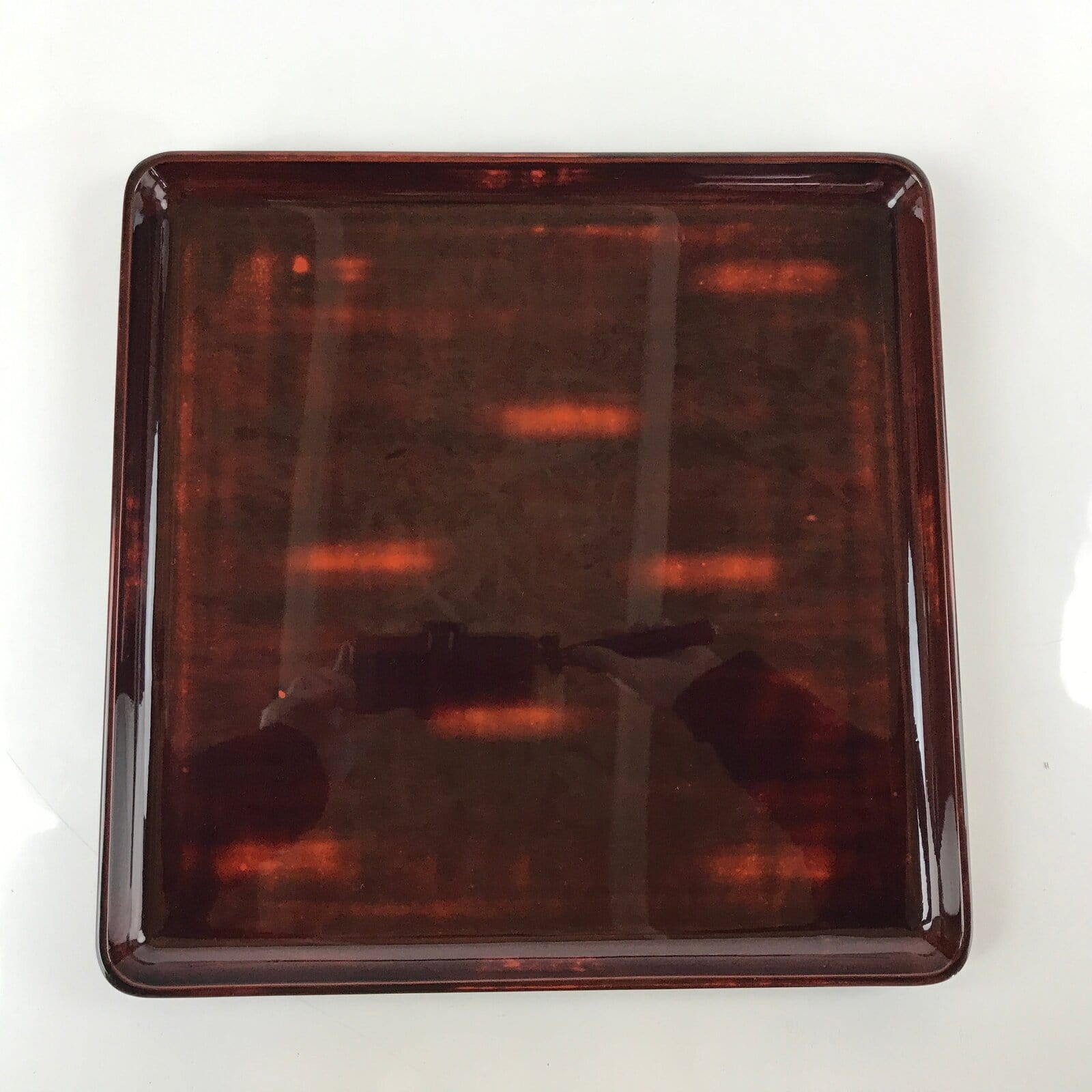This is a Japanese vintage wooden serving tray, or Obon. This square lacquered serving tray Is black on the back side with the top surface being a layered brown lacquer. It can be used for serving a variety of things such as tea, snacks, a meal, etc.