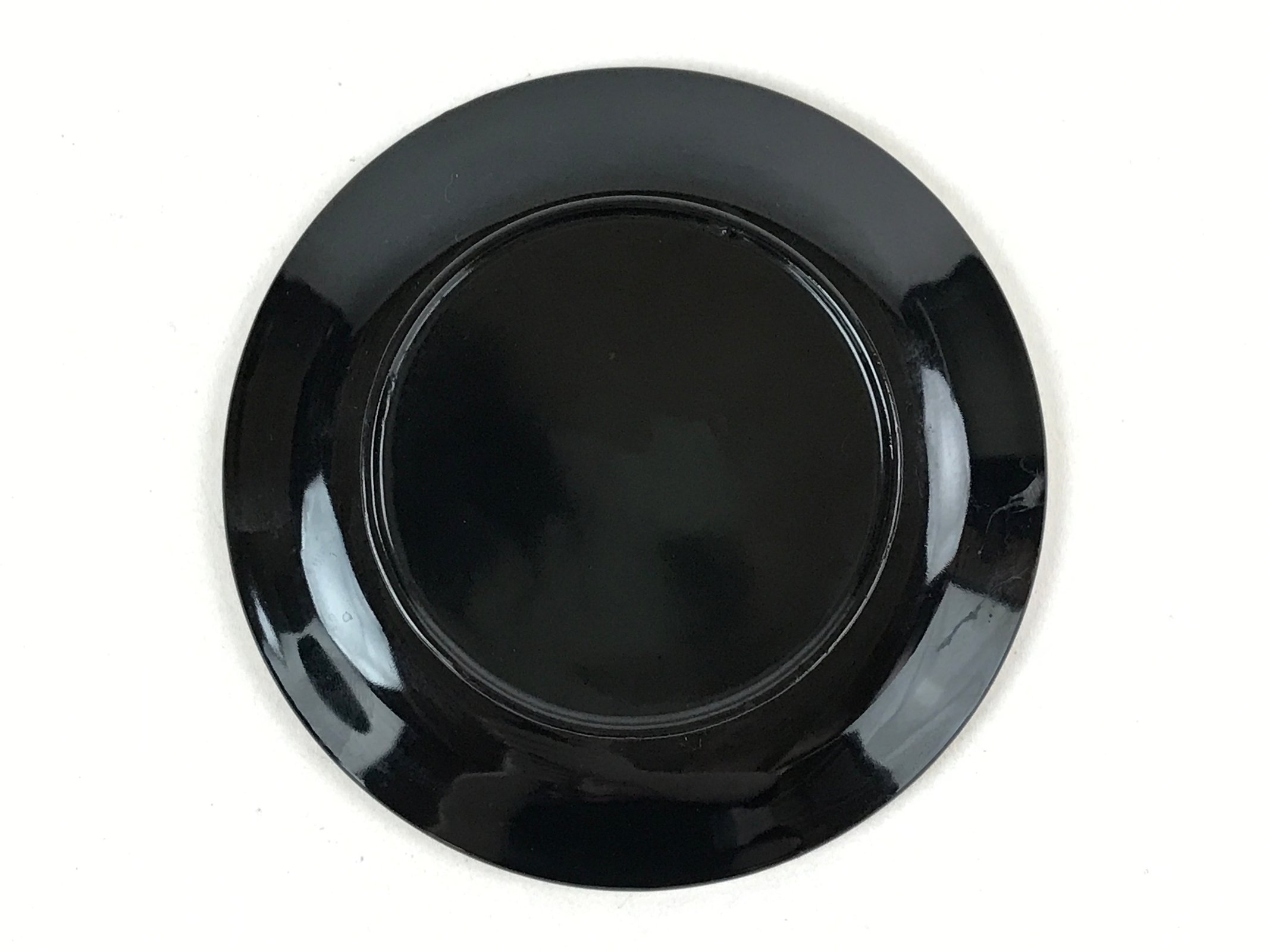 Japanese Lacquered Wooden Small Plate Kozara Vtg Chataku Saucer Round Black L55