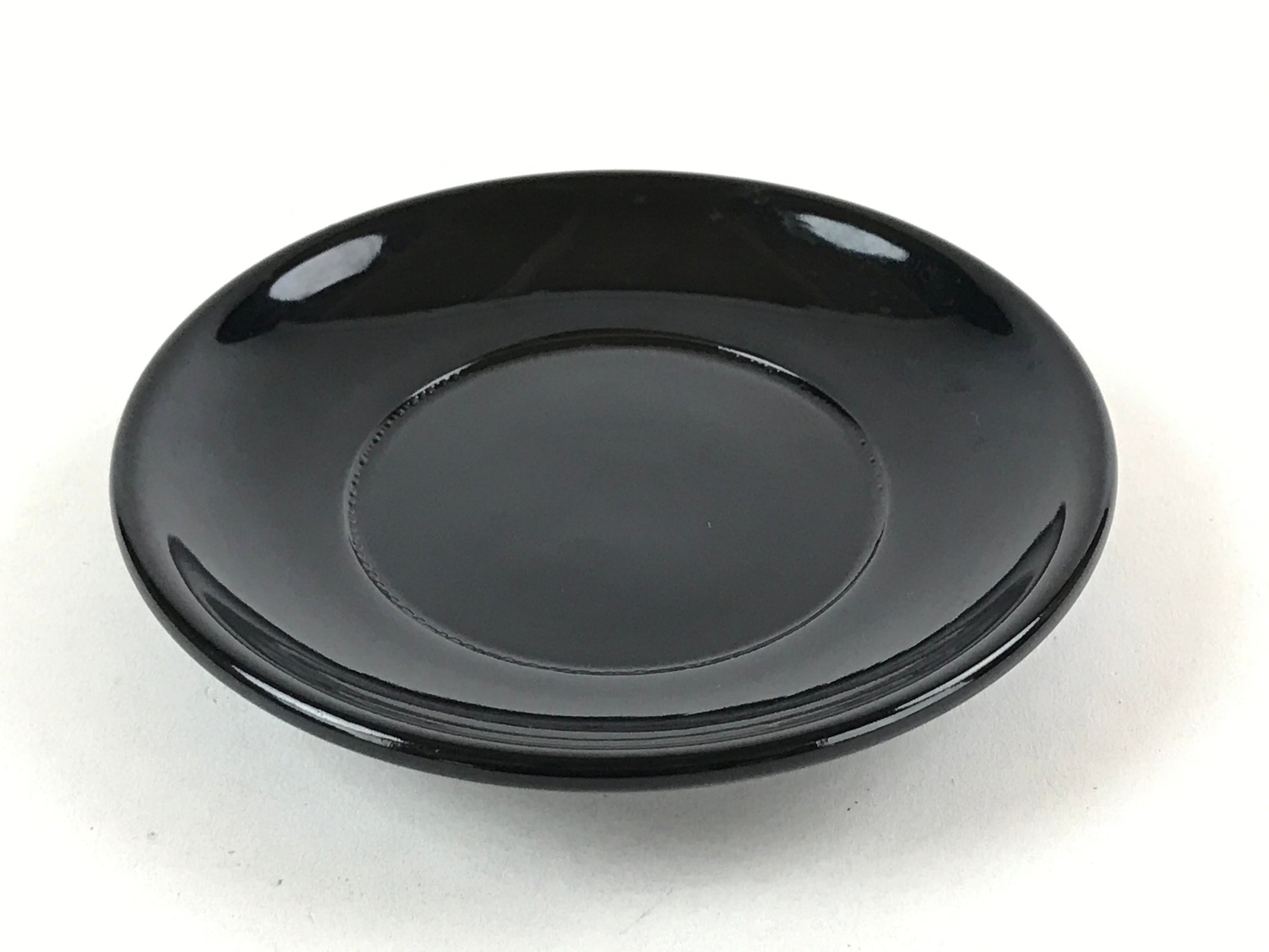 Japanese Lacquered Wooden Small Plate Kozara Vtg Chataku Saucer Round Black L60
