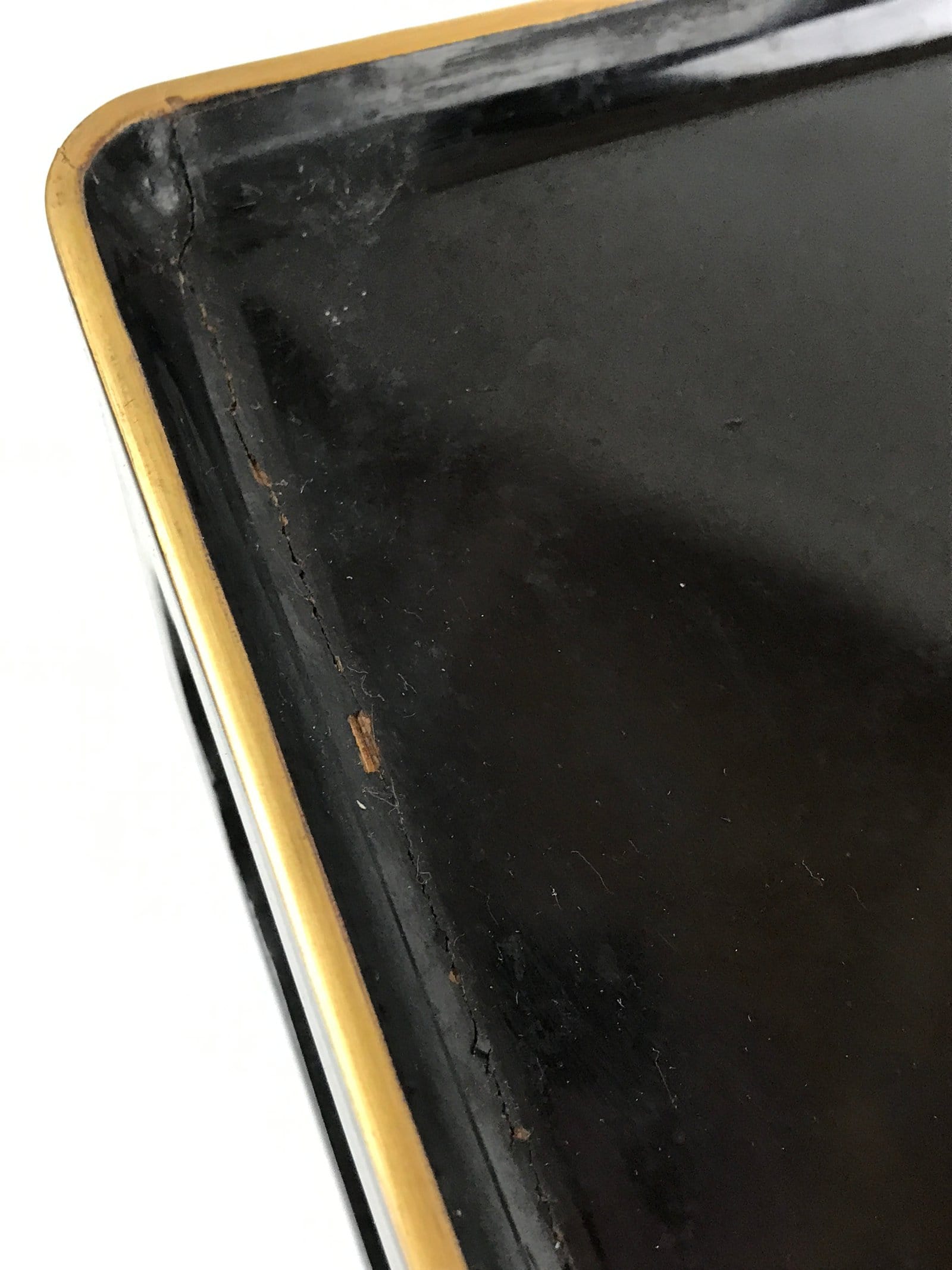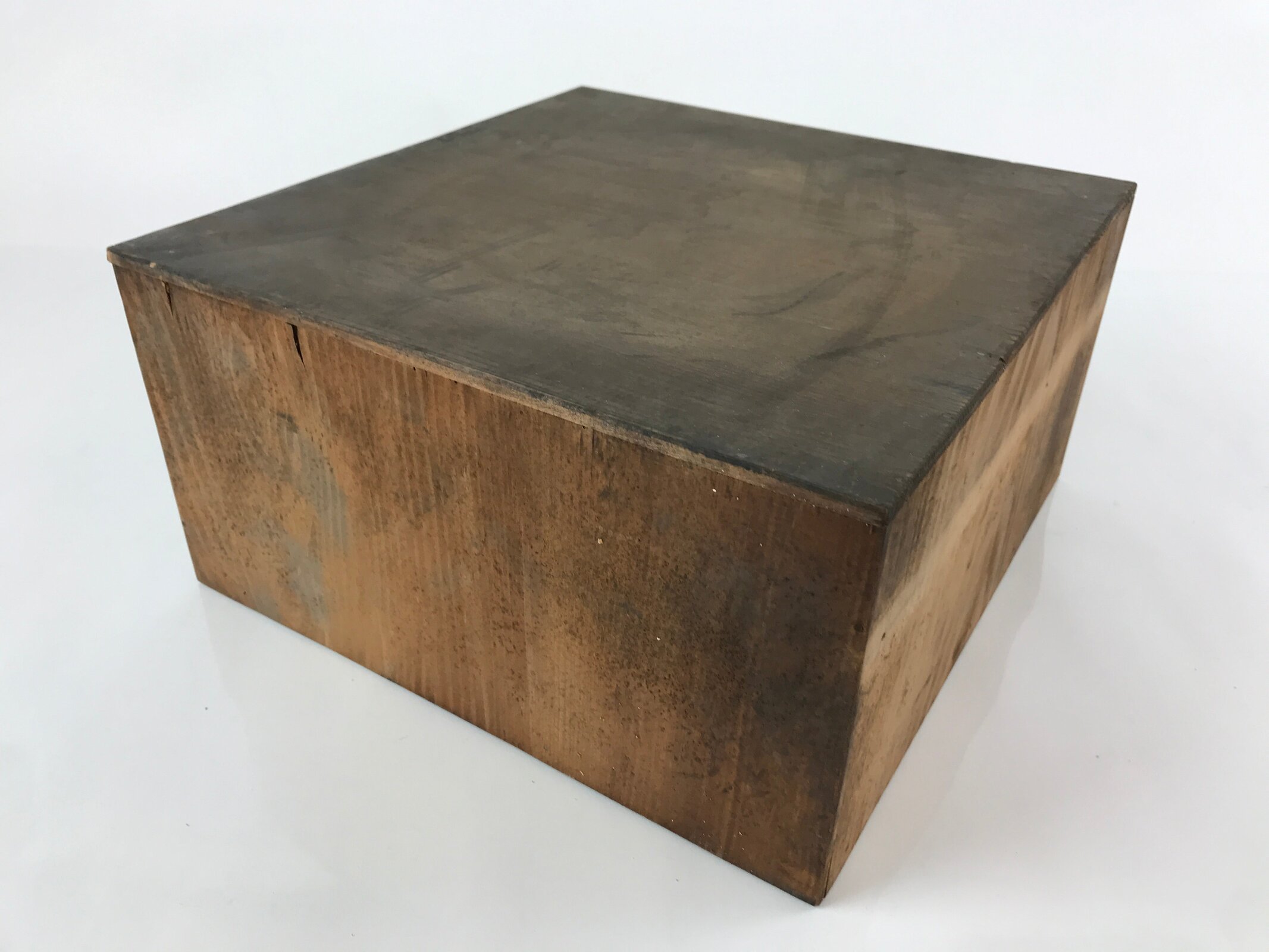 - Good condition considering age. Table: marks, lacquer chips and cracks on top surface. Storage box: marks, scratches, small wood damage on back side. Wear and tear due to age. Please see the photos.