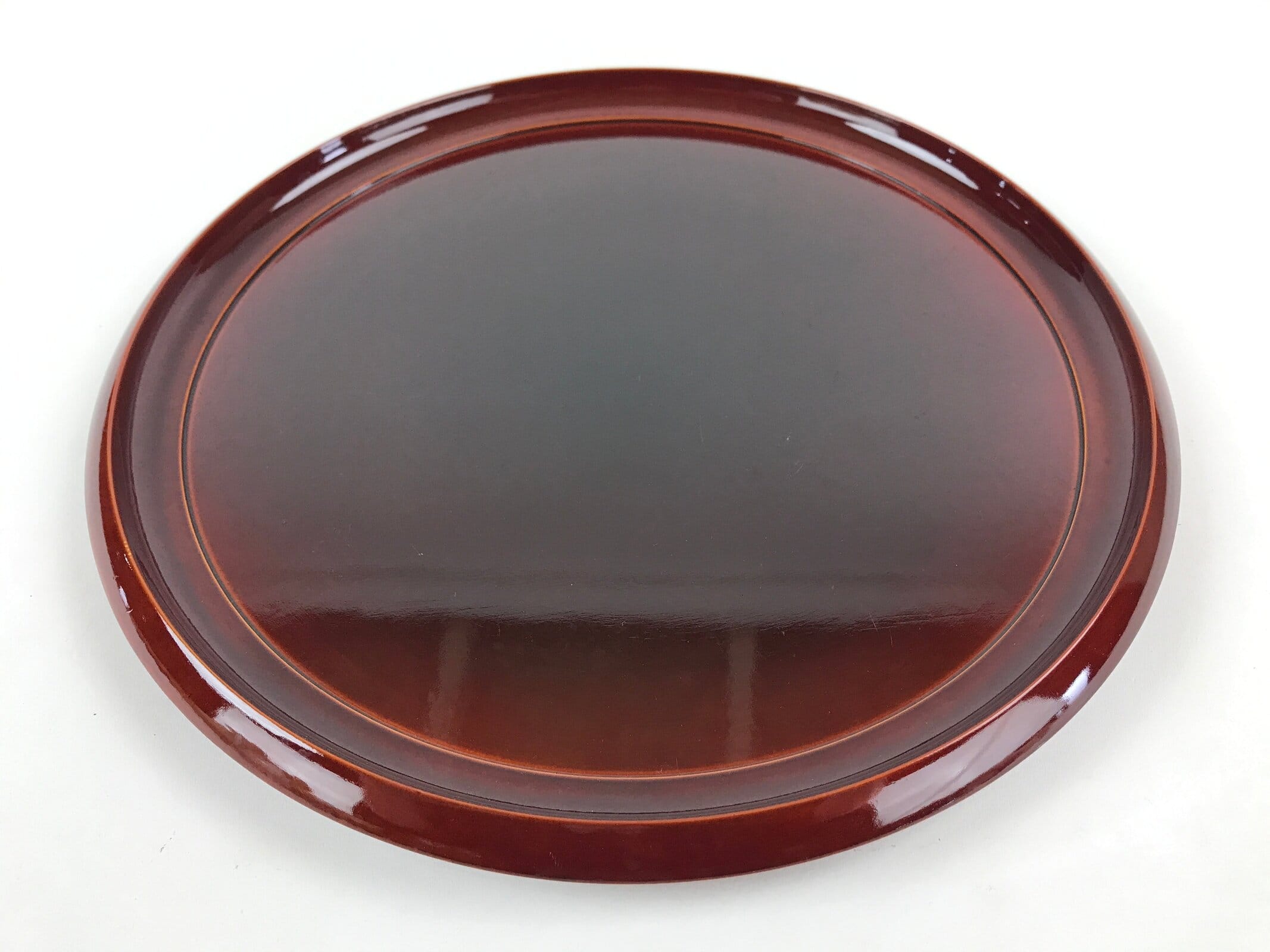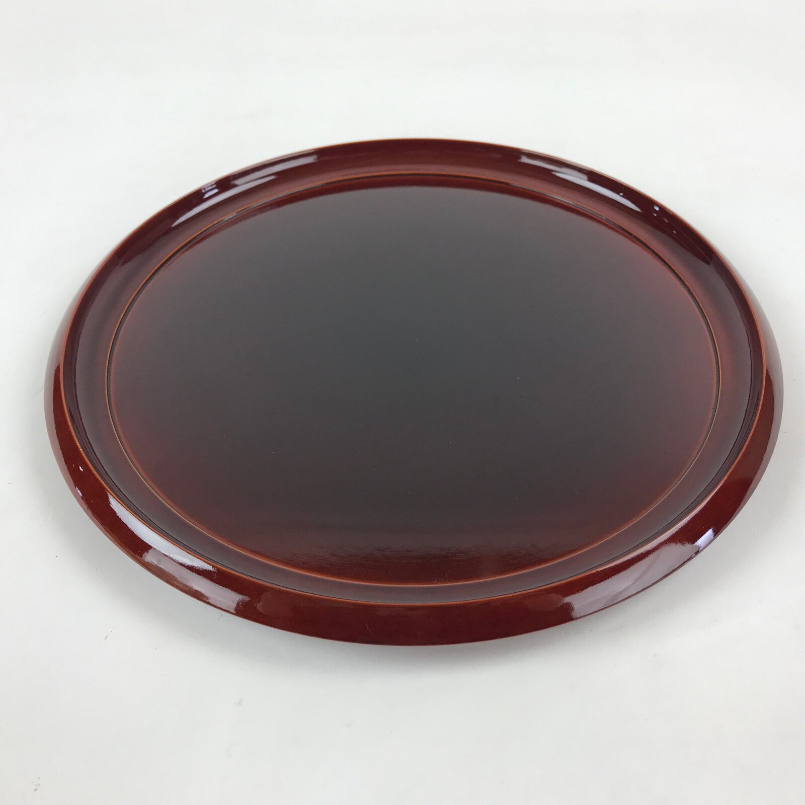 Japanese Lacquered Wooden Serving Tray Vtg Obon Hida Shunkei Brown Round UR900