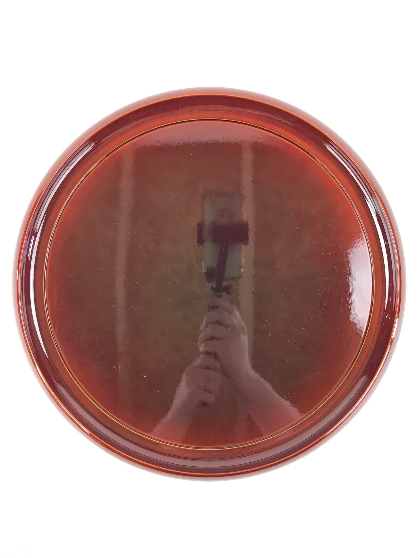 January 20, 2026Japanese Lacquered Wooden Serving Tray Vtg Obon Hida Shunkei Brown Round UR899