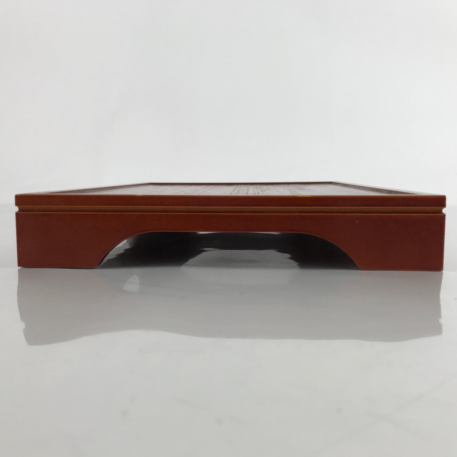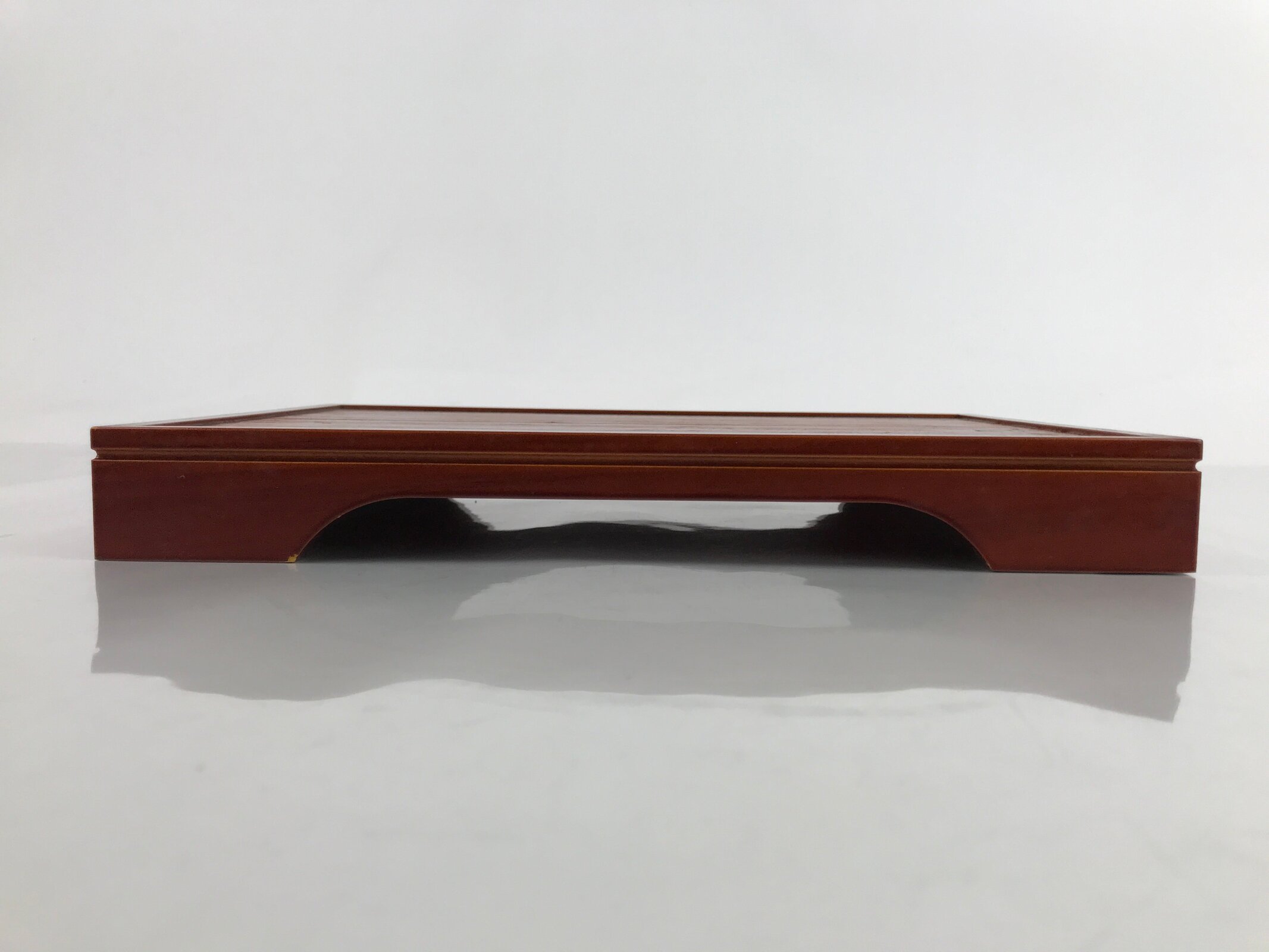This rectangular-shaped kadai is lacquered reddish-brown in the Hida Shunkei style and is used for displaying flower vases, ikebana arrangements, bonsai, and more. It stands on a simple platform with cutout curves between the legs and has a simple texture line pattern on the top surface. This stand type is also ideal for small statues, dolls, or figurines.