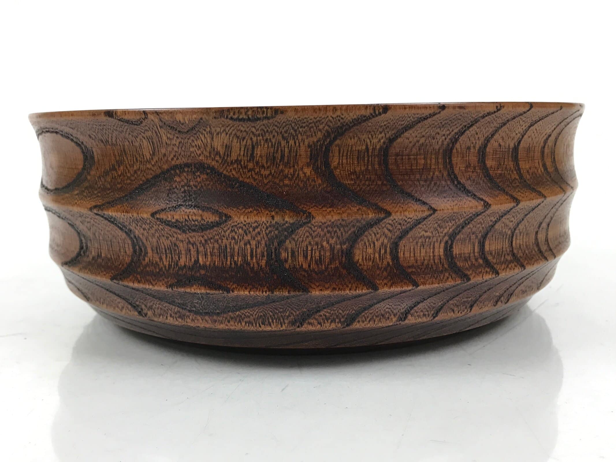 January 24, 2026Japanese Lacquer Wooden Kashiki Snack Bowl Vtg Kashibachi Brown Ring Grain L529