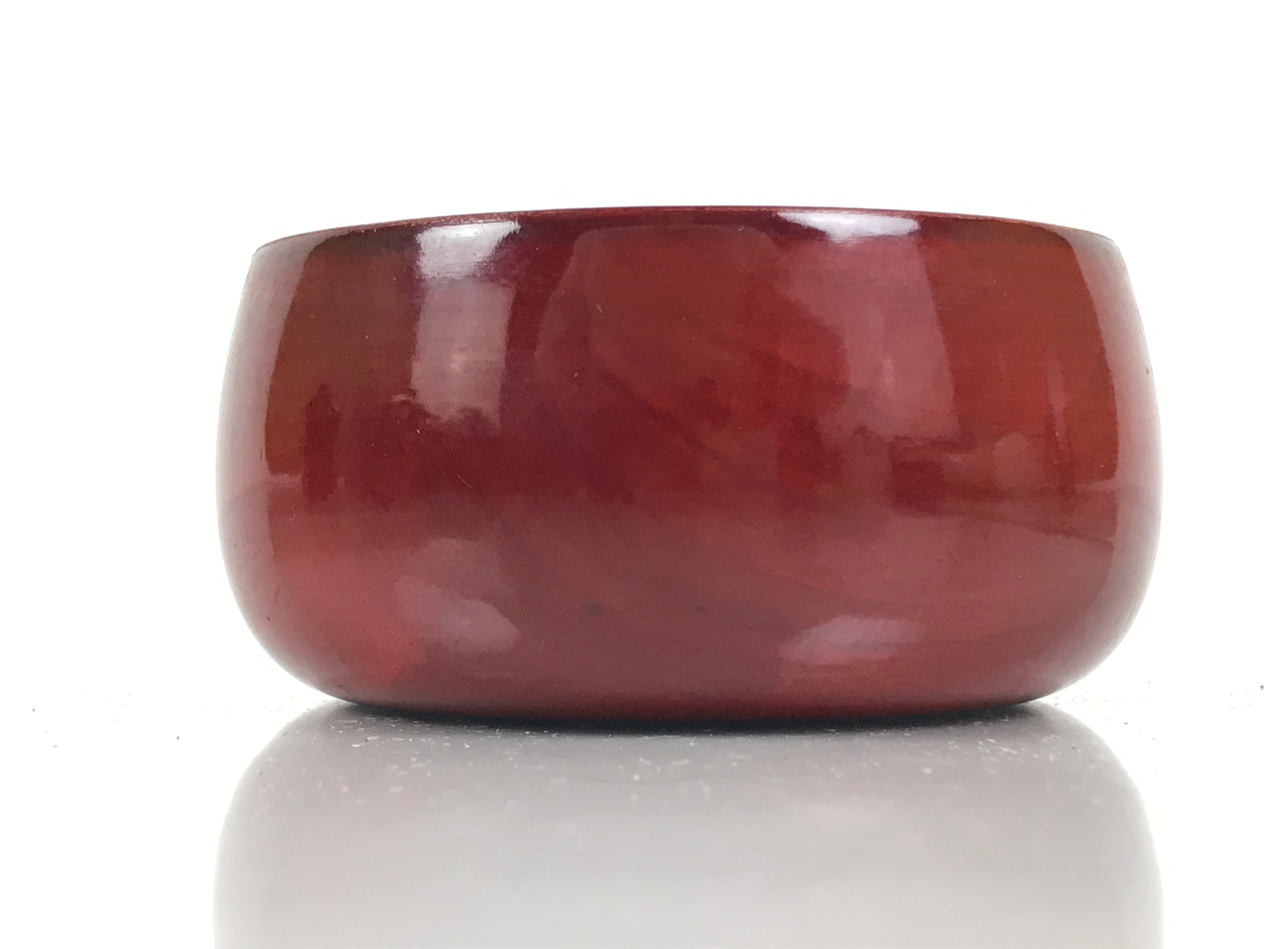 This is a Japanese vintage lacquer cup or small bowl used to serve small snacks, such as nuts and small senbei, while serving and drinking sake. It is a beautiful reddish brown in true Hida Shunkei nuri style. It can also be used for storing jewelry and other small trinkets.