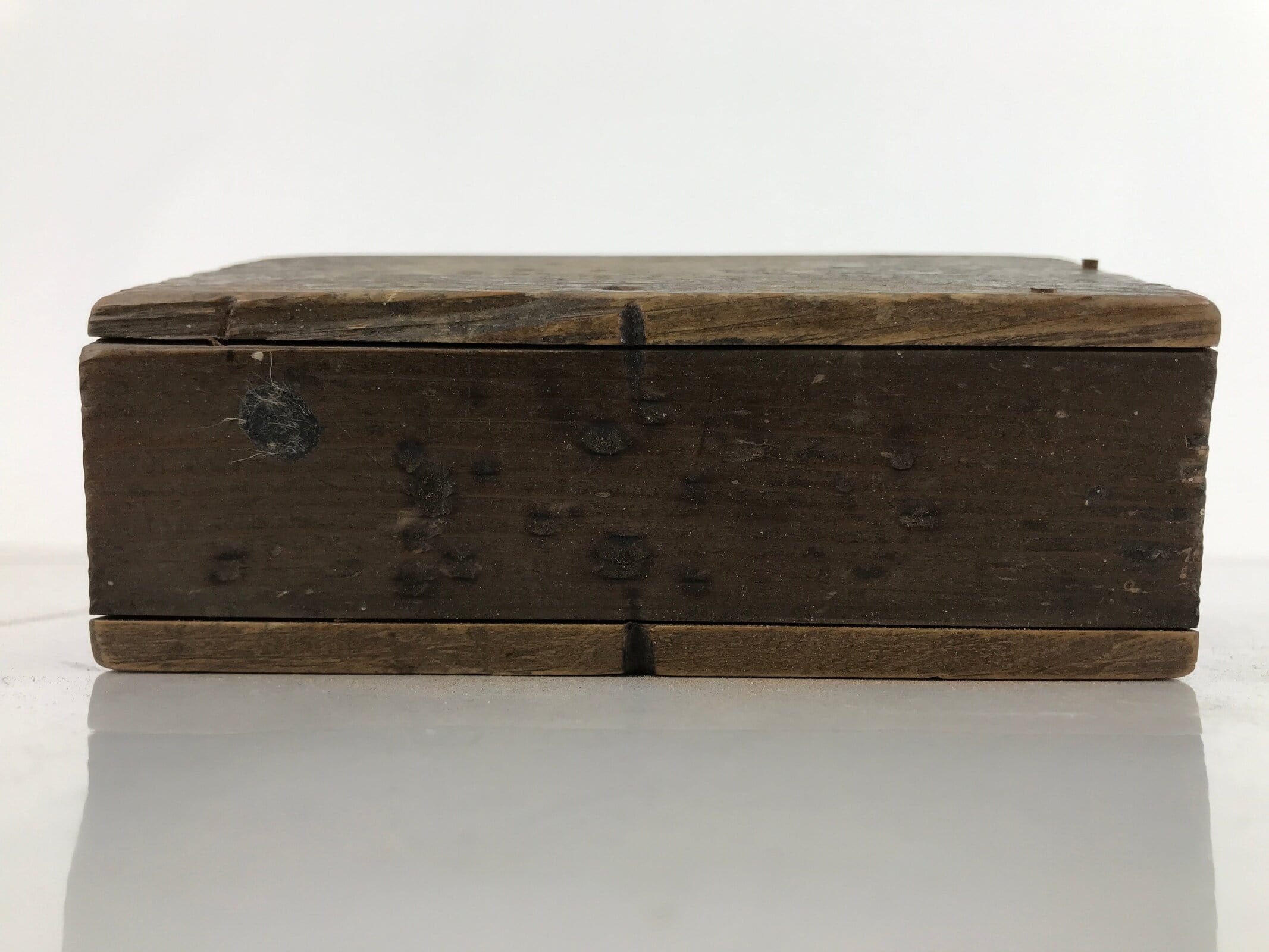 Antique Taisho Japanese Paper Mache Storage Box Hariko Craft Kanji Brown JK709