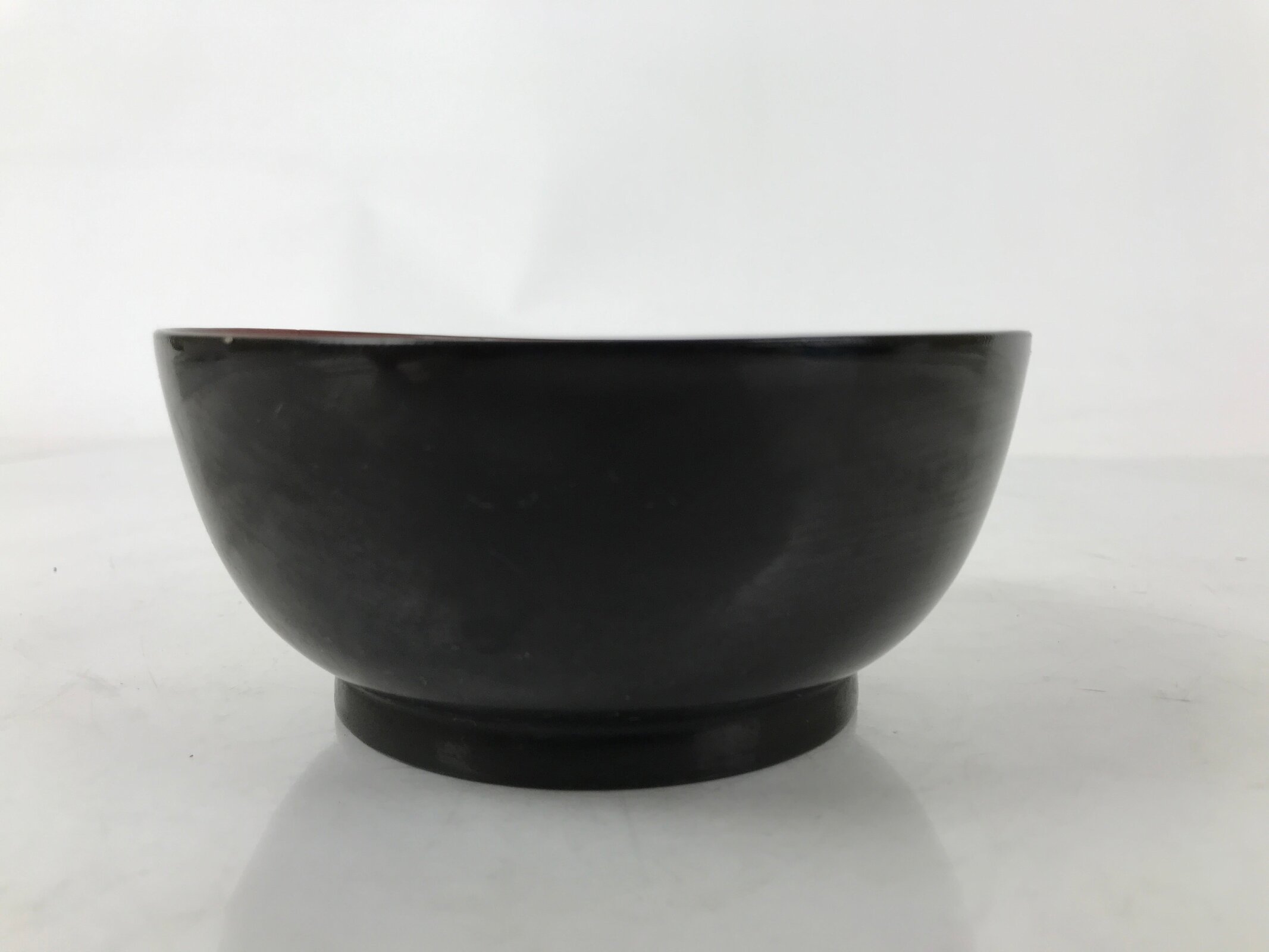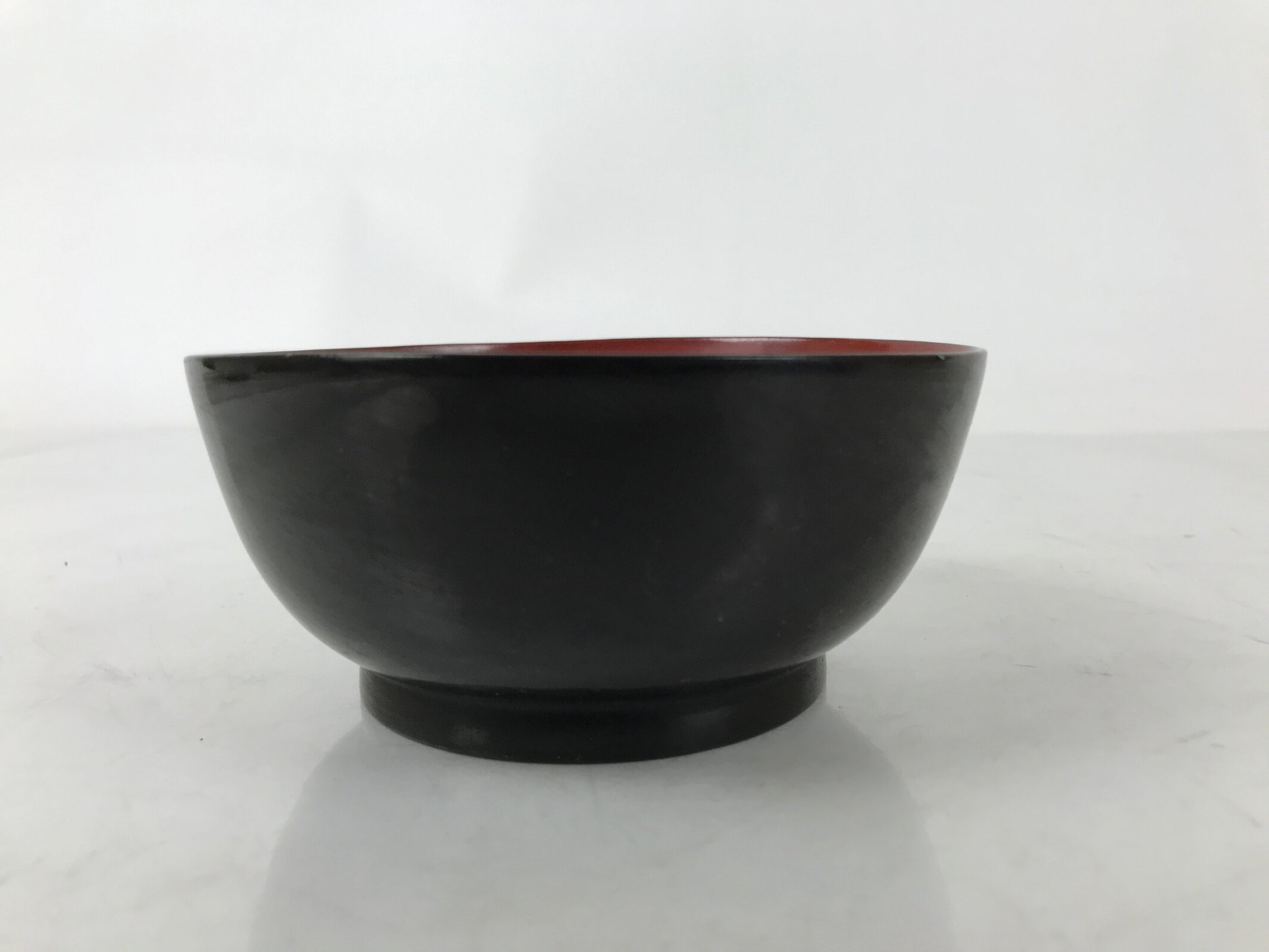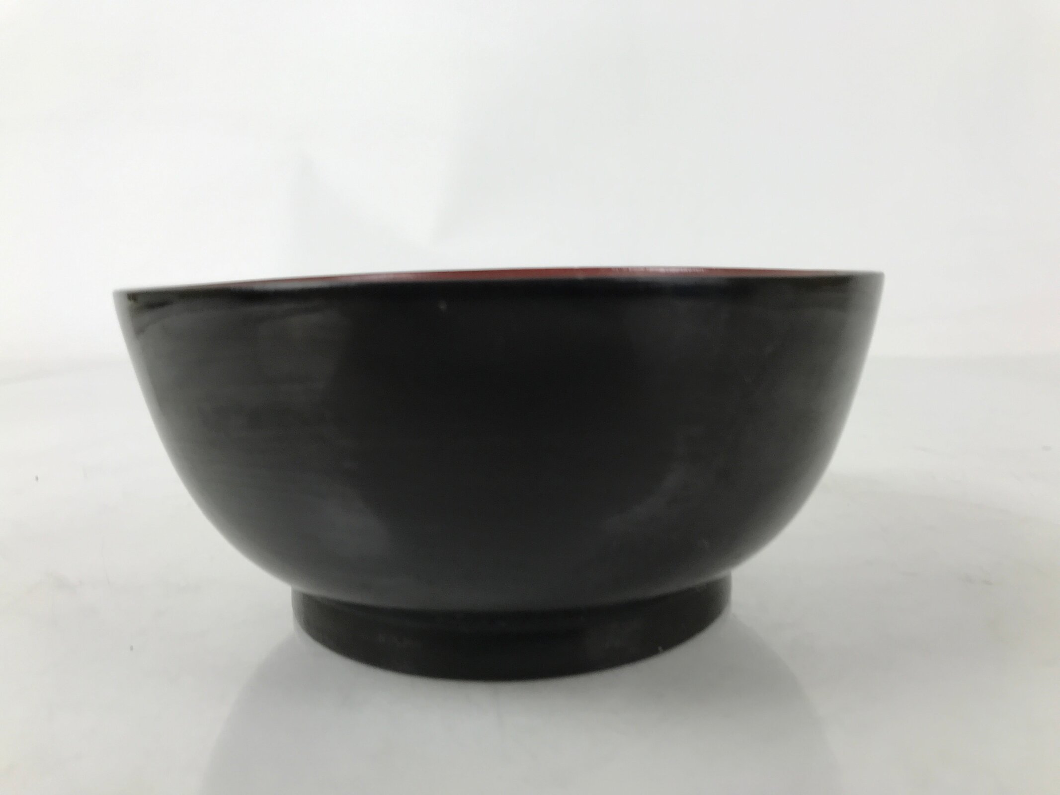 This is a vintage Japanese wooden lacquered bowl. It is black outside and bright red inside. It is a beautifully decorative addition to any traditional Japanese dinnerware set. This bowl is considered a nimonowan, made for boiled main dishes such as vegetables, fish, and sometimes tofu. It can also be used for soups and rice.