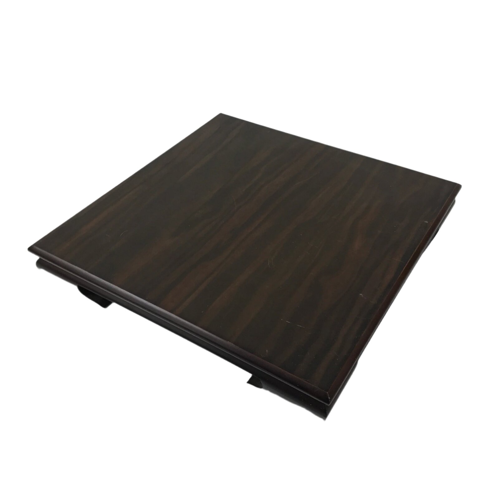 Used for the display of flower vases, ikebana arrangements, bonsai, and more, this large, square-shaped kadai stands on four sturdy and curvy legs. The color is a dark brown that showcases the stand’s natural wood grain.
