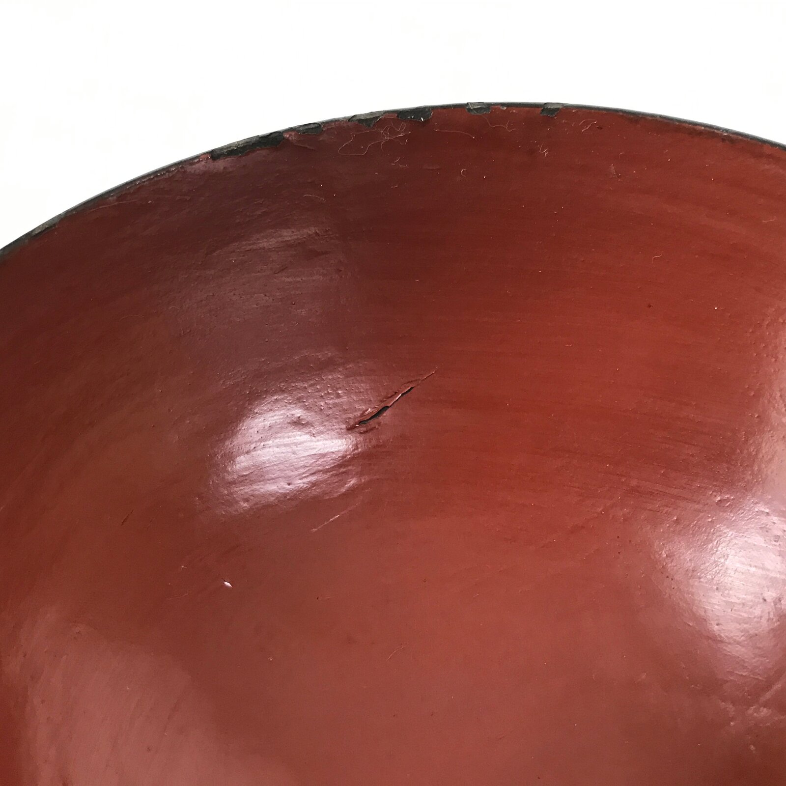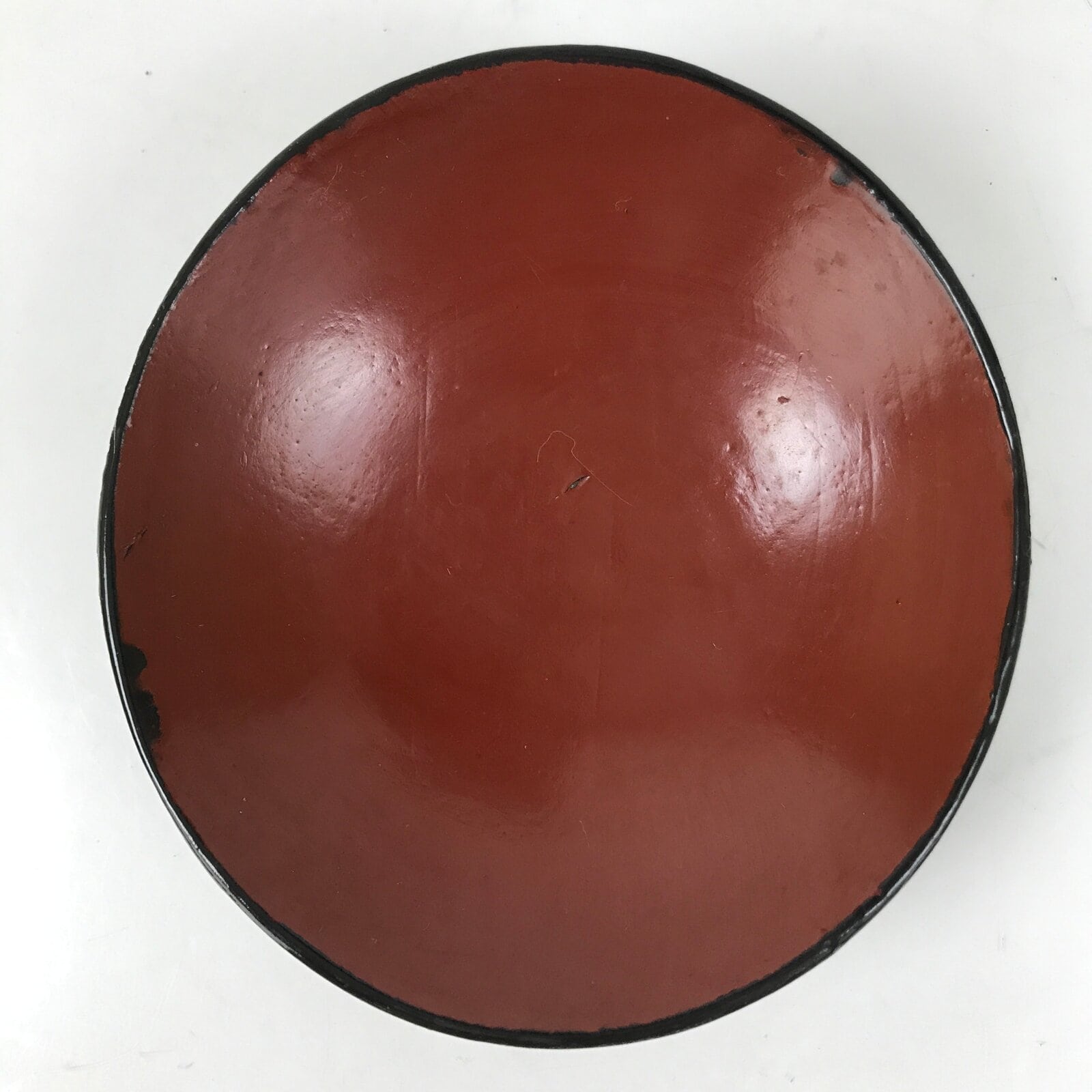- Good condition considering age. Slightly wobbly. Some red lacquer has chipped on the rim. Surface crack on the red lacquer. Wear and tear due to age. Please see the photos.