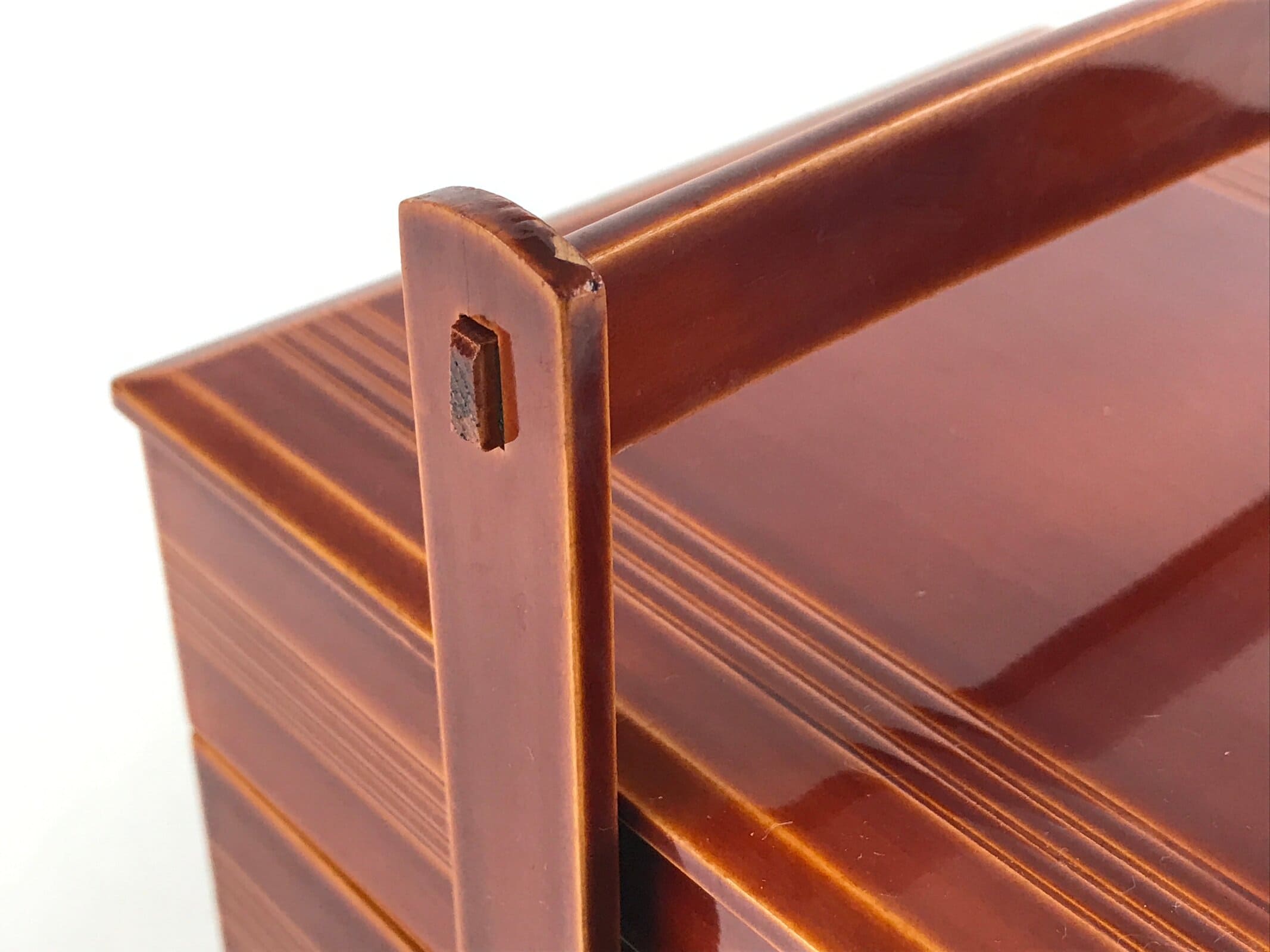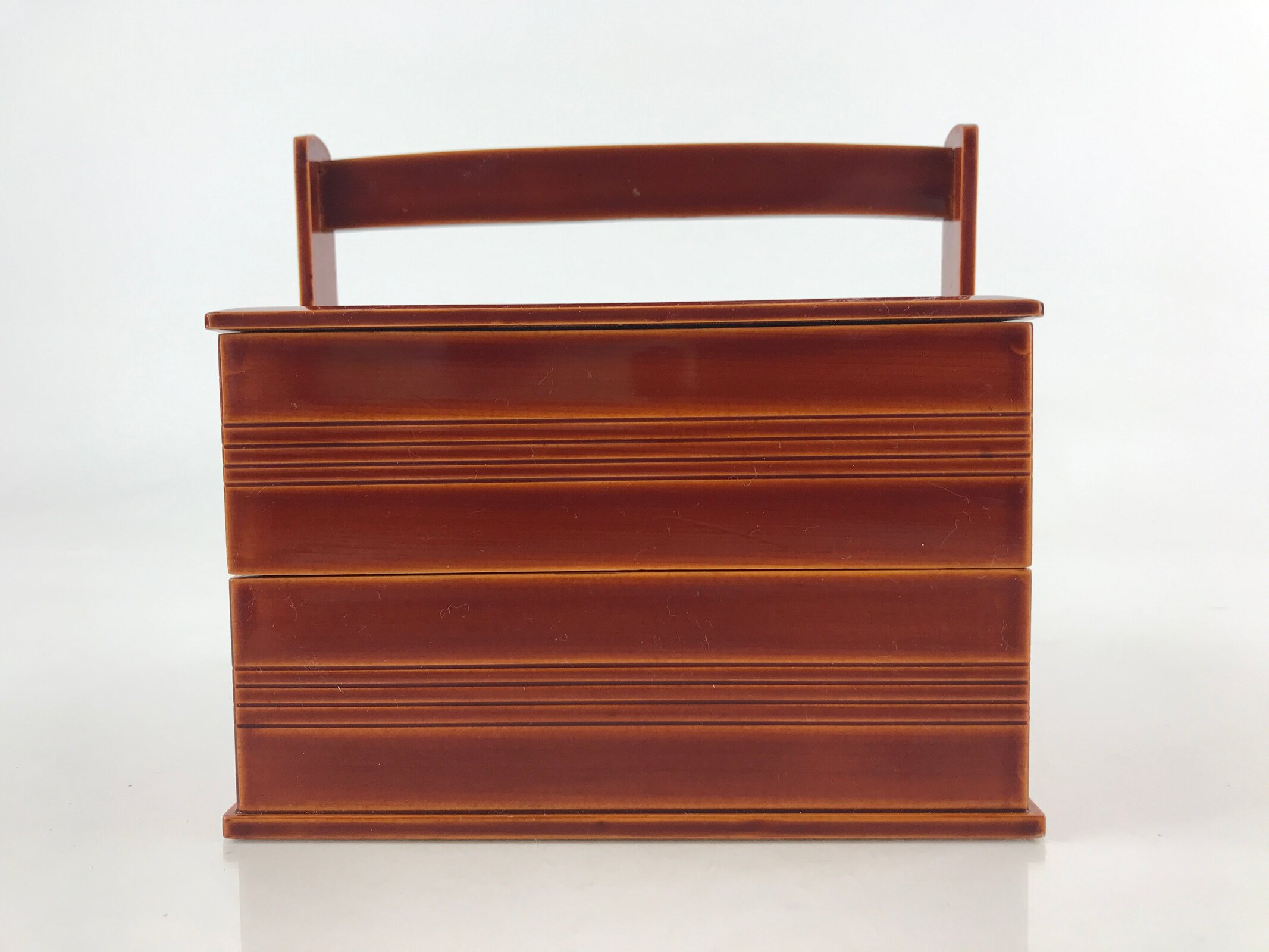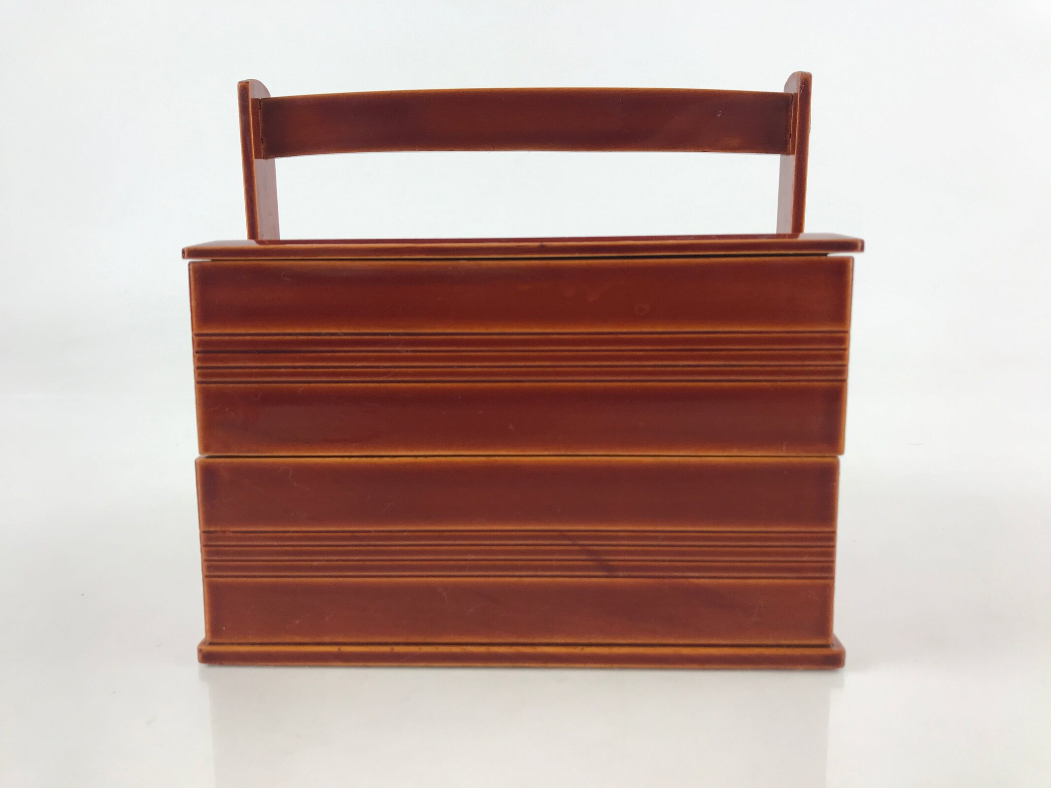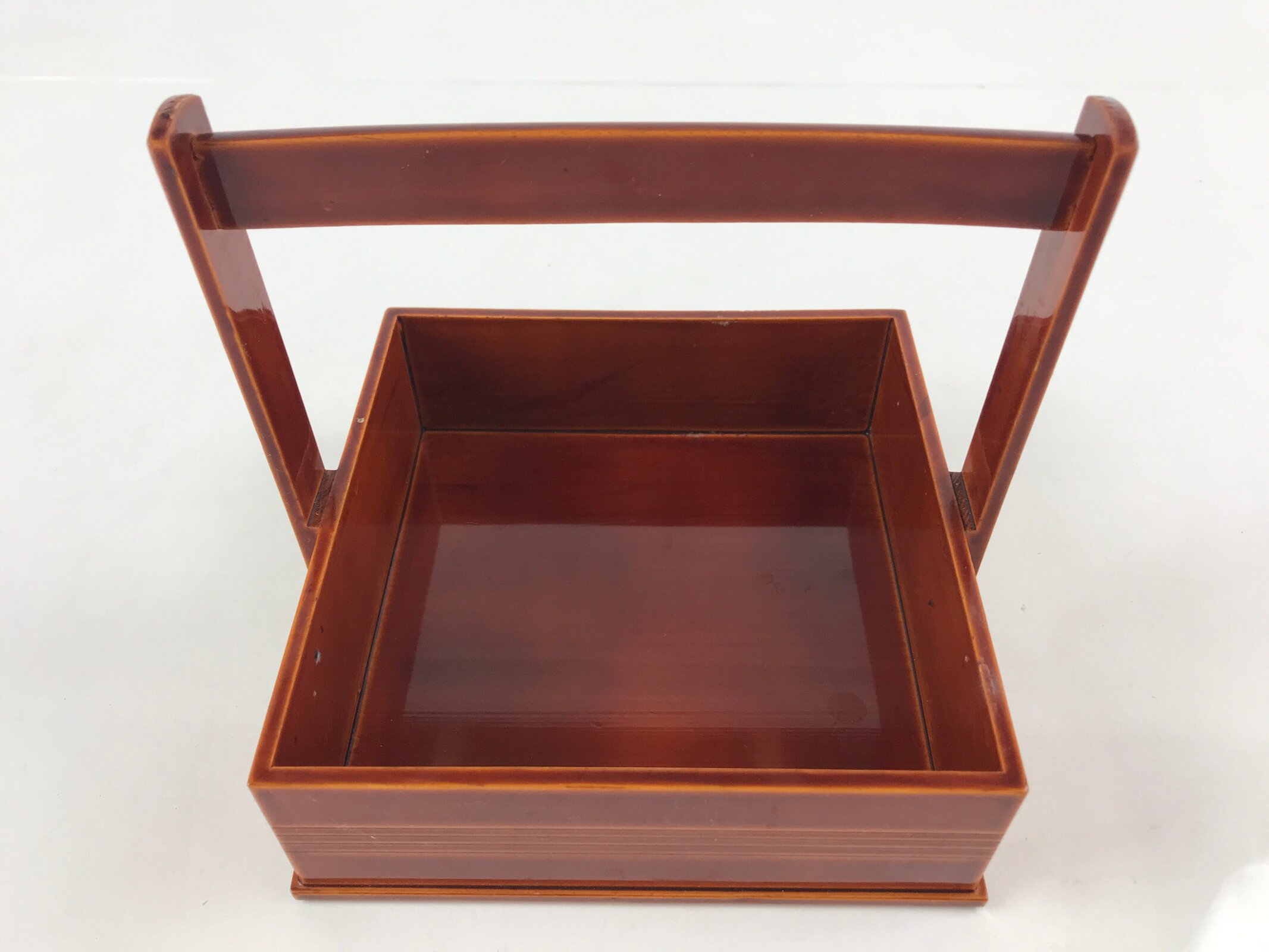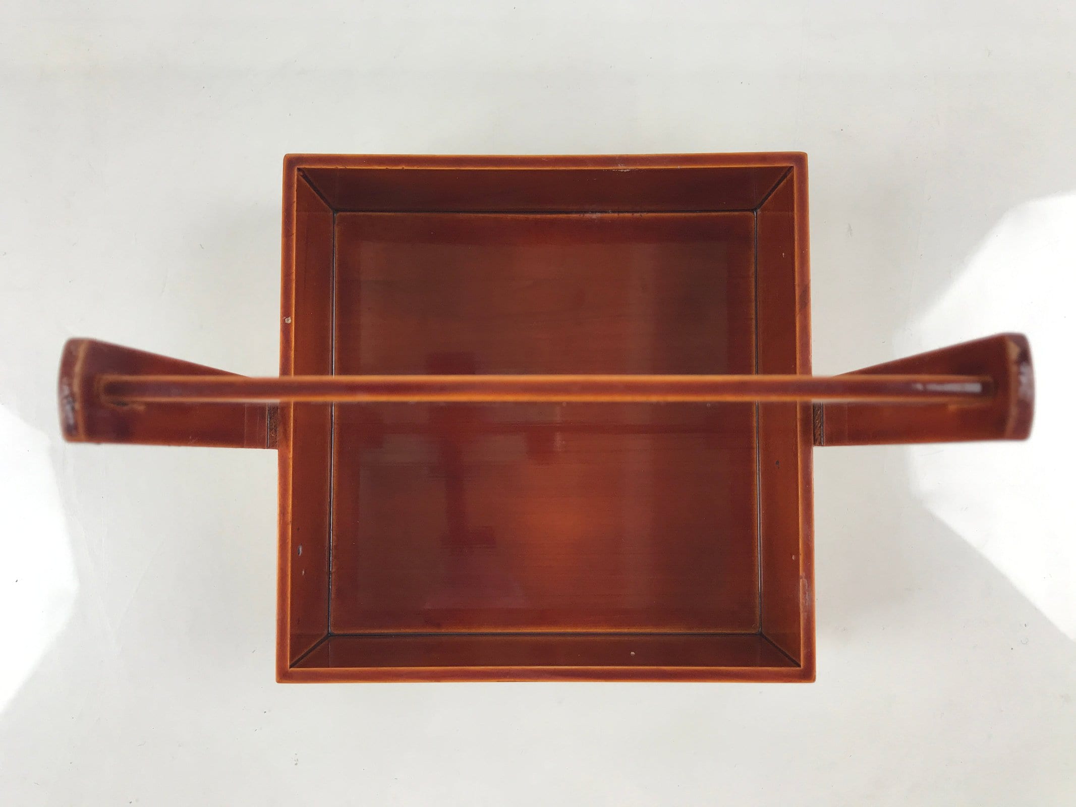 This is a Japanese vintage lacquered Shunkei-Nuri wooden Jubako, lunch box. It can be used as a sweets container, Kashiki for sencha and tea ceremonies. This is a two tiers box with a lid and handle. Hida Shunkei is a traditional lacquerware craft made in Takayama City and Hida City in Gifu Prefecture.