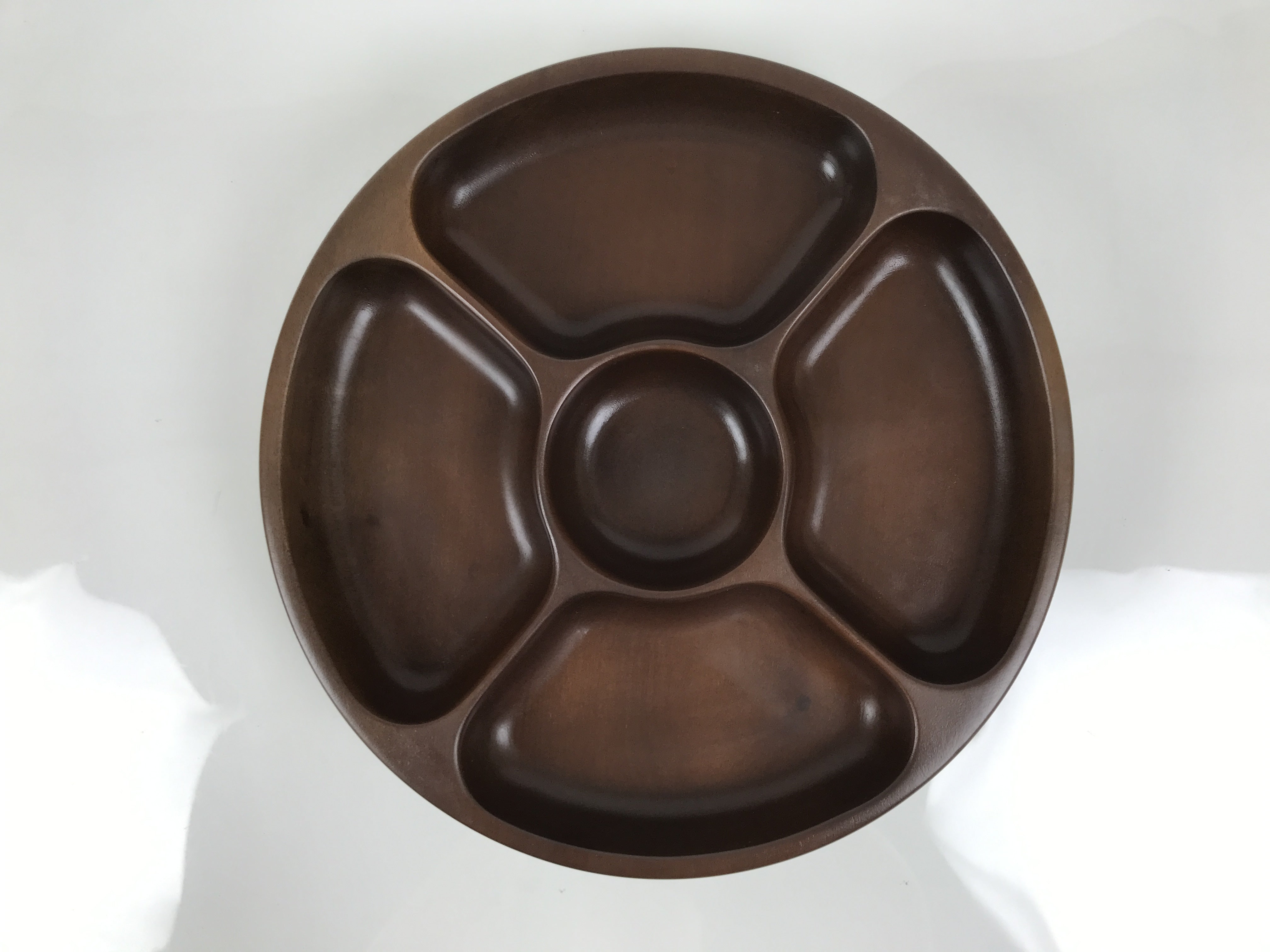 April 9, 2026Japanese Lacquered Wooden Serving Plate Vtg Round Dish Five Partition Brown L609