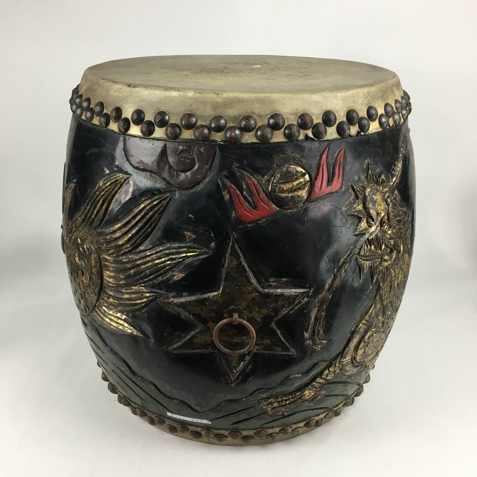 January 18, 2026Antique Japanese Wooden Taiko Drum C1900 Dragon Matsuri Musical Instrument BD718