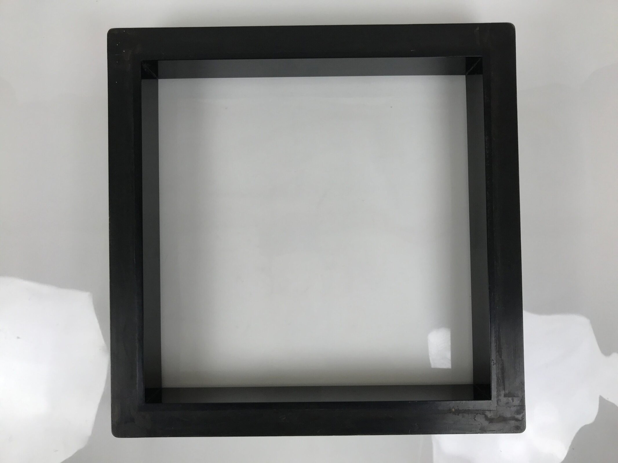 This is a Japanese robuchi or frame for a traditional sunken hearth, or ro. Found in the floors of tea ceremony rooms or chashitu, and surrounded by tatami mats, this square frame provides a sleek decorative element to the space as well as protects the tatami from any heat or sparks from the hearth fire.