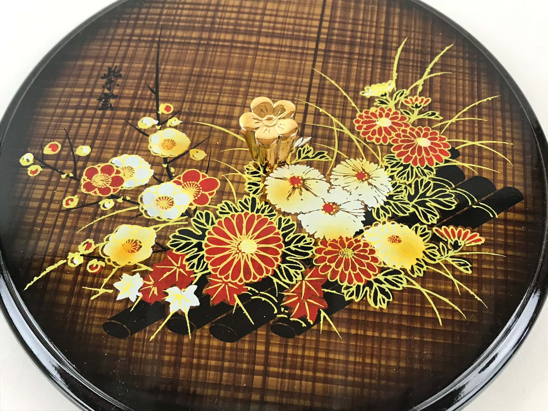 This is a vintage Japanese Yamanaka Lacquerware snack bowl. Lacquerware is a craft made by coating wood with layers of lacquer. From around the 1950s, synthetic (modern) lacquerware with urethane coating on a plastic (synthetic resin) base was made, and this is modern resin lacquerware.
