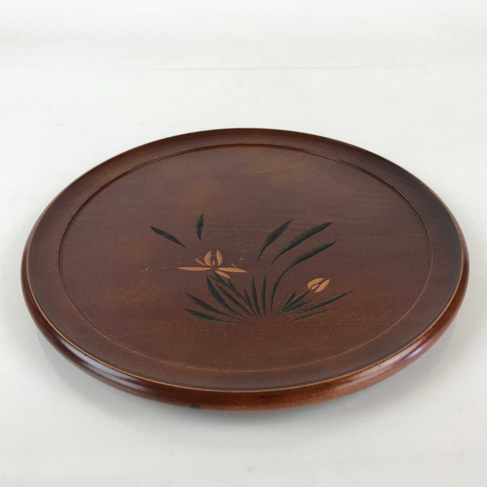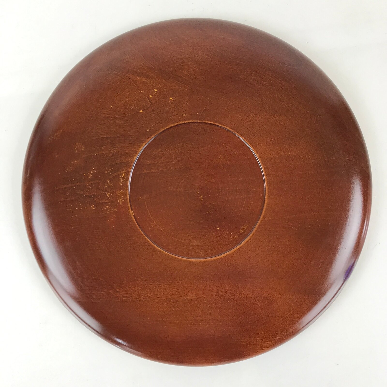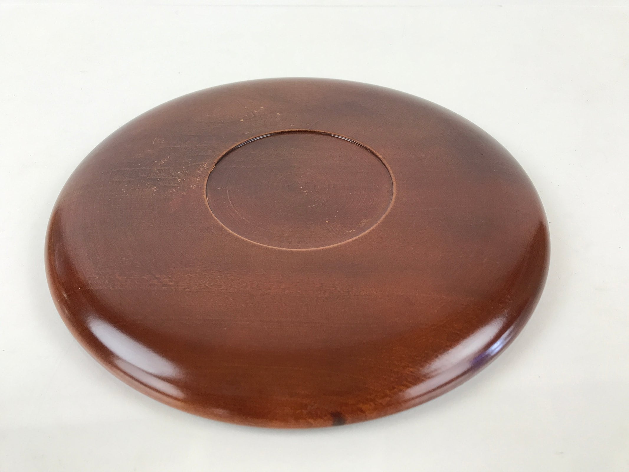Japanese Wooden Lacquered Tray Obon Shunkei-Nuri Vtg Round Glossy Brown UR832