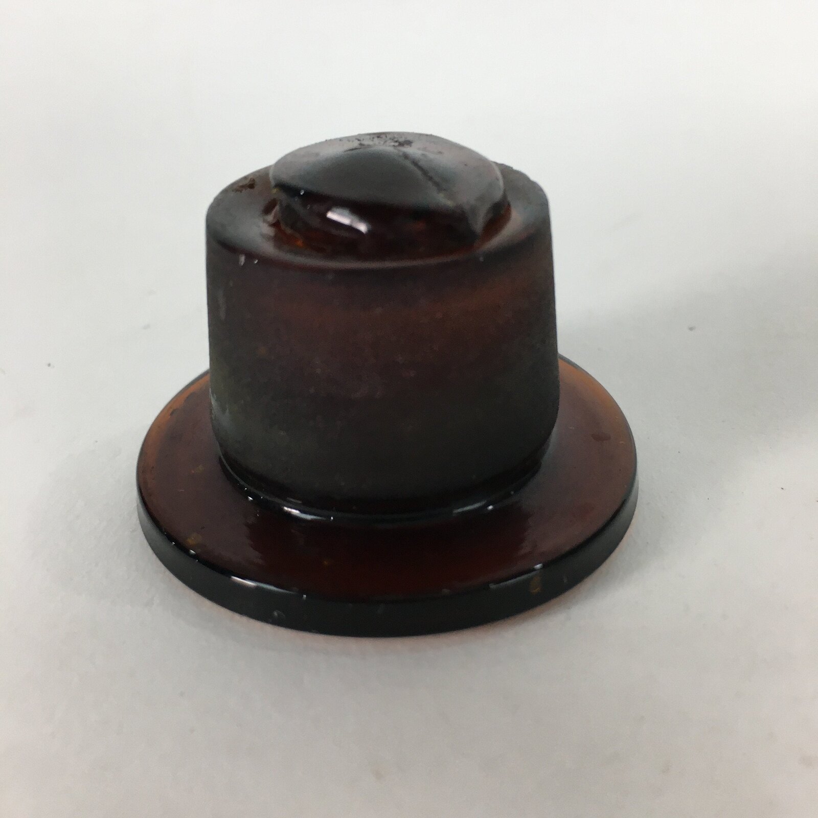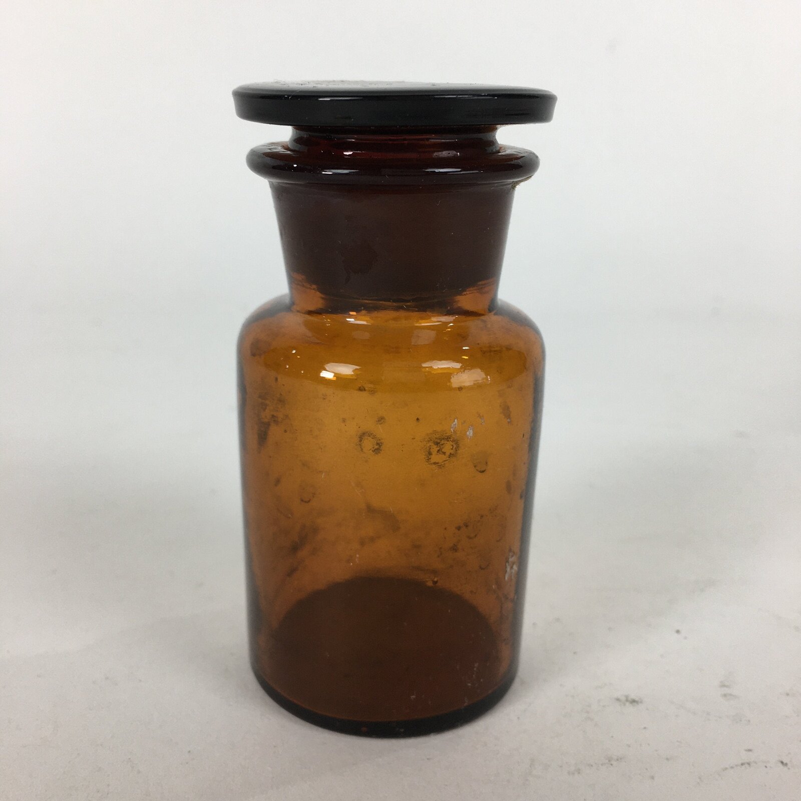 Japanese Lidded Glass Medicine Bottle Vtg Amber Color Glass 8.5 cm Vase MB15