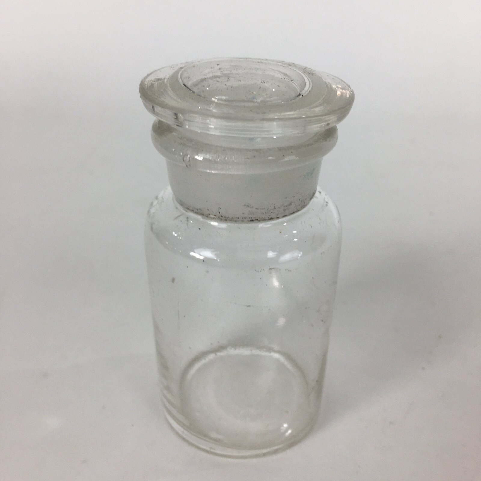Japanese Lidded Glass Medicine Bottle Vtg Clear Color Glass 8.5 cm Vase MB29