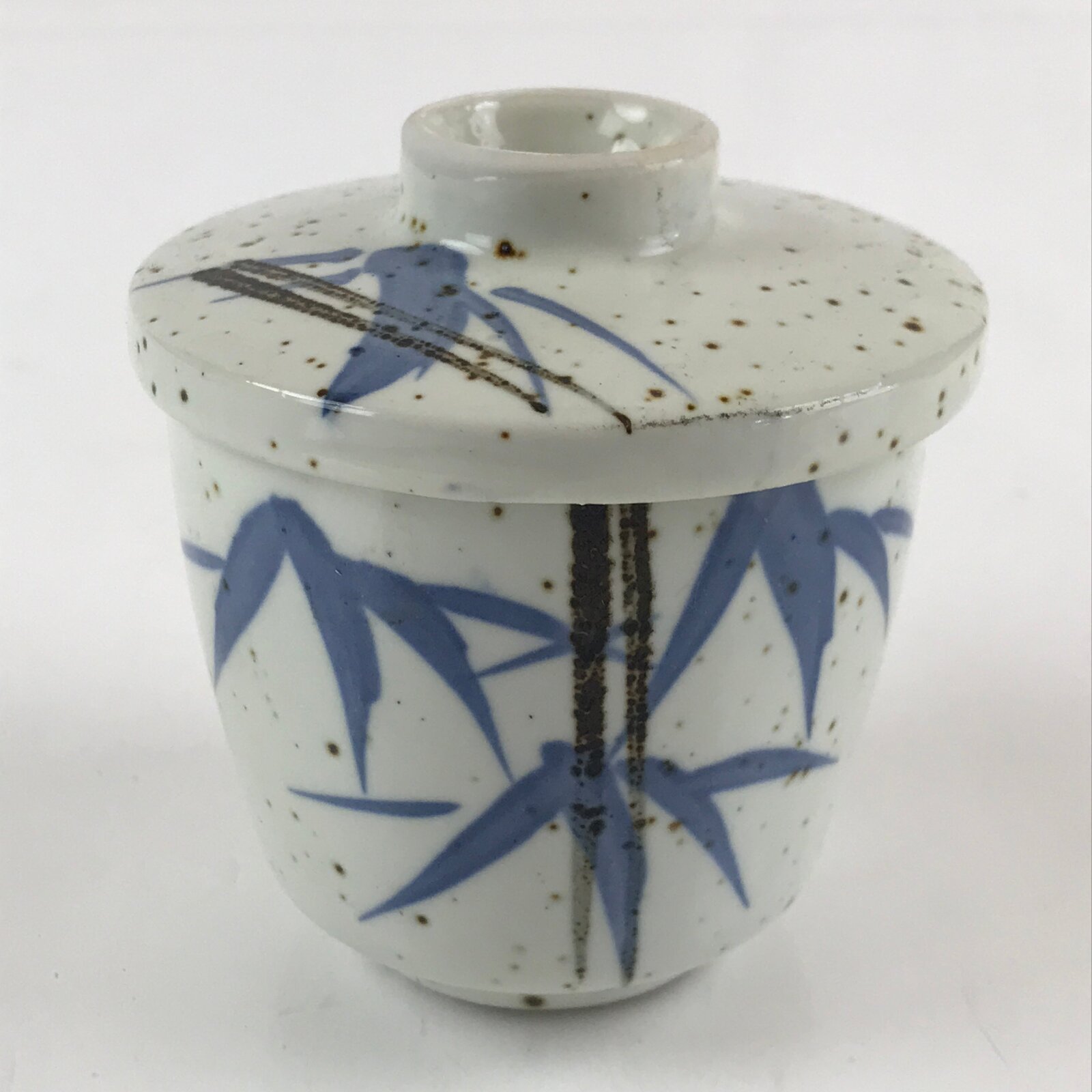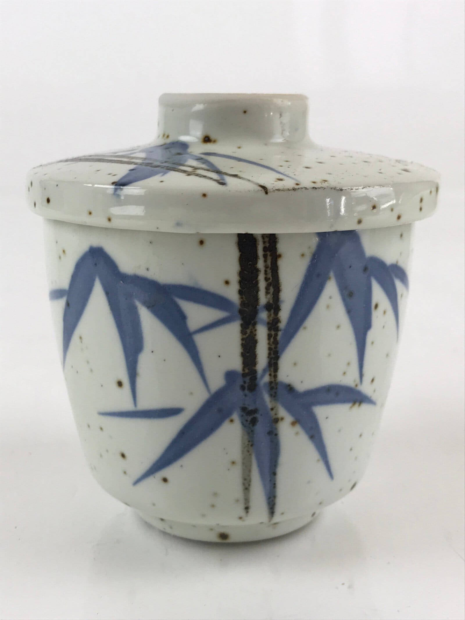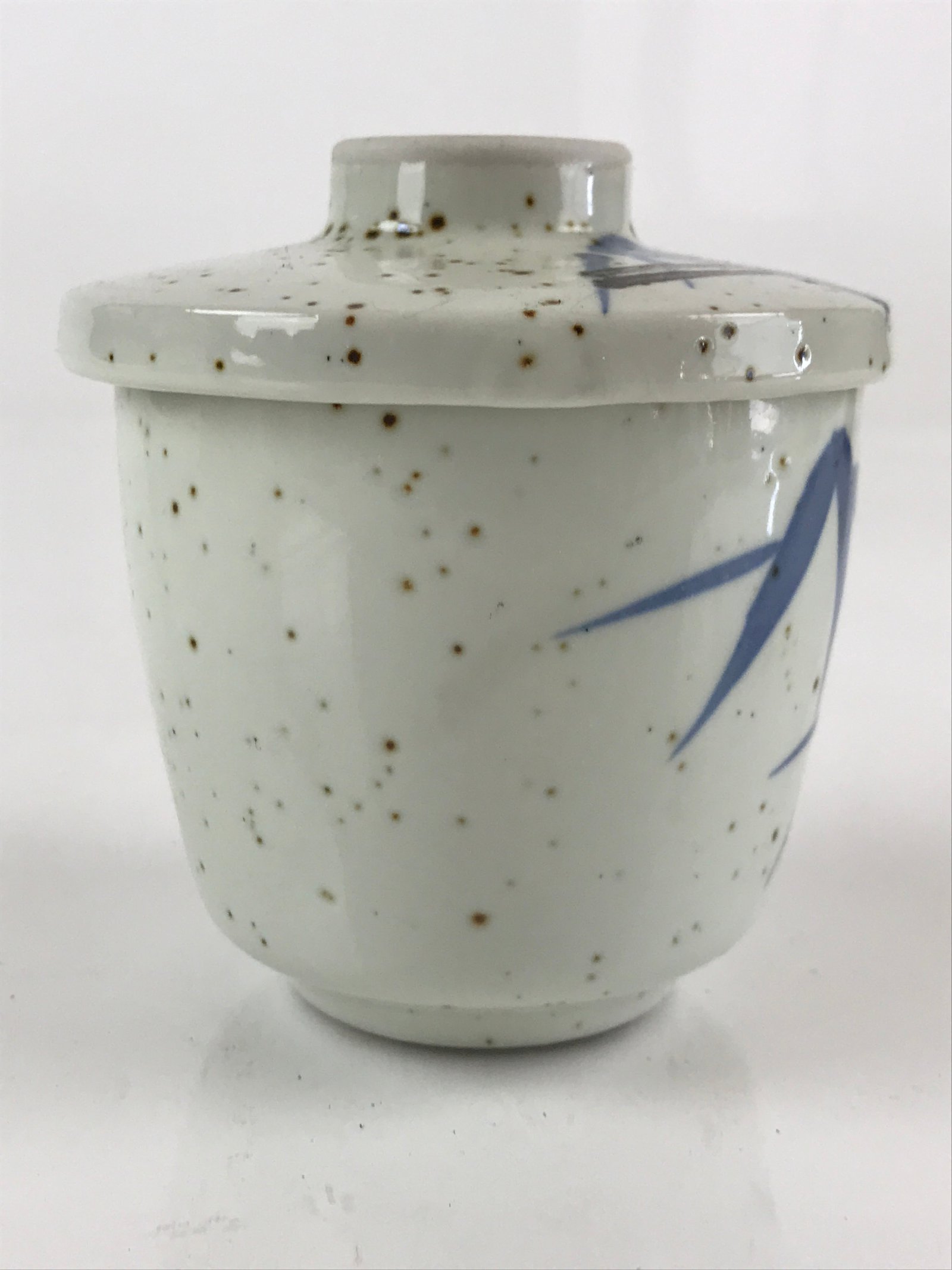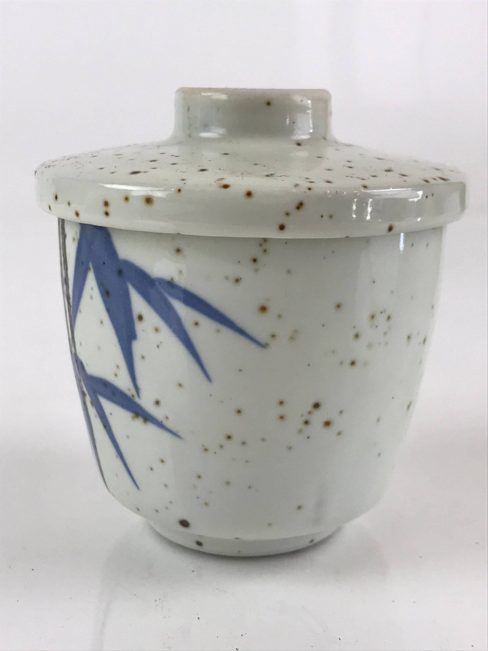 Japanese Porcelain Lidded Soup Bowl Cup Vtg Chawanmushi Blue Bamboo PY154