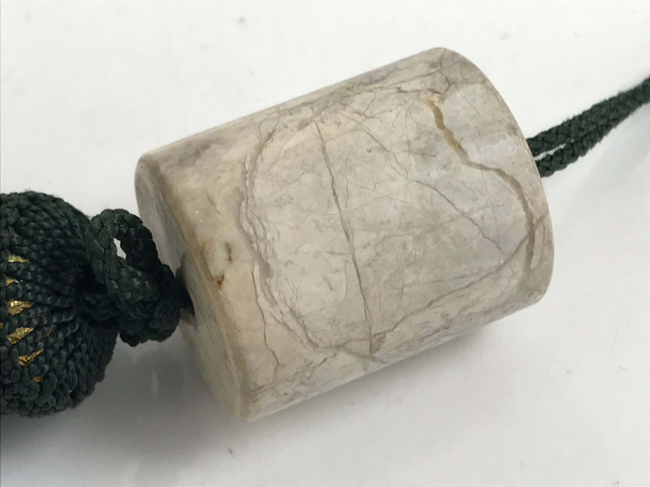 January 24, 2026Japanese Marble Stone Hanging Scroll Weights Fuchin Kakejiku Green Tassel FC348